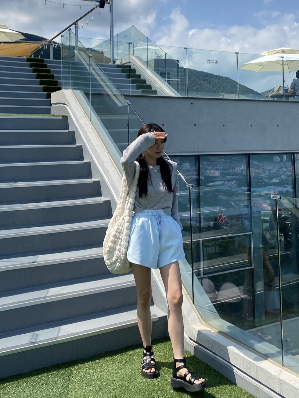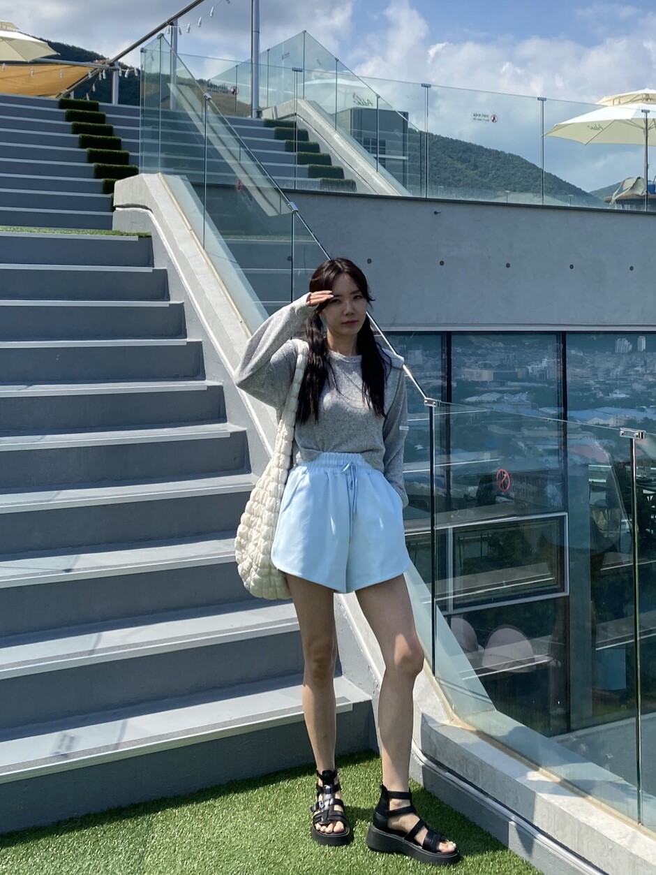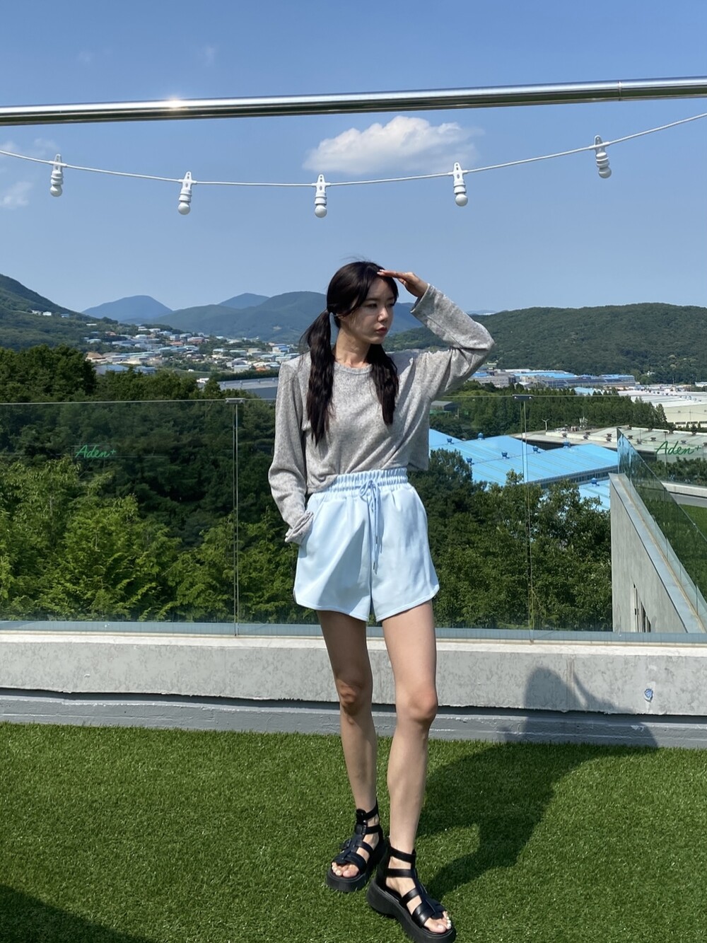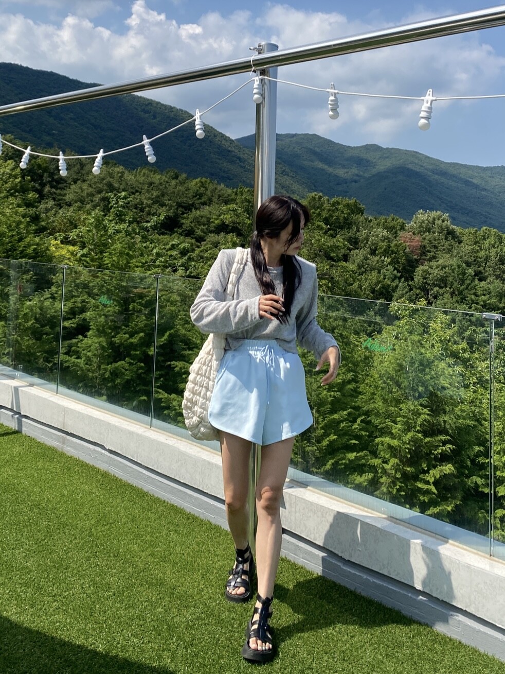 특징: 신축성 O, 비침X, 안감 X , 두께감 보통, 무게감 가벼움