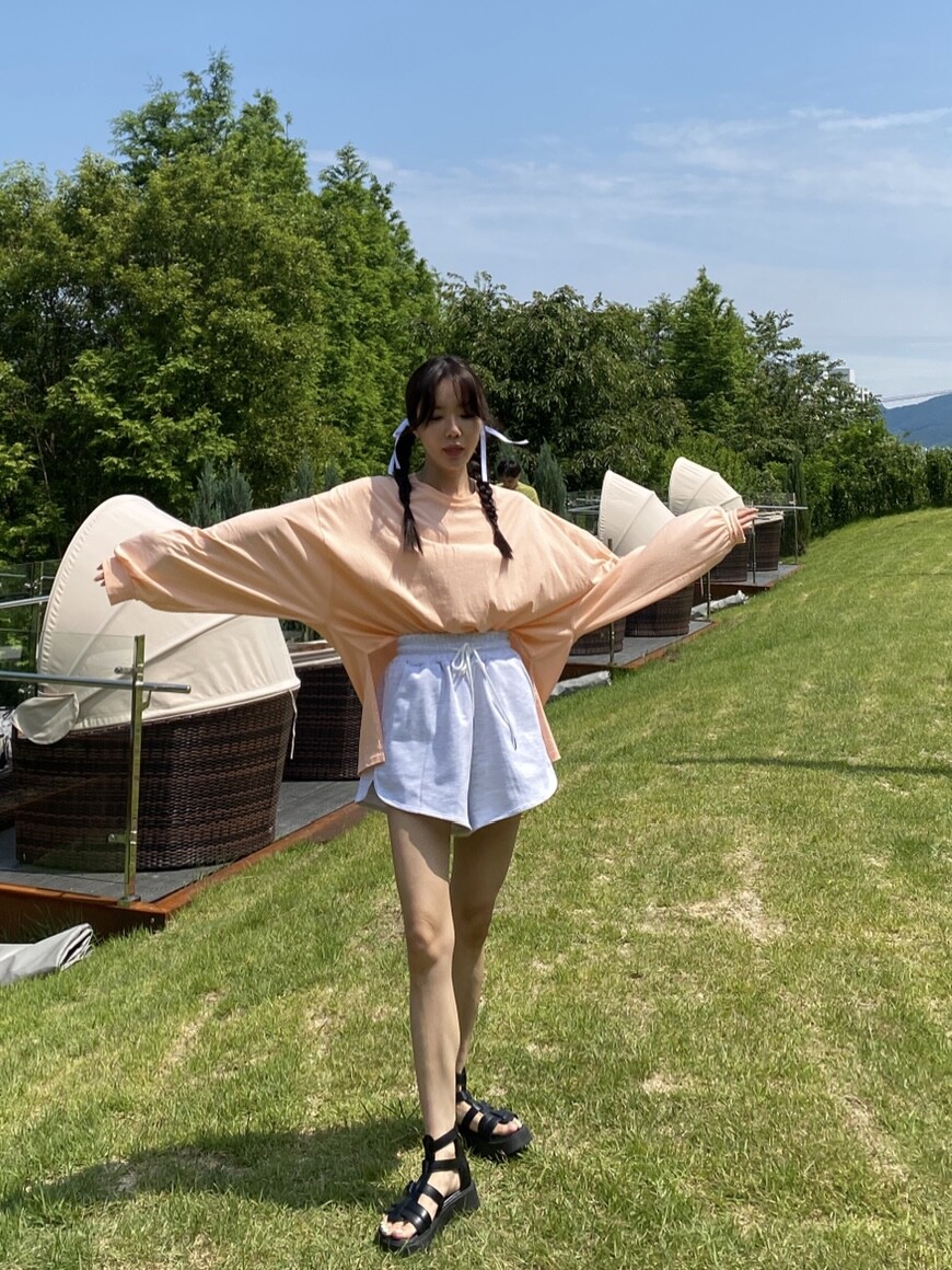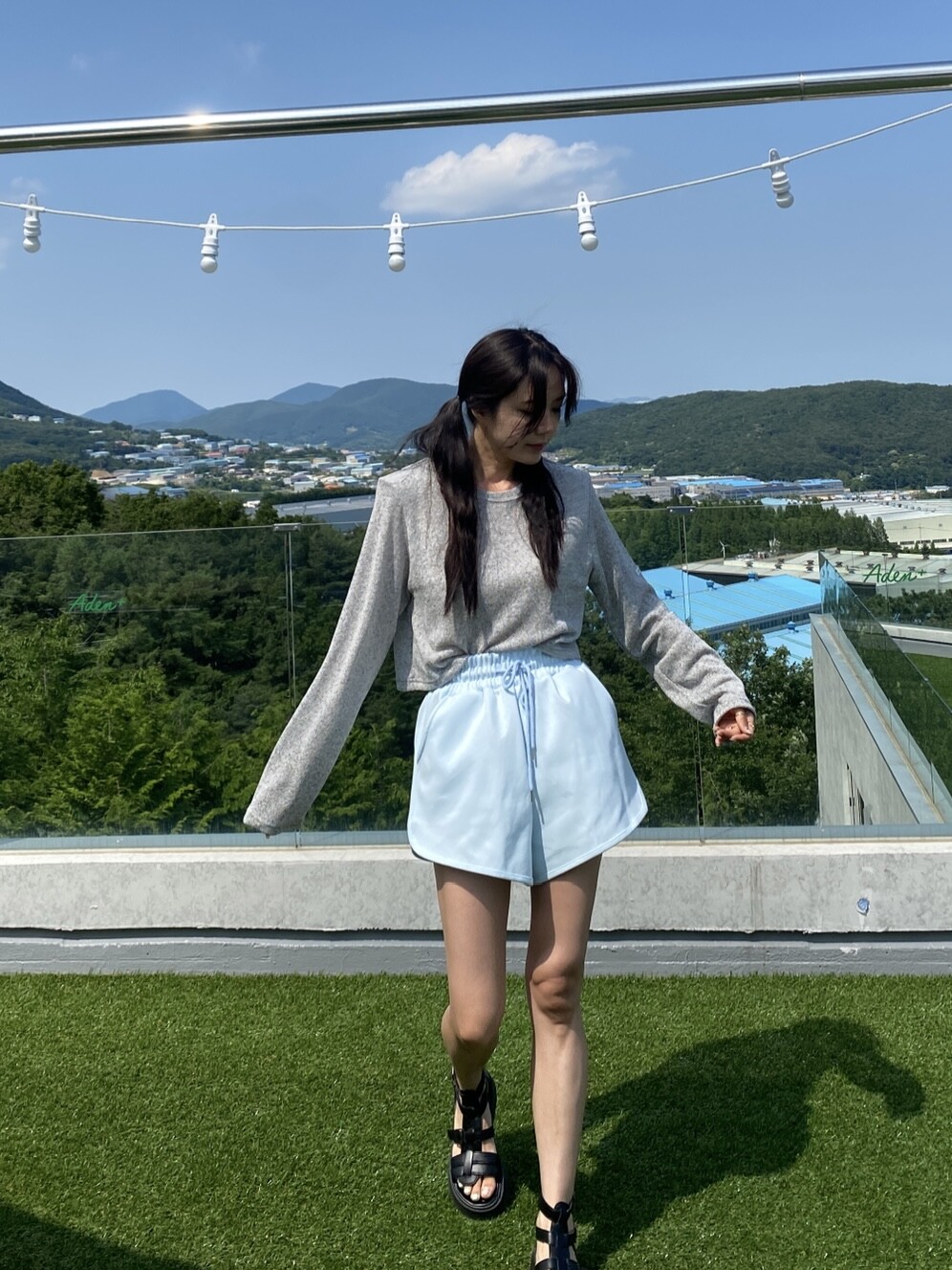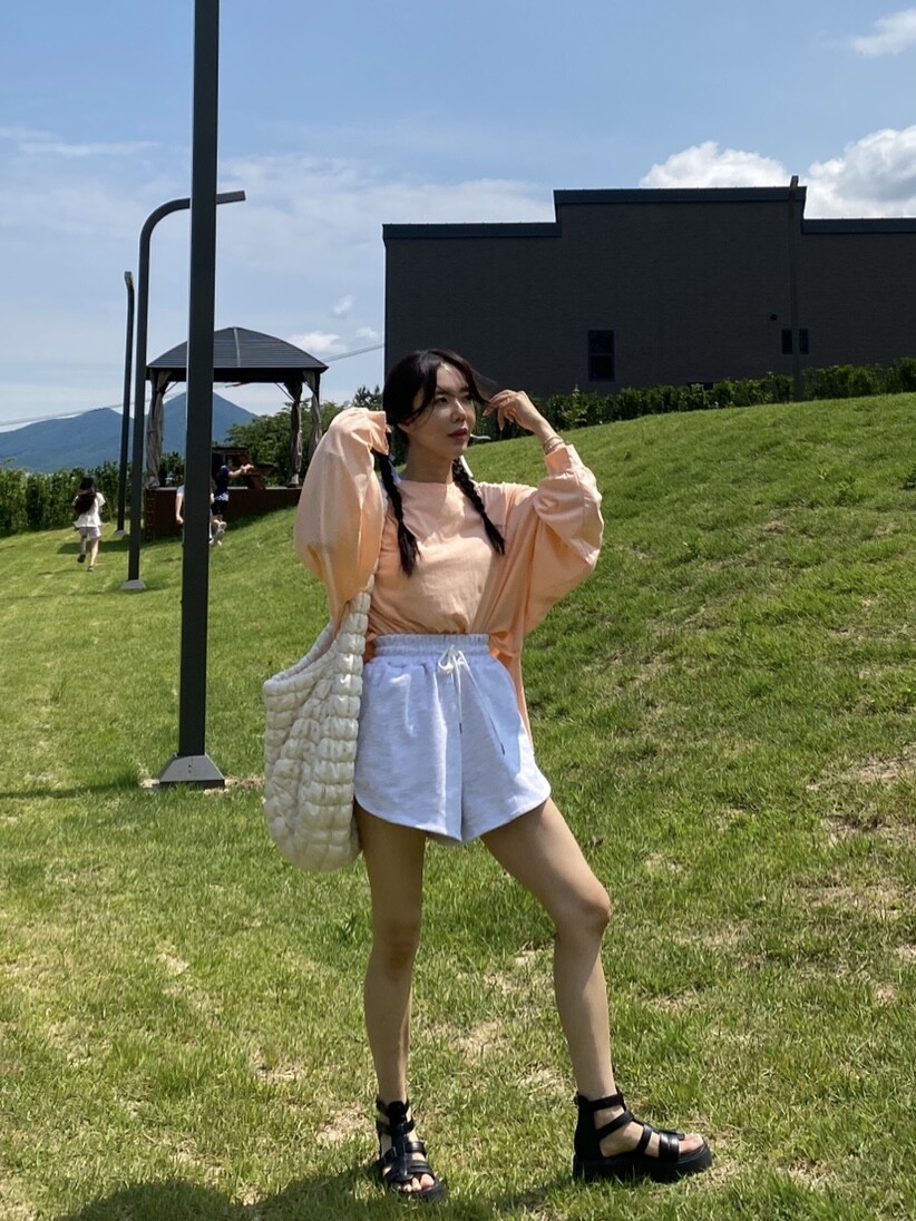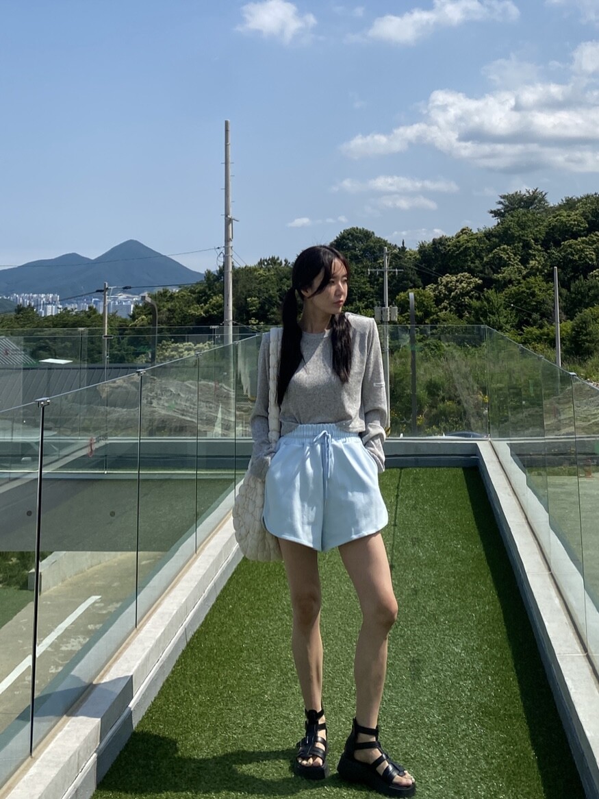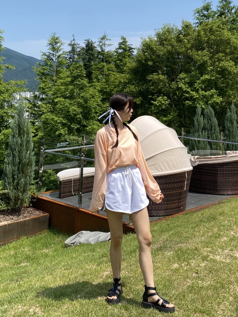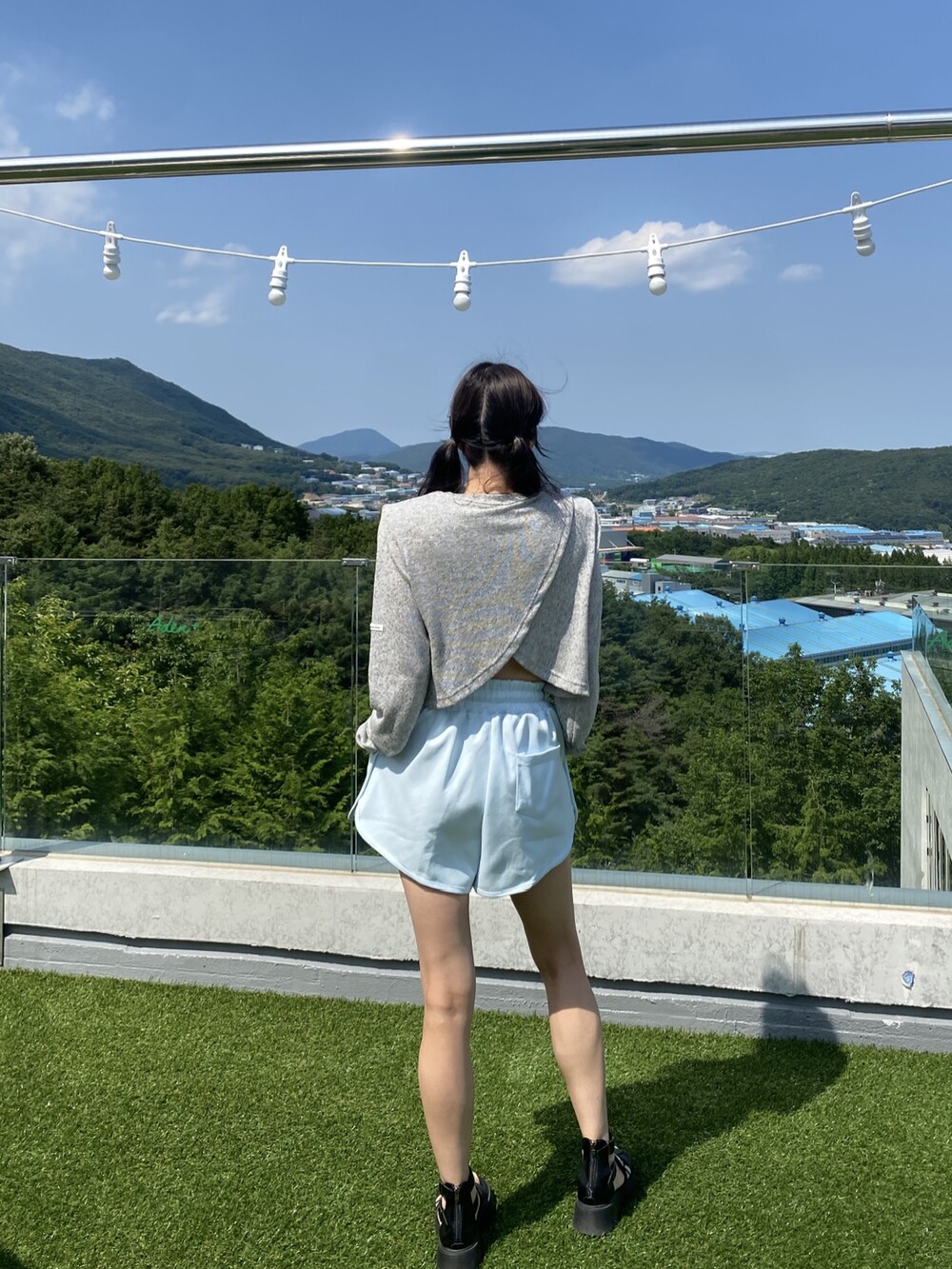 특징: 신축성 O, 비침X, 안감 X , 두께감 보통, 무게감 가벼움