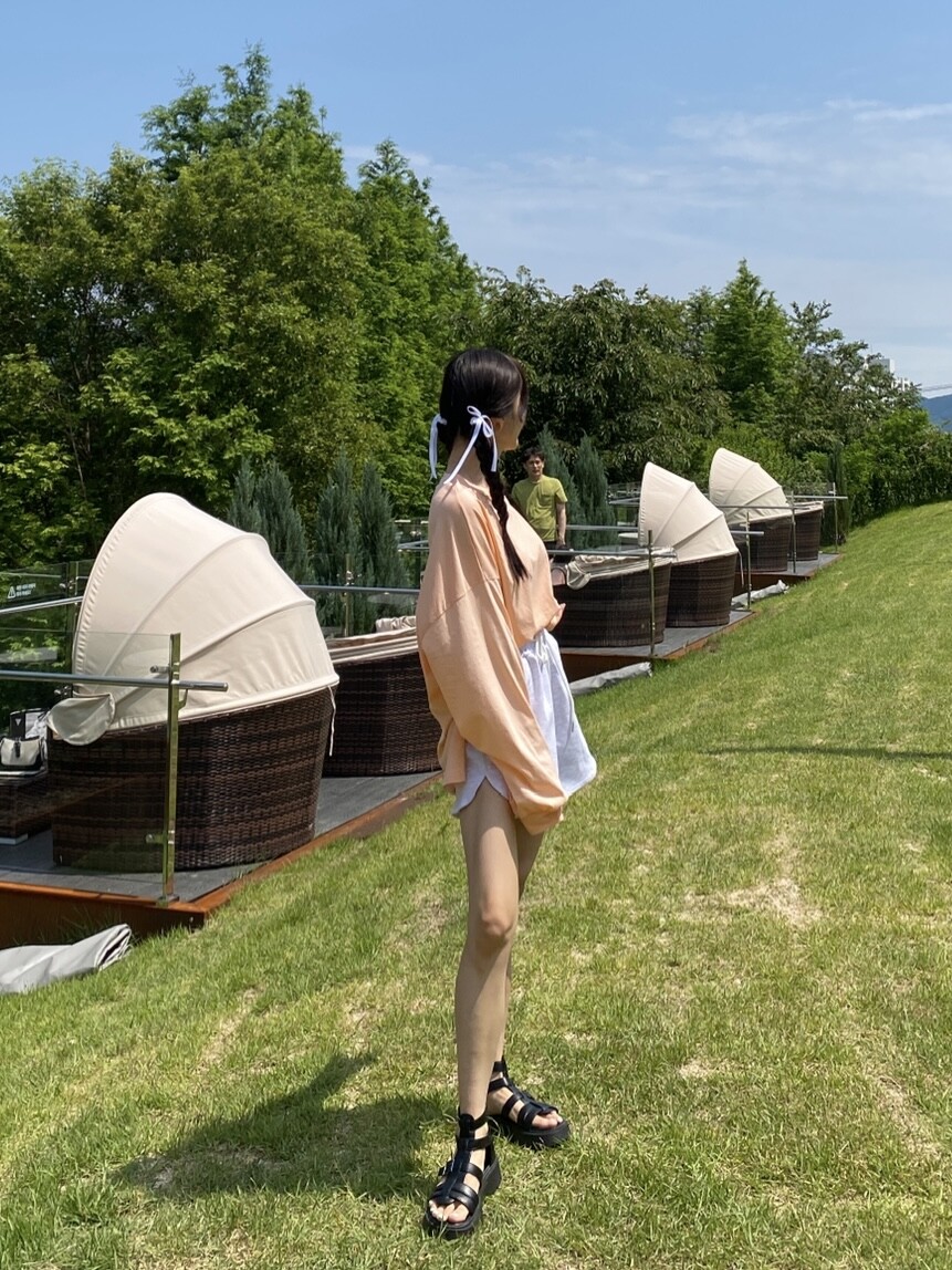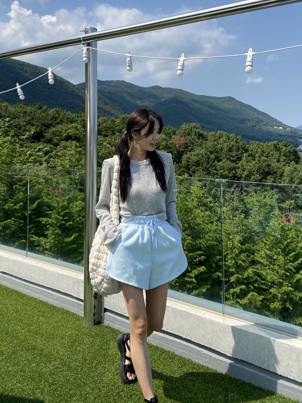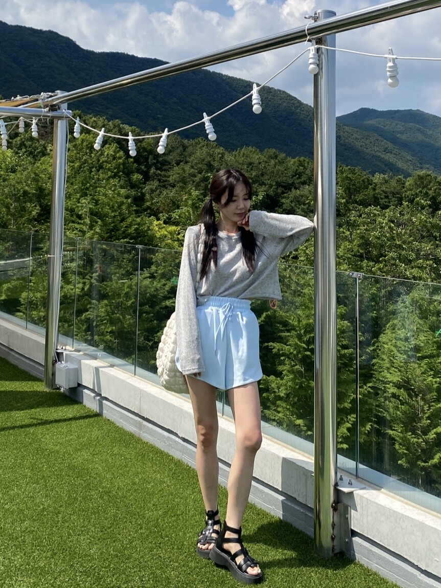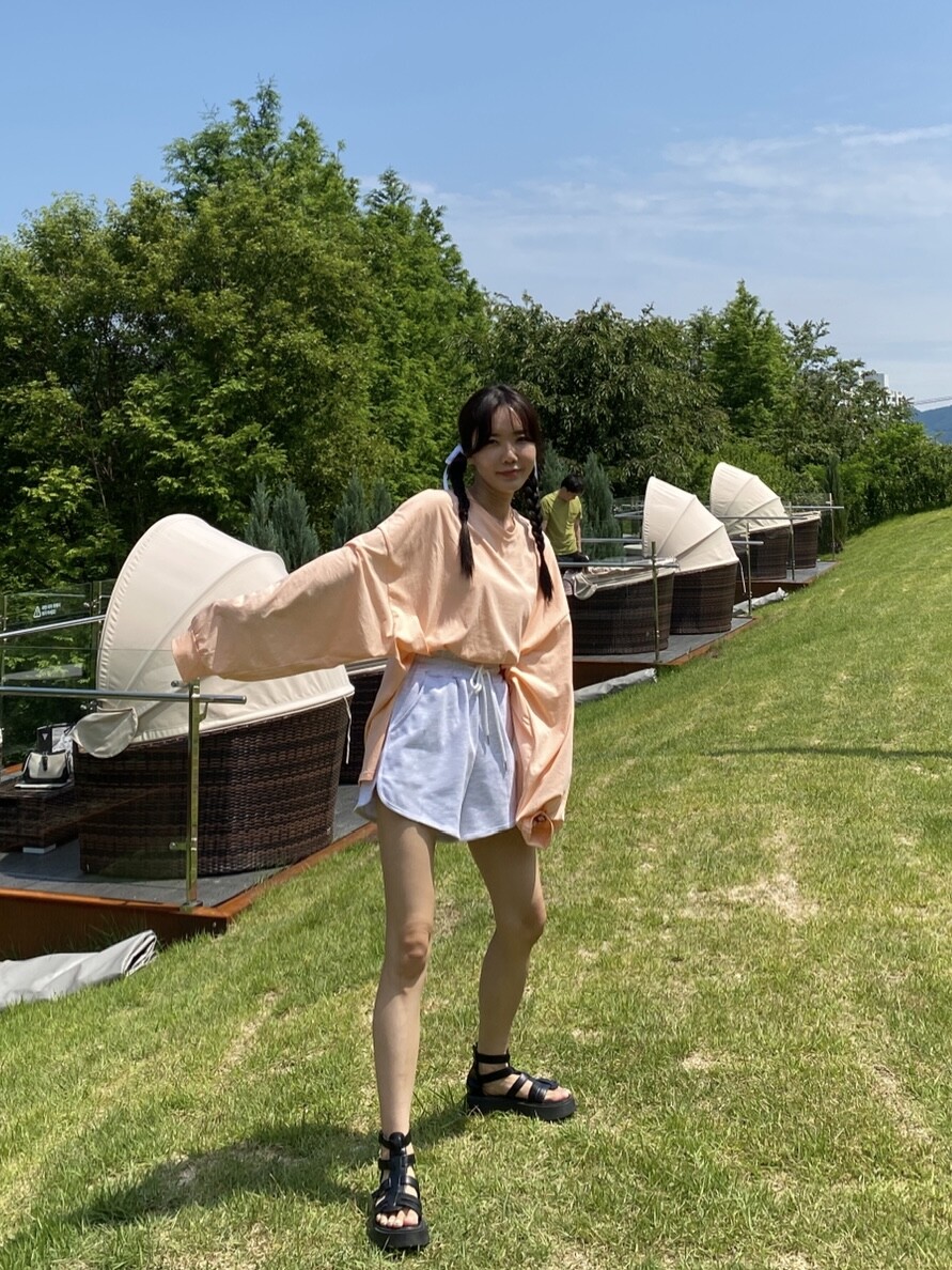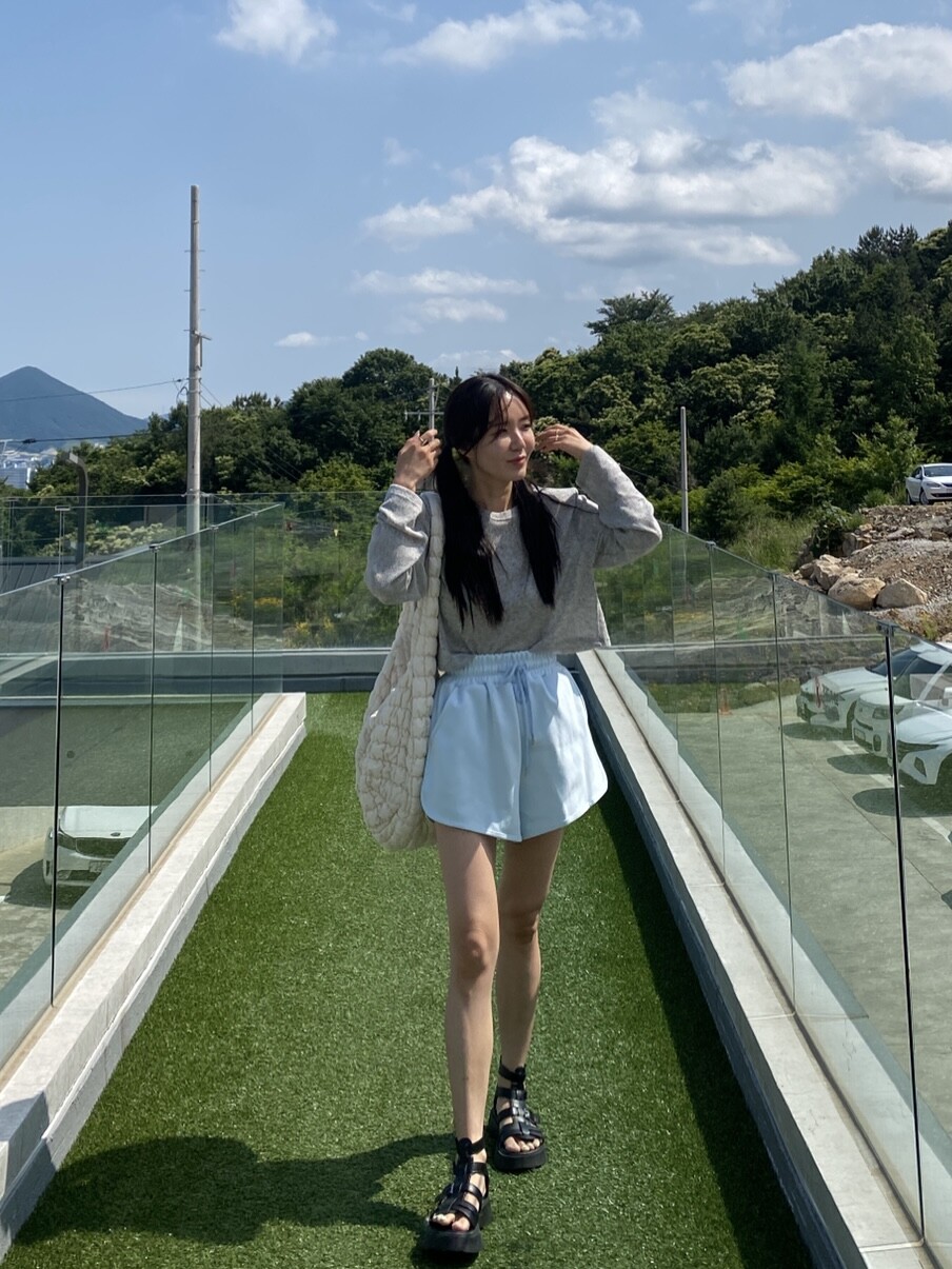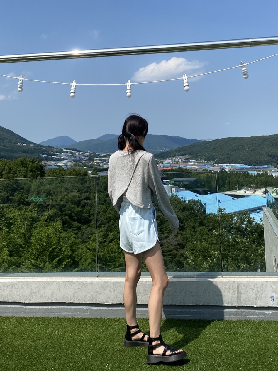 특징: 신축성 O, 비침X, 안감 X , 두께감 보통, 무게감 가벼움