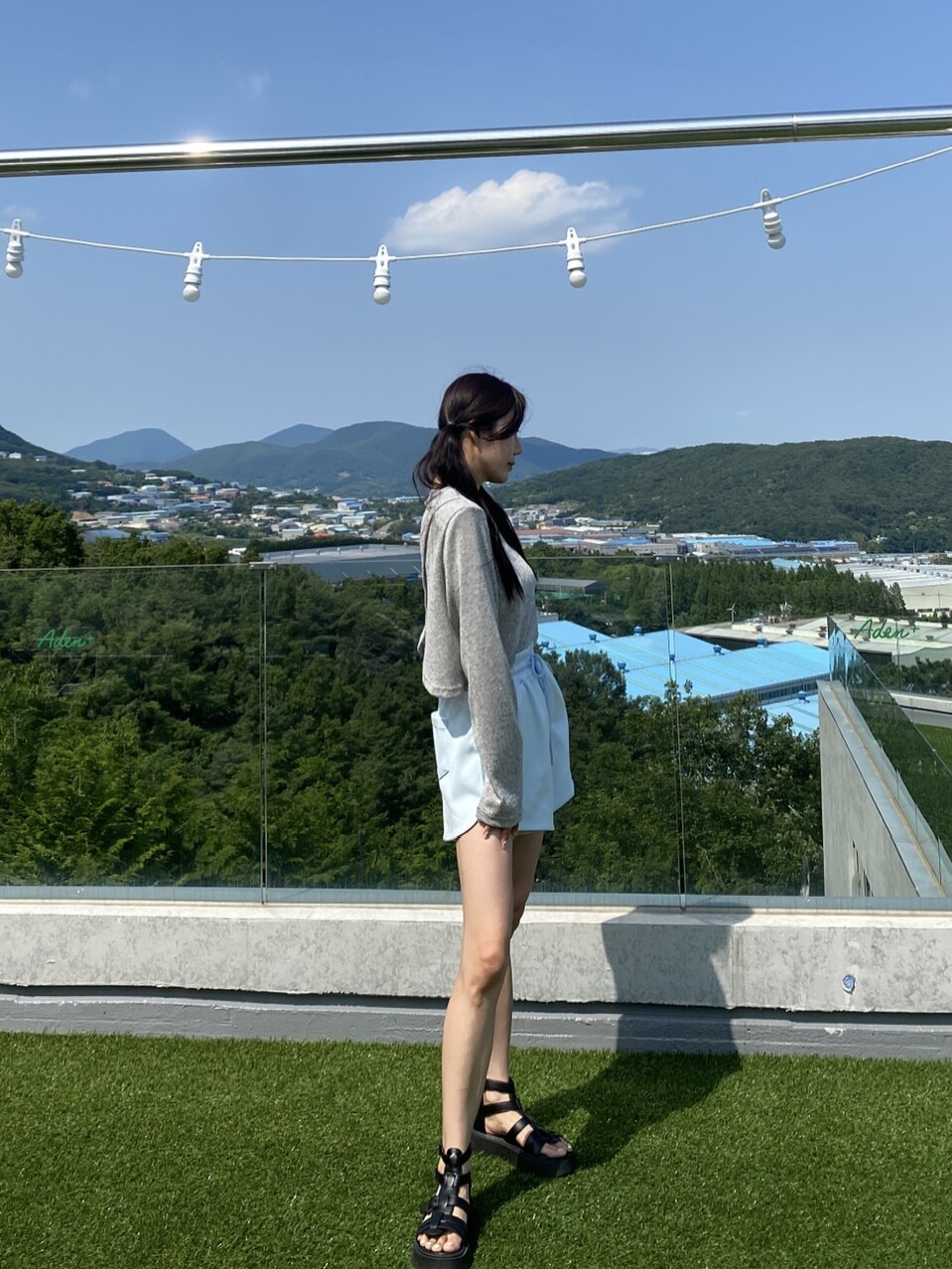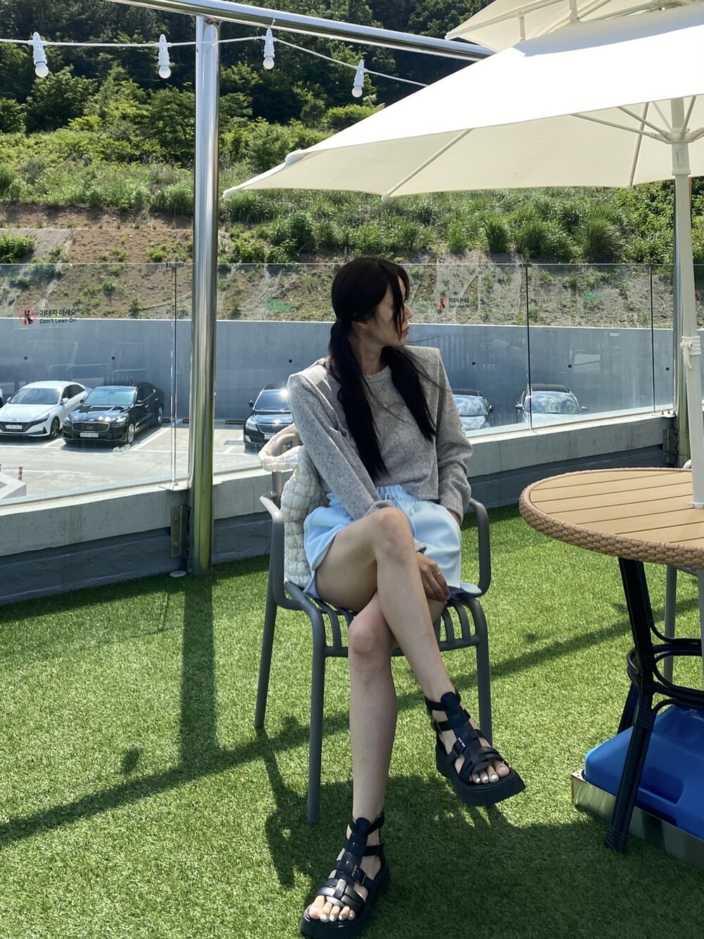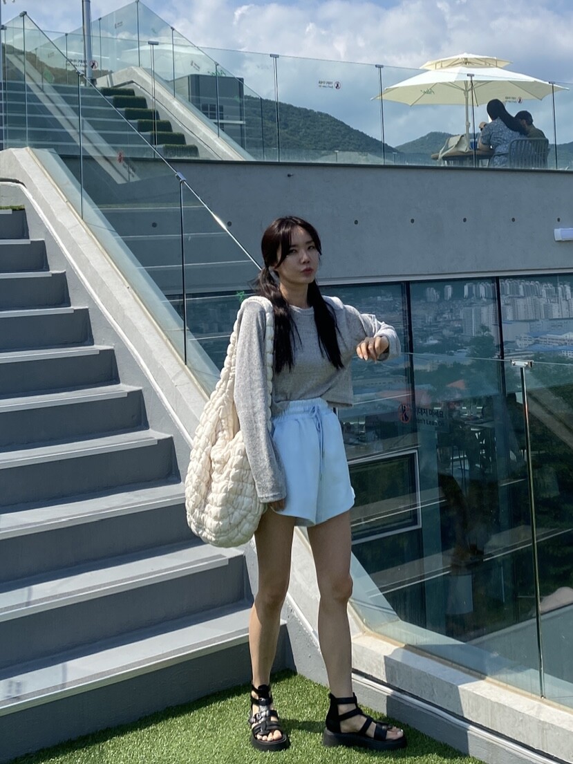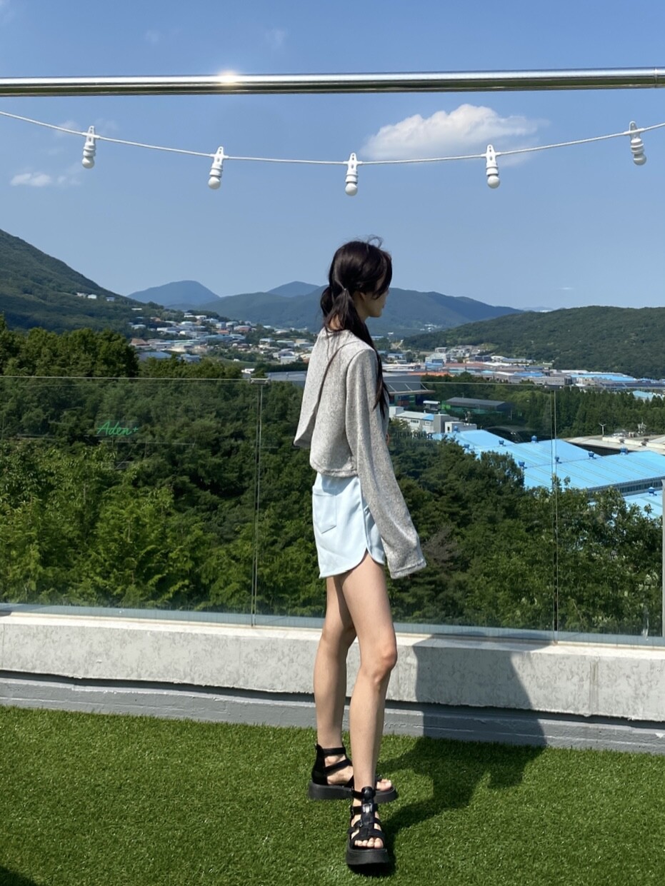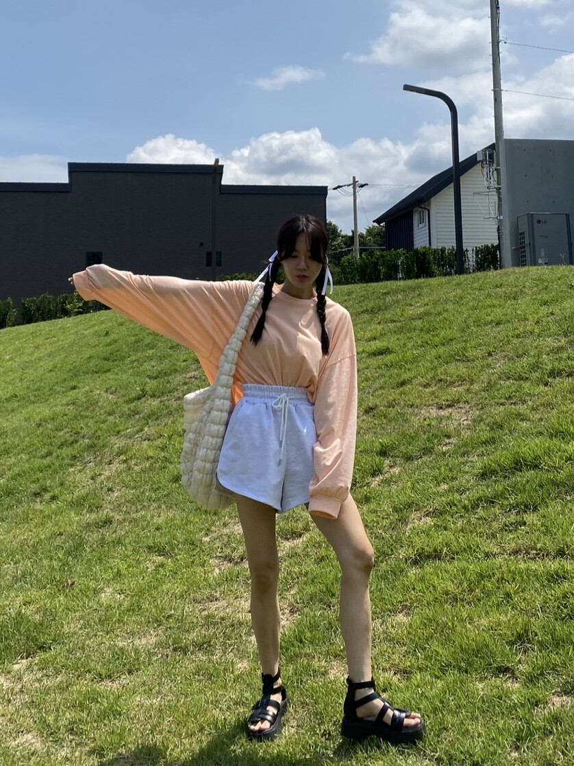특징: 신축성 O, 비침X, 안감 X , 두께감 보통, 무게감 가벼움
