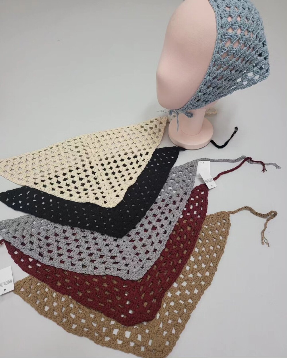 망사 뜨게 헤어 두건이예요