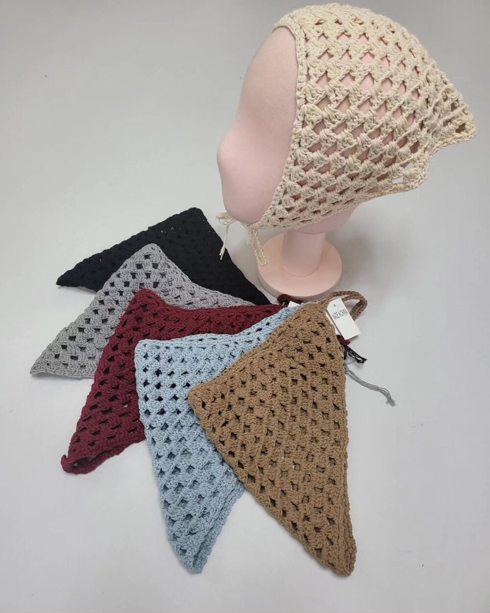 망사 뜨게 헤어 두건 5col