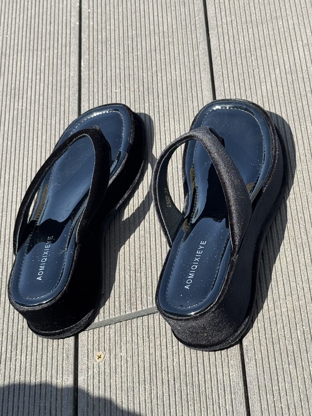 색상 : 블랙 원단 : 겉면 벨벳, 발바닥면 에나멜