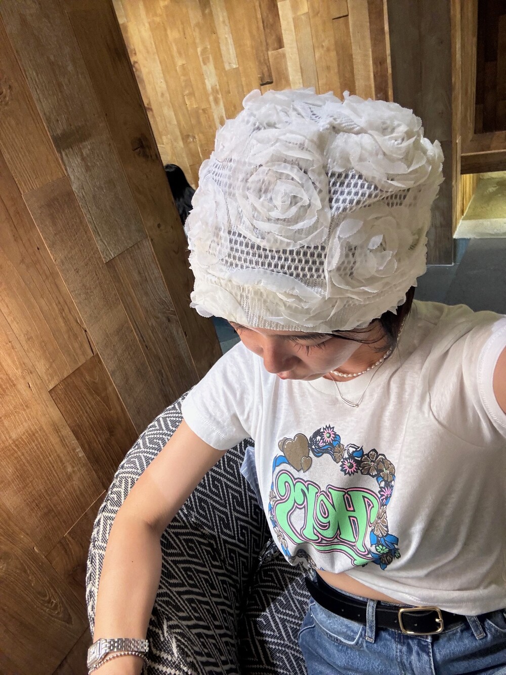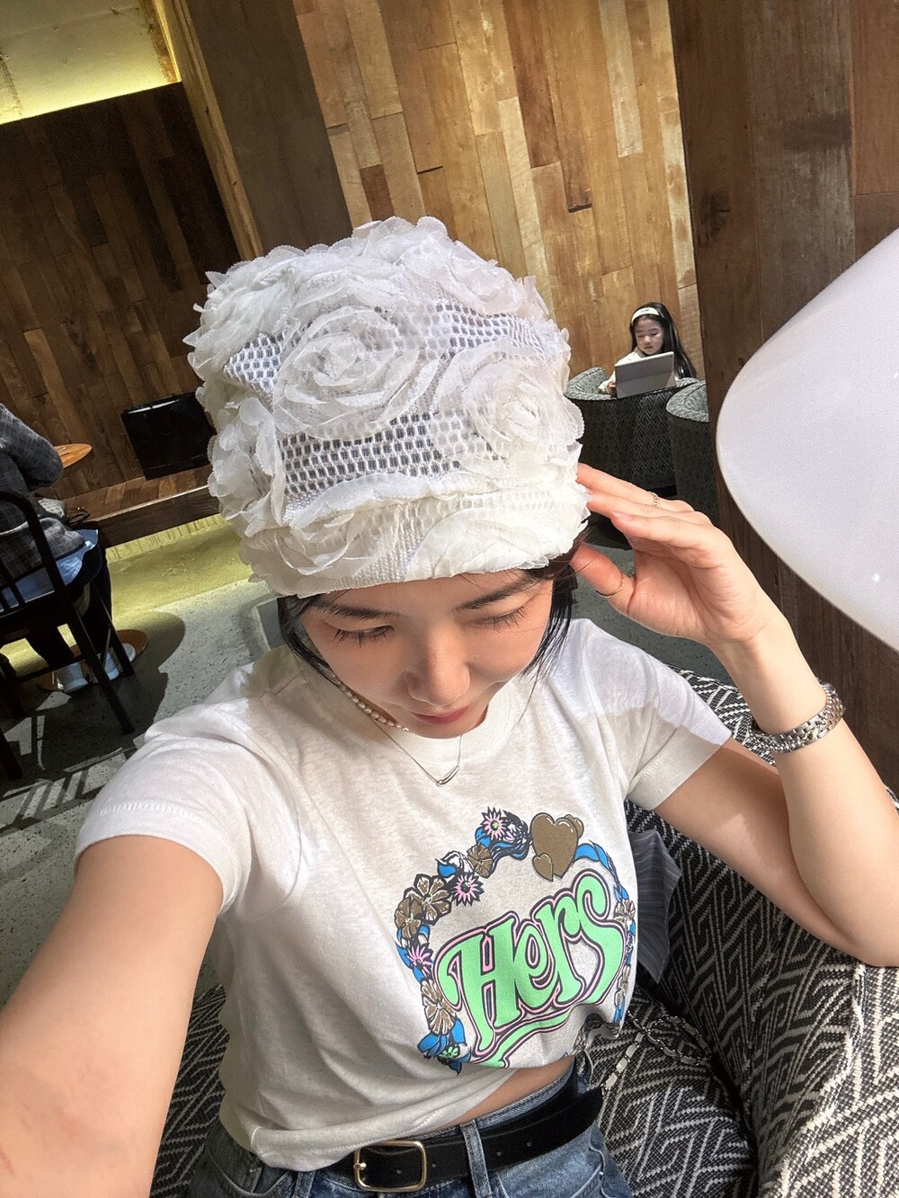 로즈 플라워 쉬폰 버킷햇 비니 2col