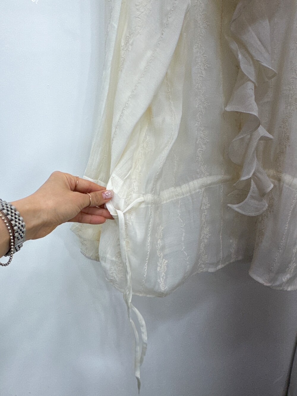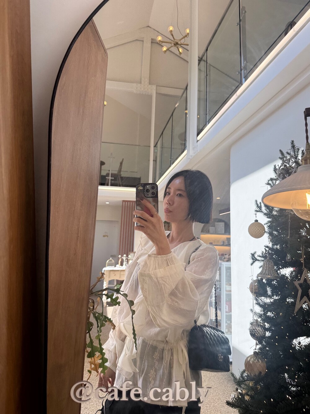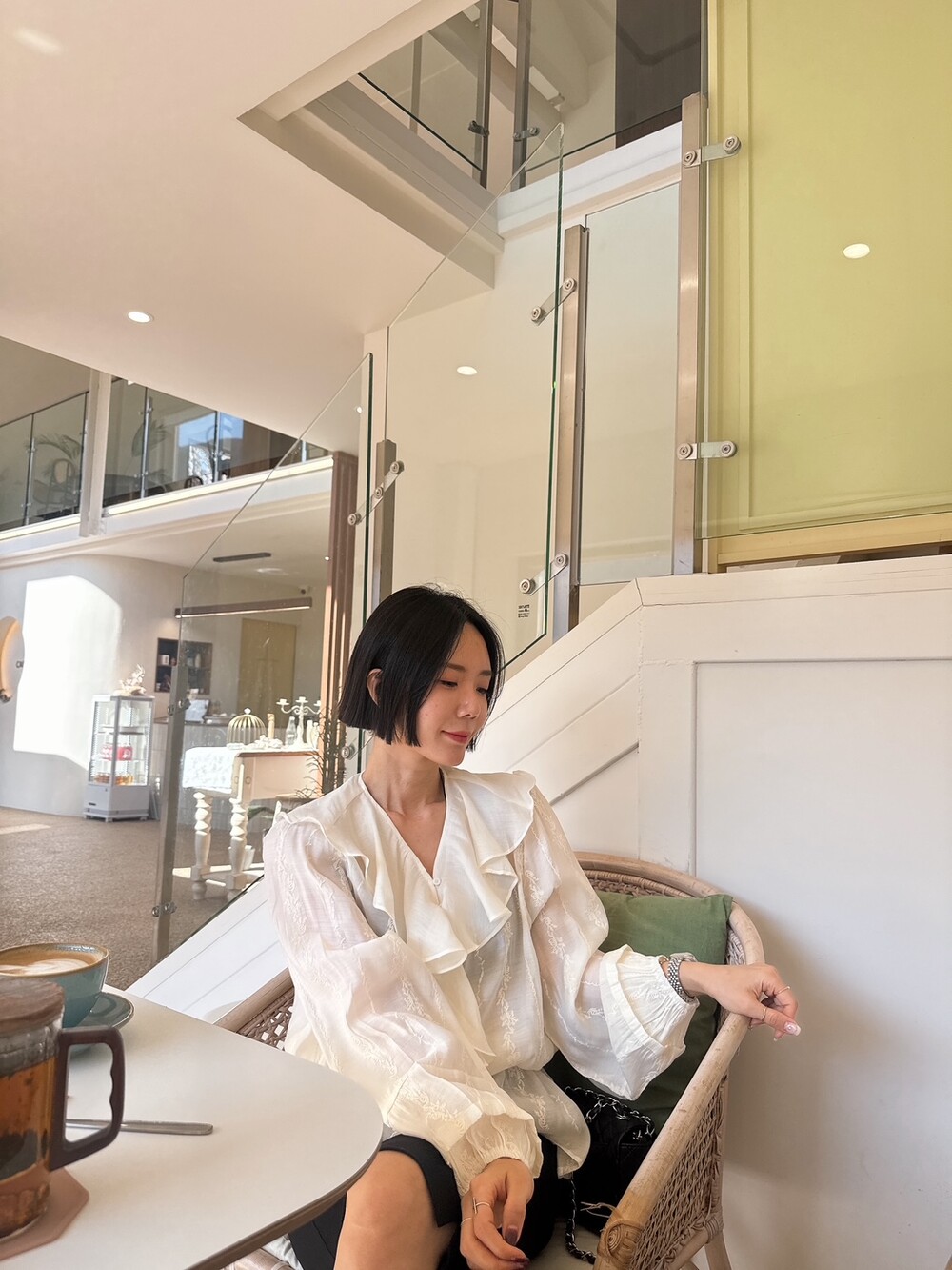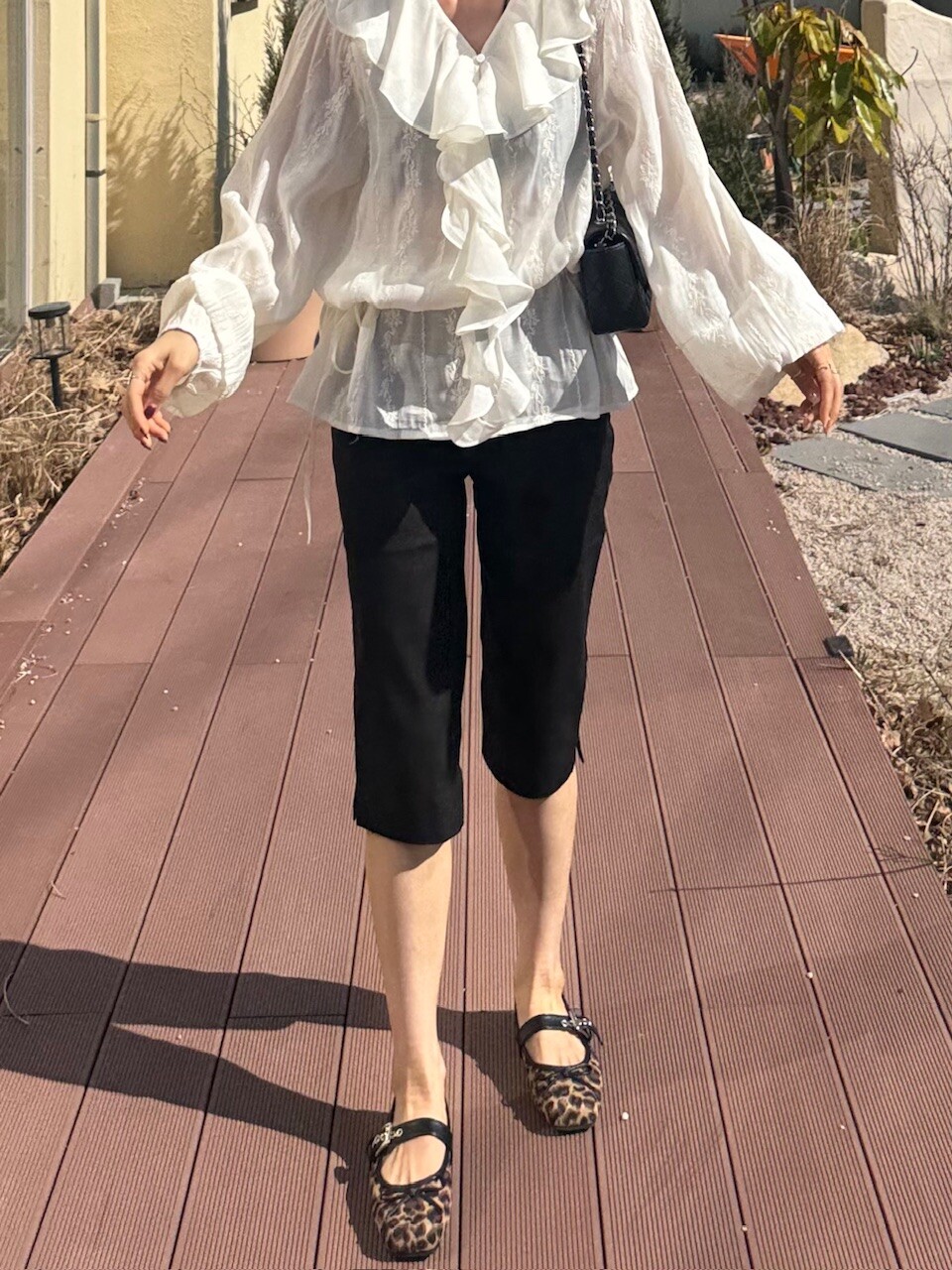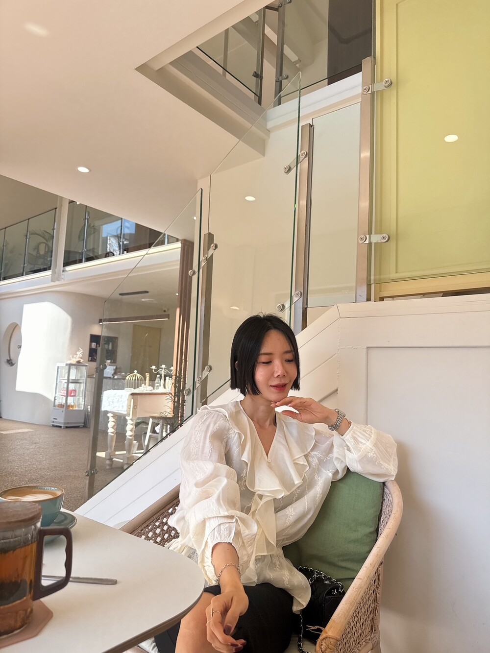풍성한 프릴 디테일로 얼굴선을 화사하게 살려주고