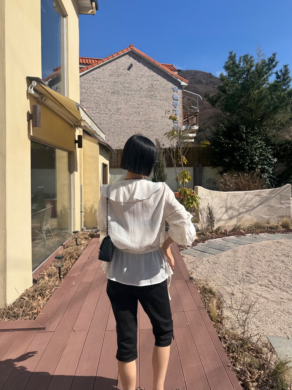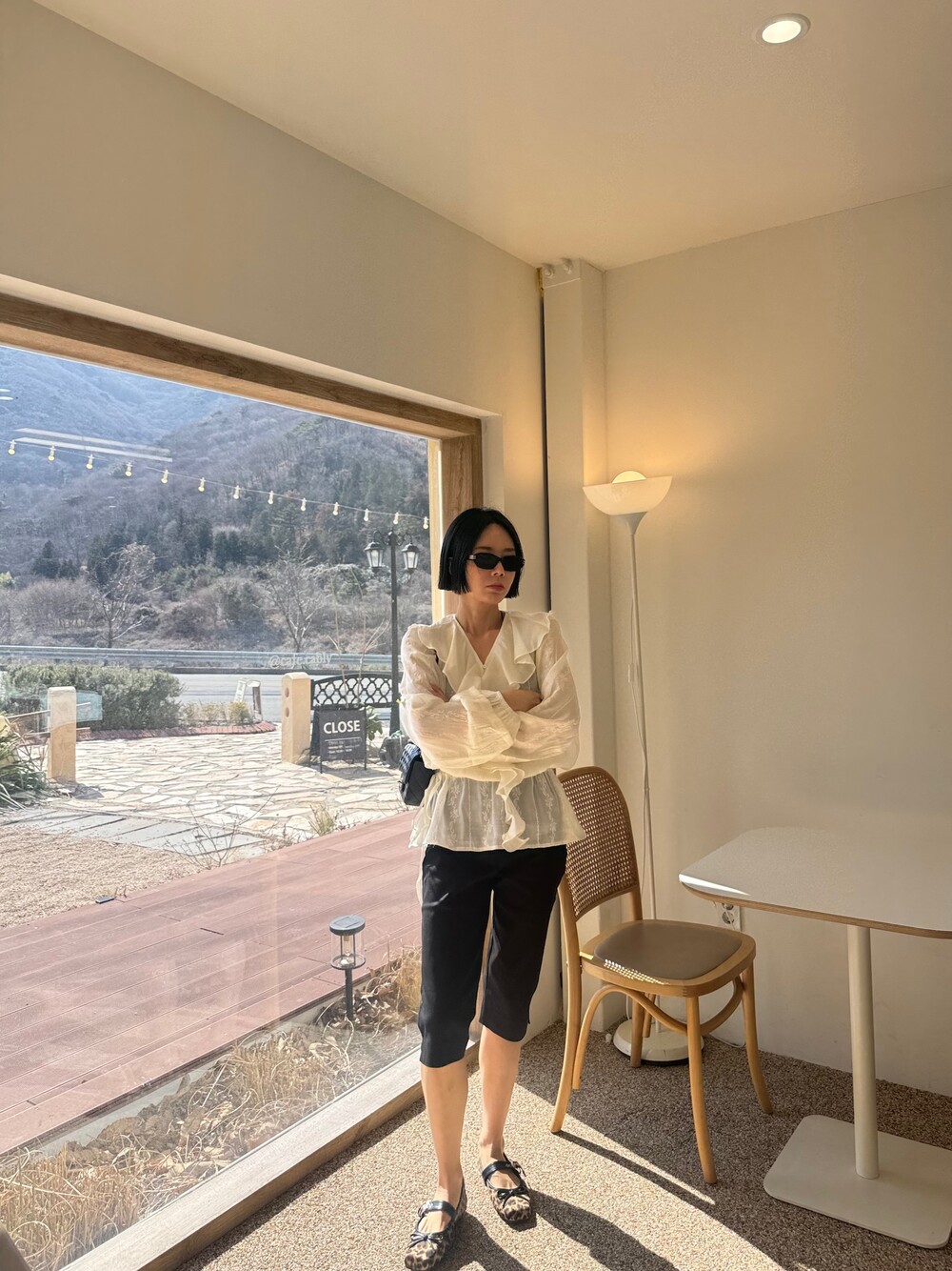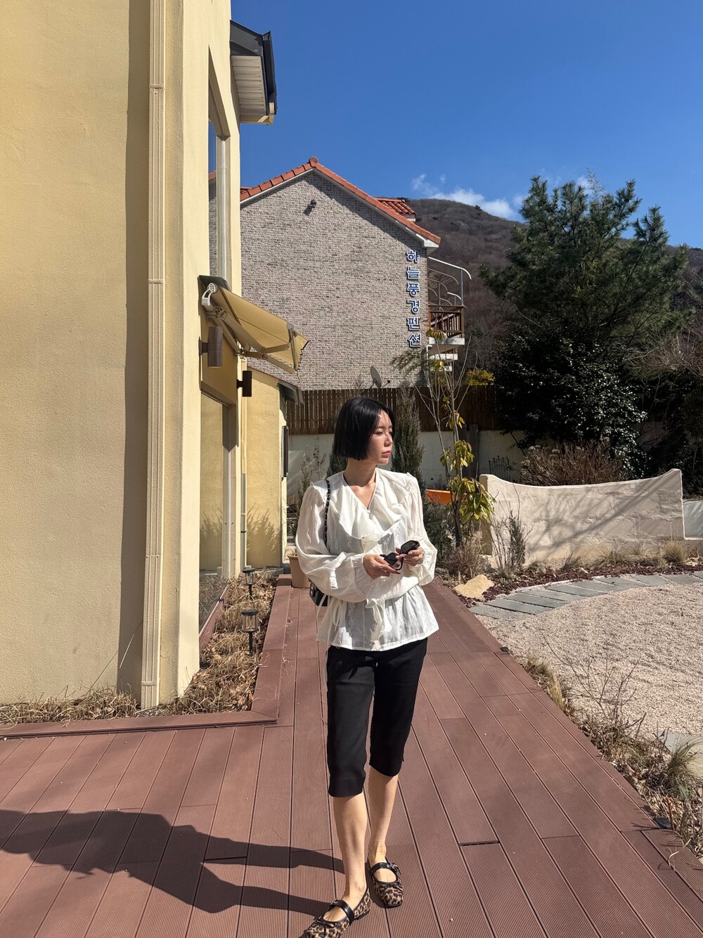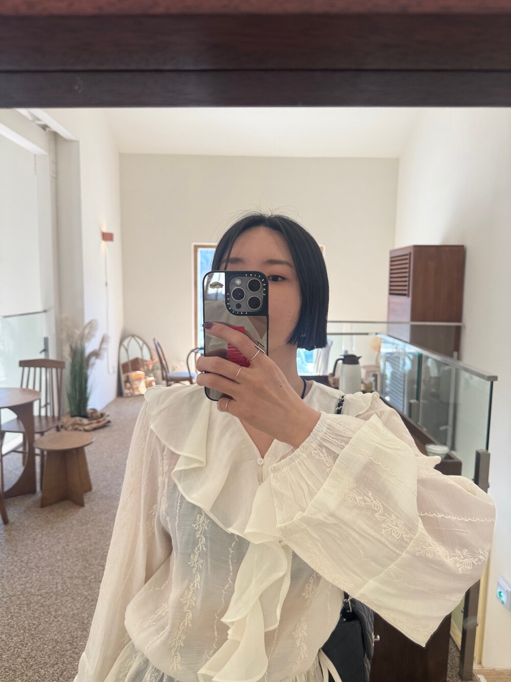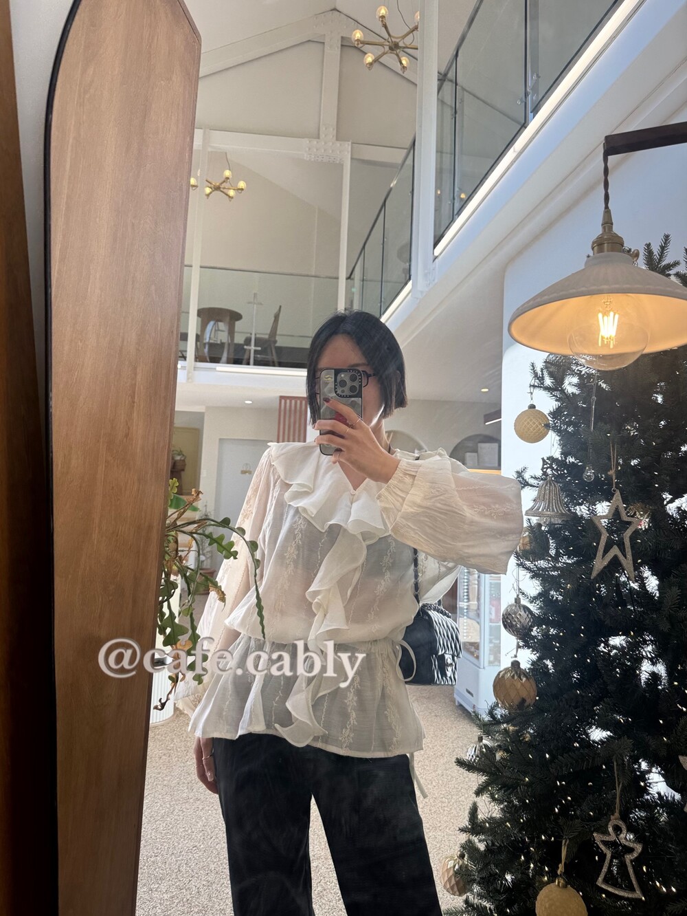풍성한 프릴 디테일로 얼굴선을 화사하게 살려주고