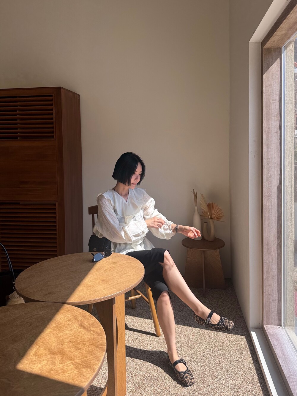 볼륨감 있는 소매라인으로 팔 라인을 자연스럽게 커버해