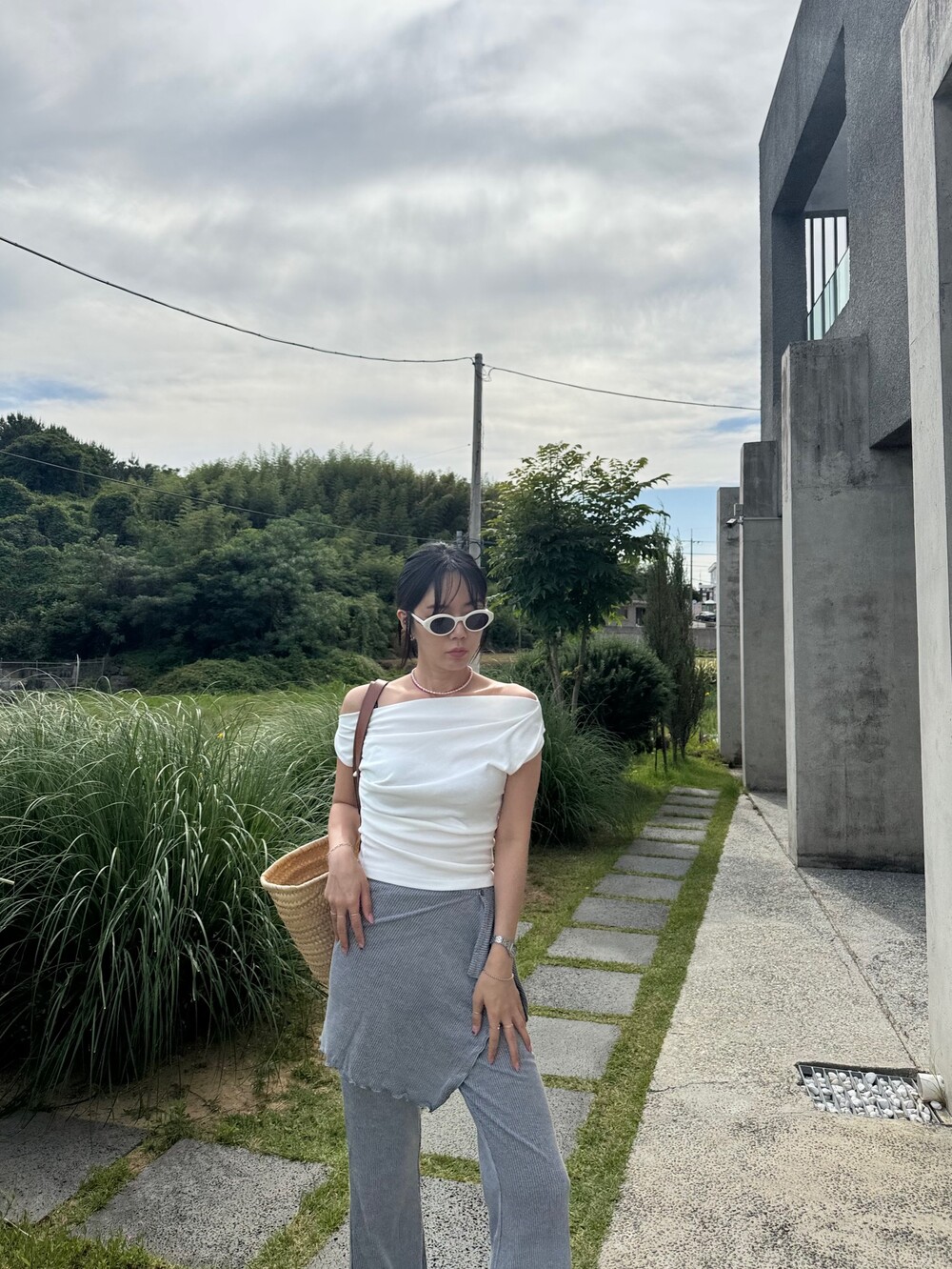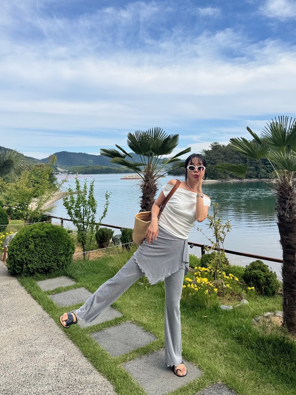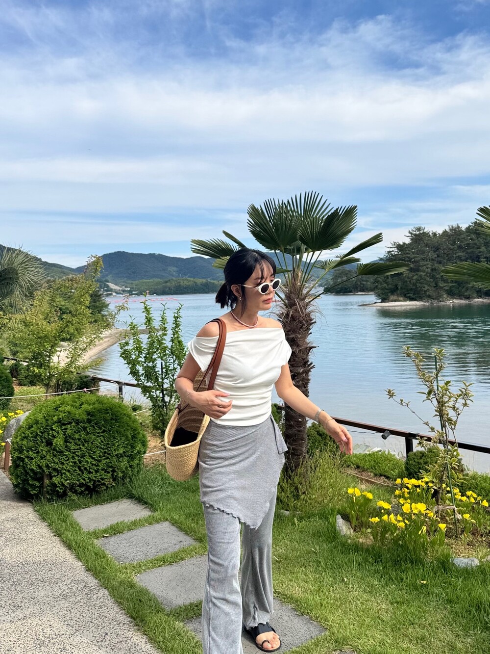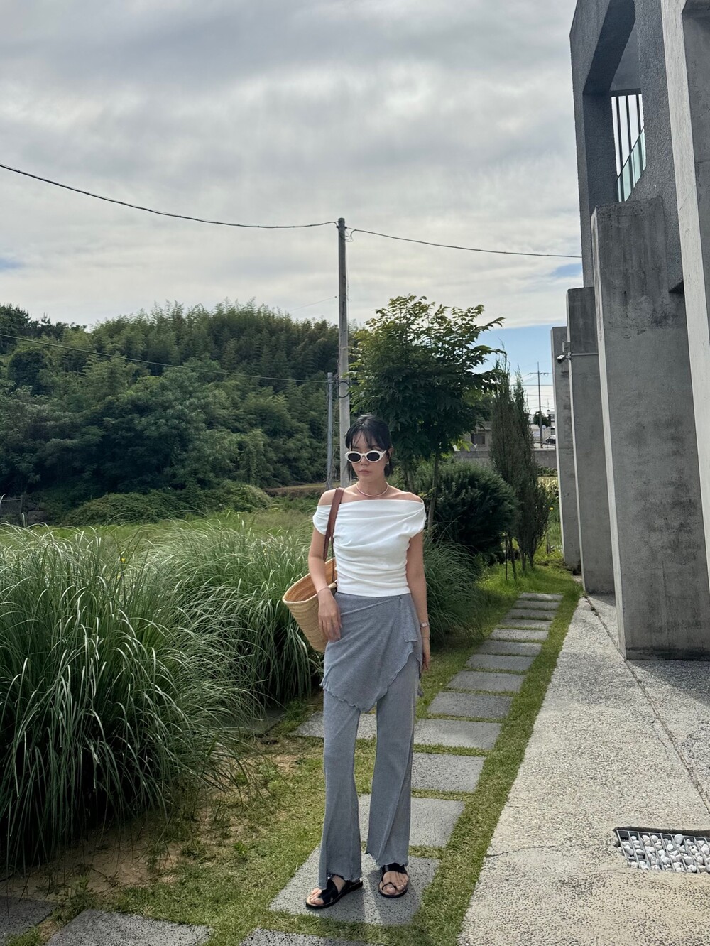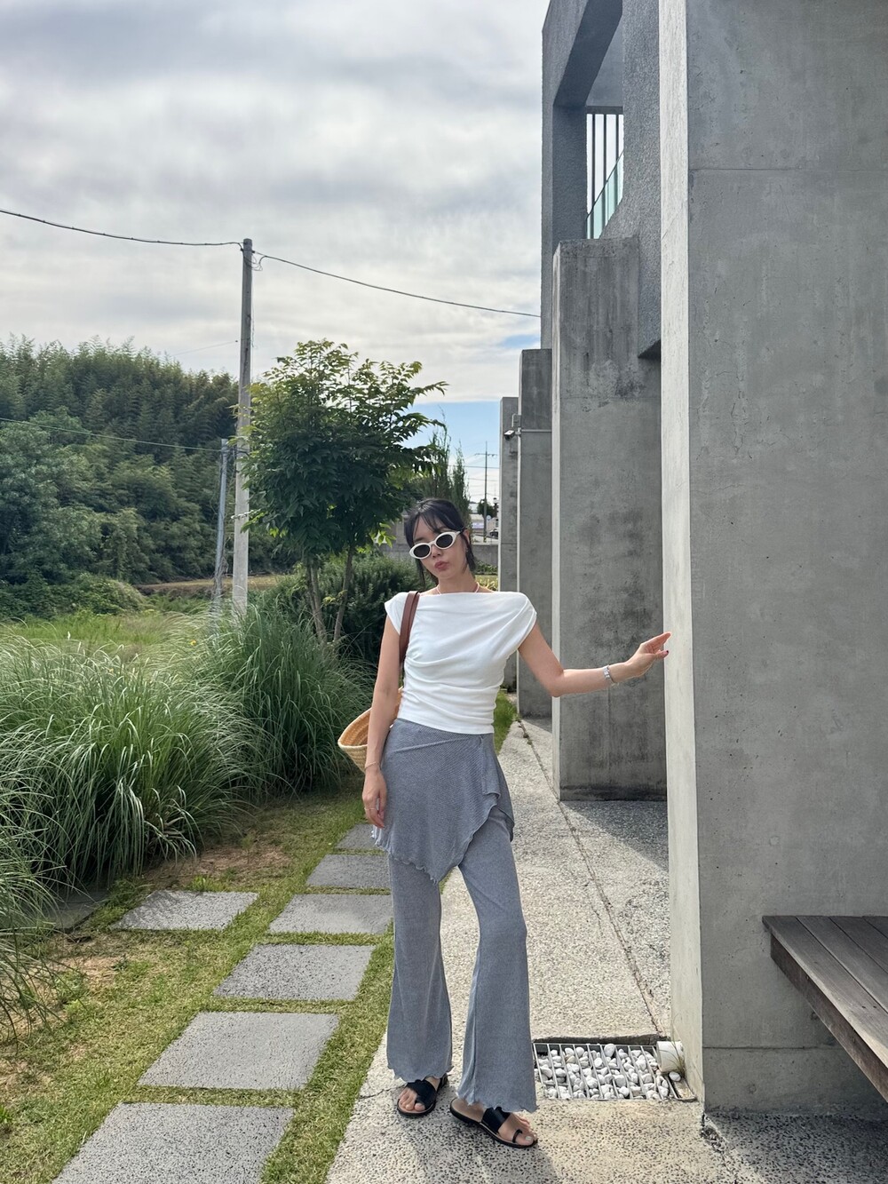 특징: 신축성 O, 비침 X, 안감 X , 두께감 보통, 무게감 보통