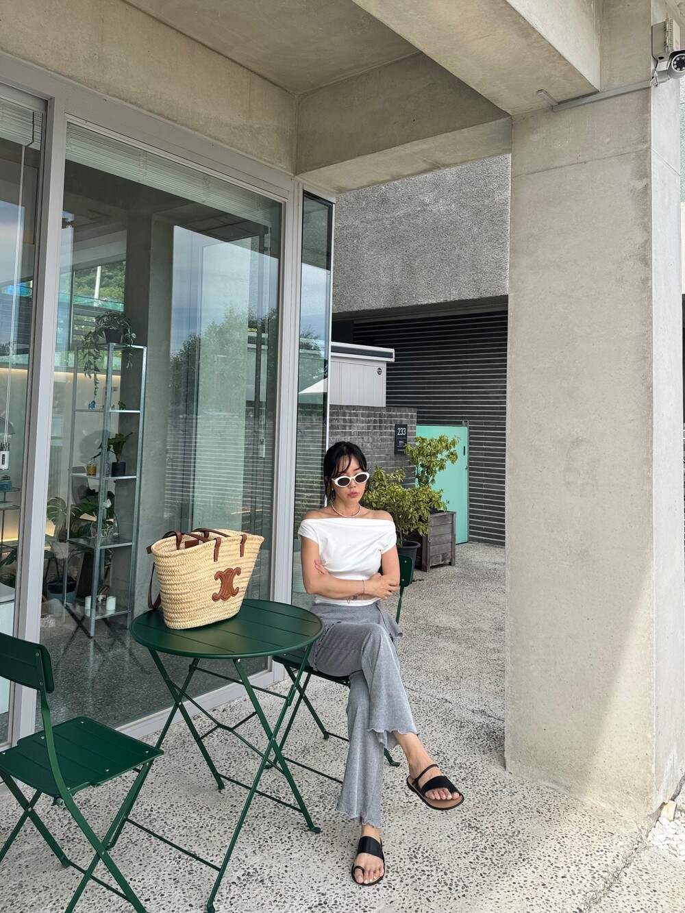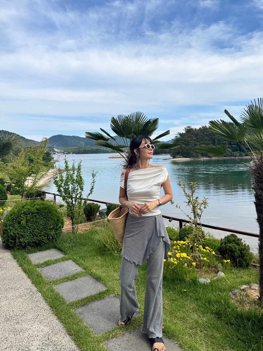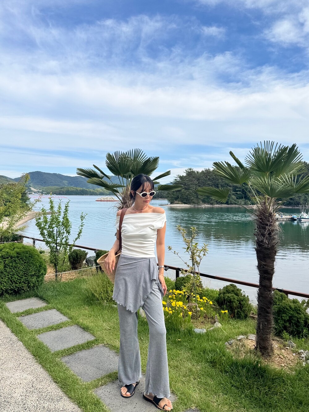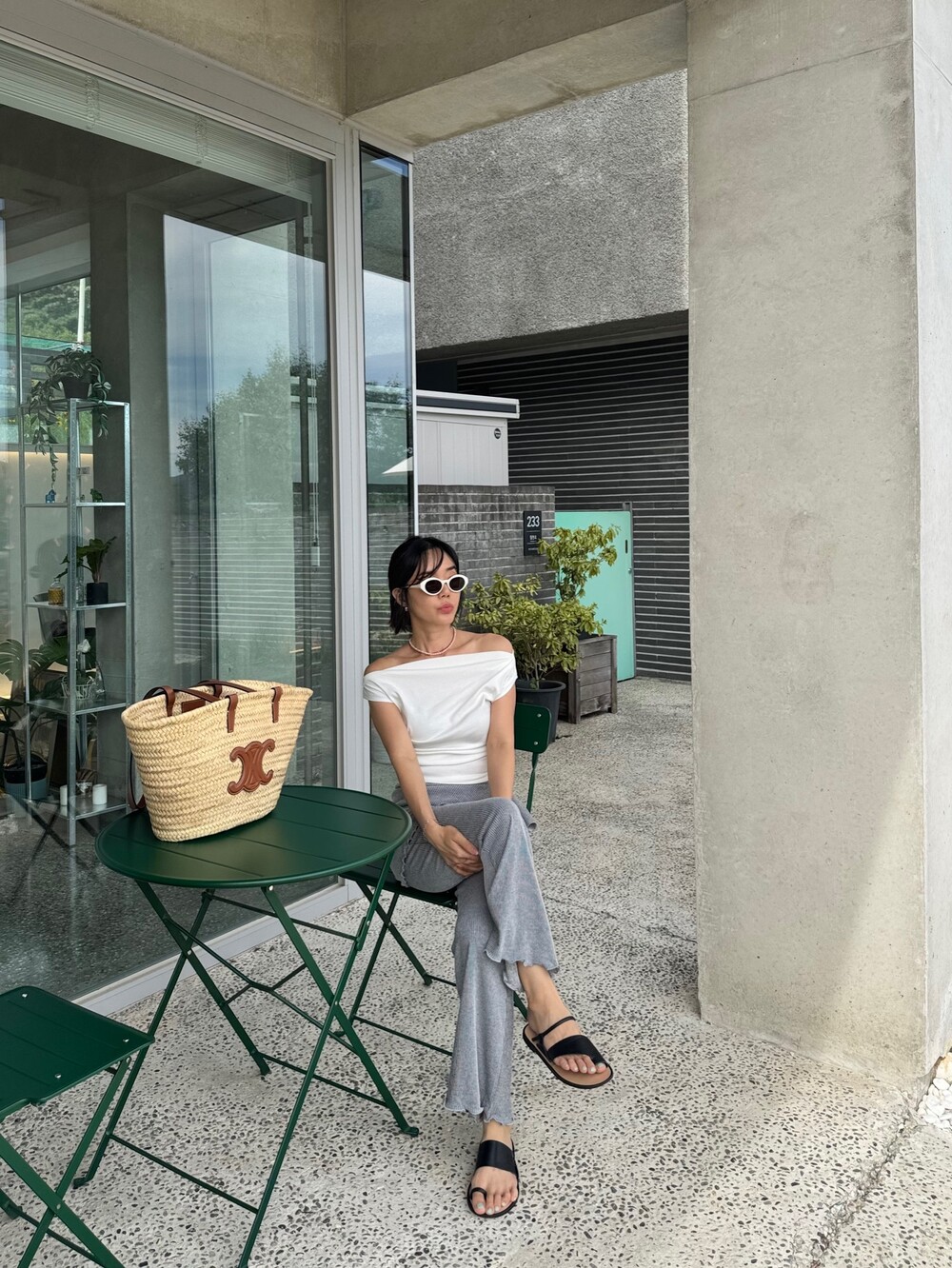 특징: 신축성 O, 비침 X, 안감 X , 두께감 보통, 무게감 보통
