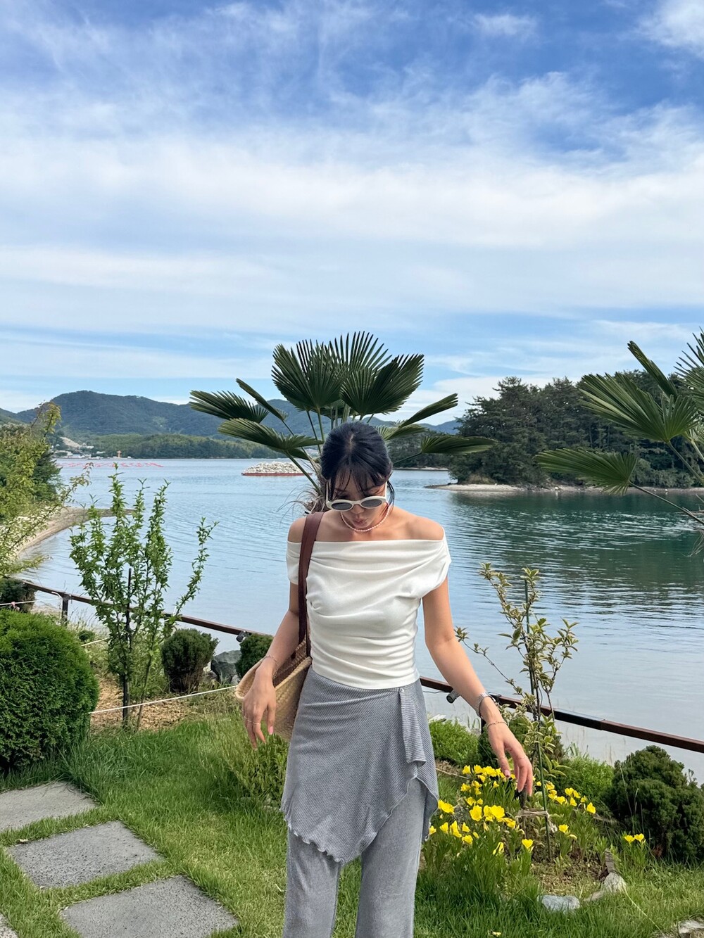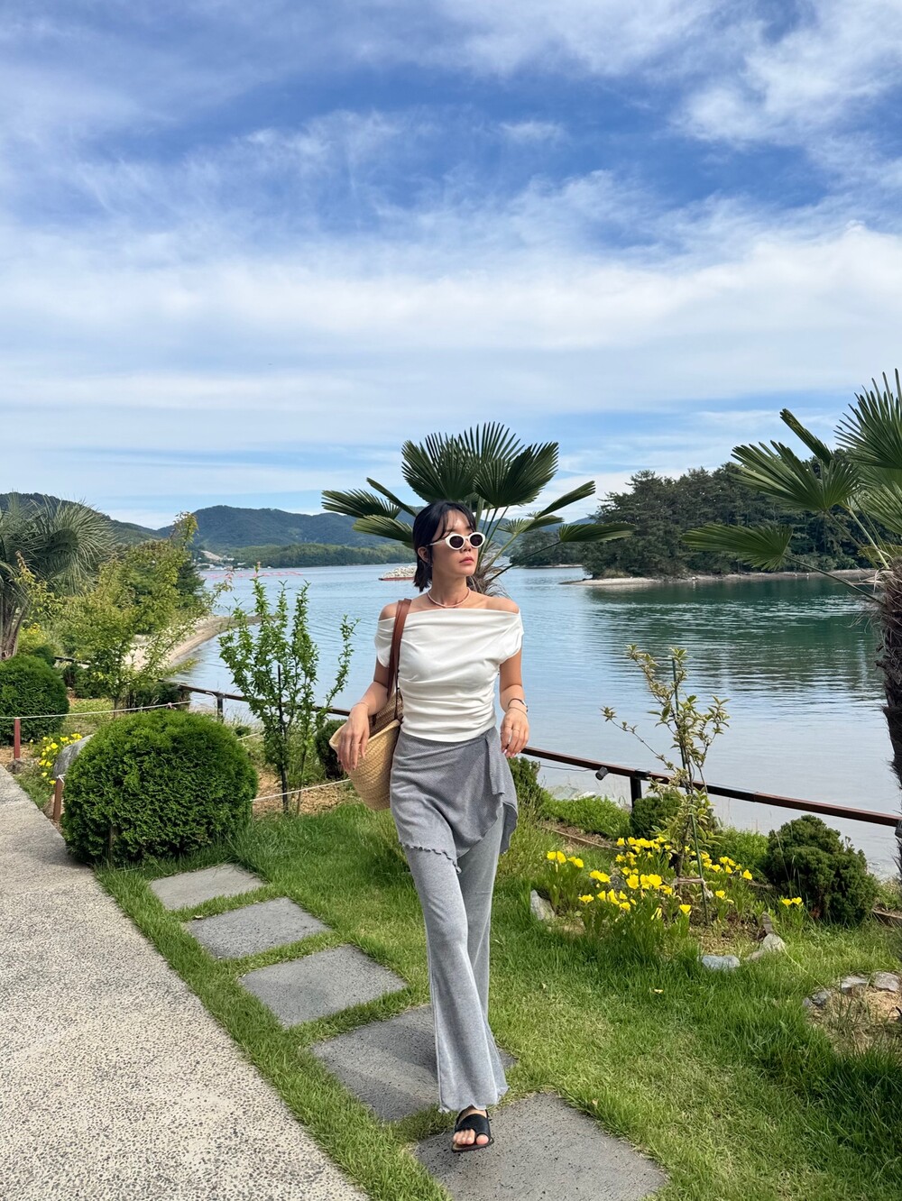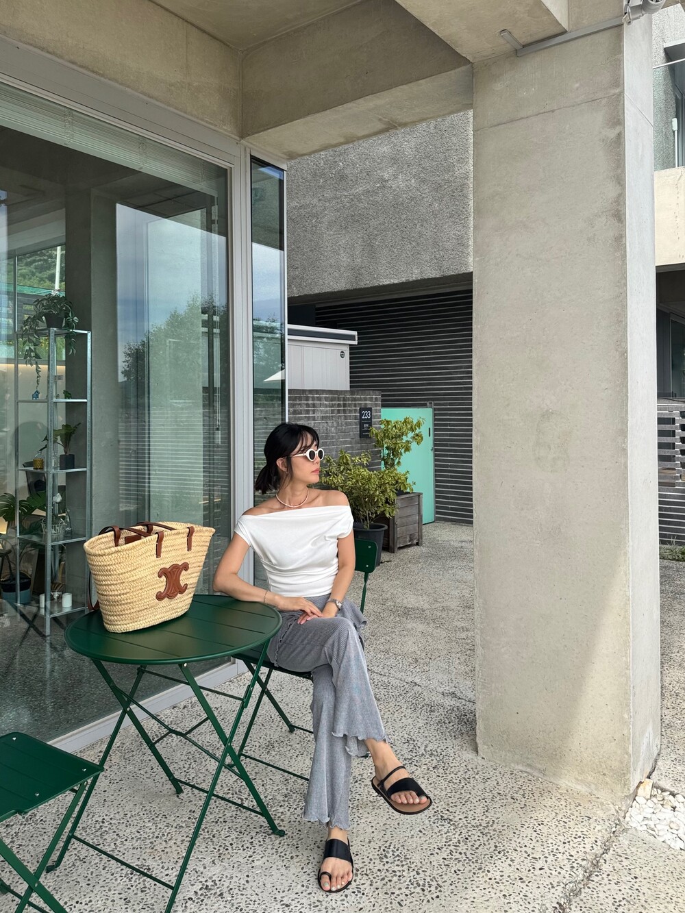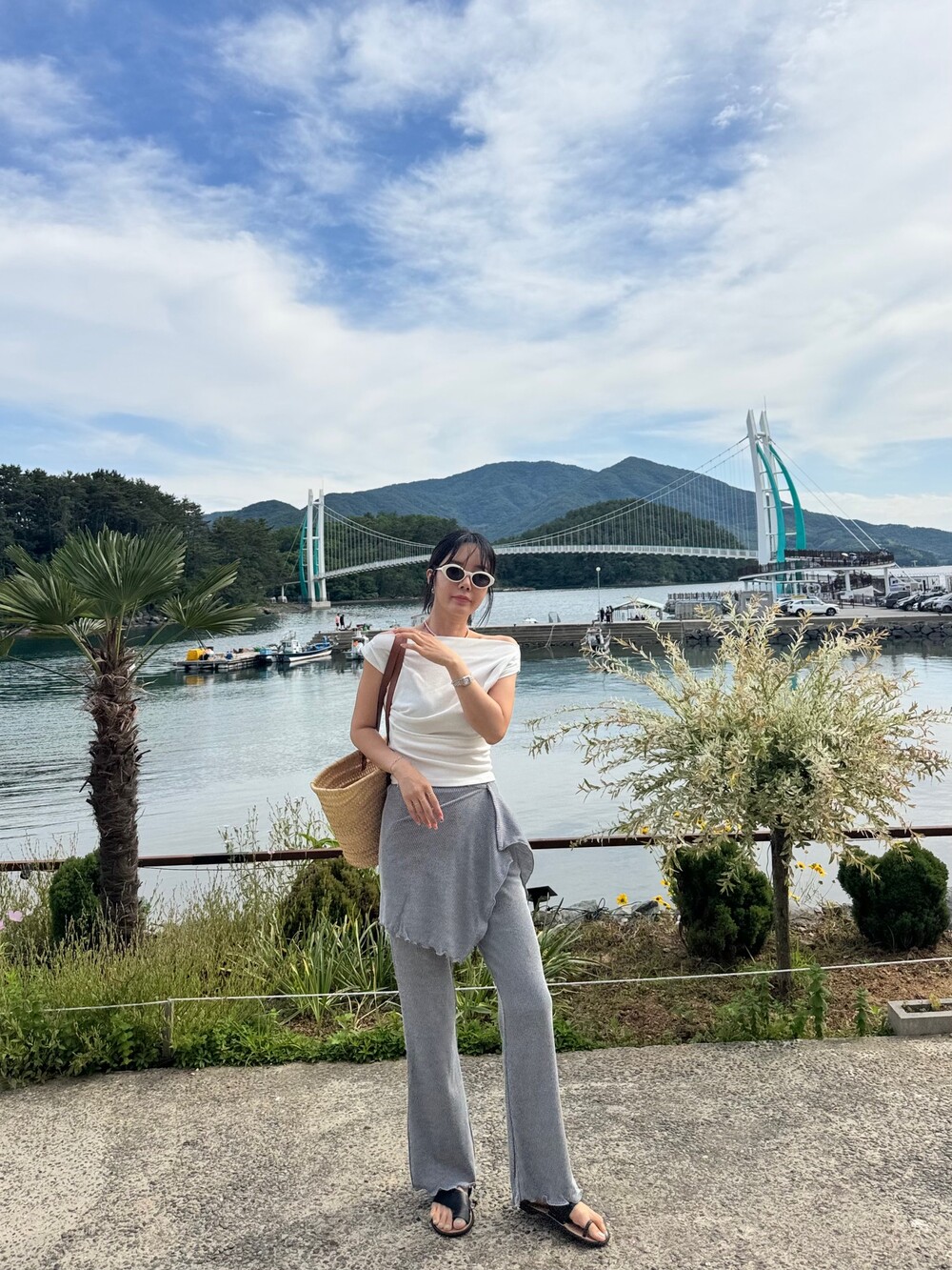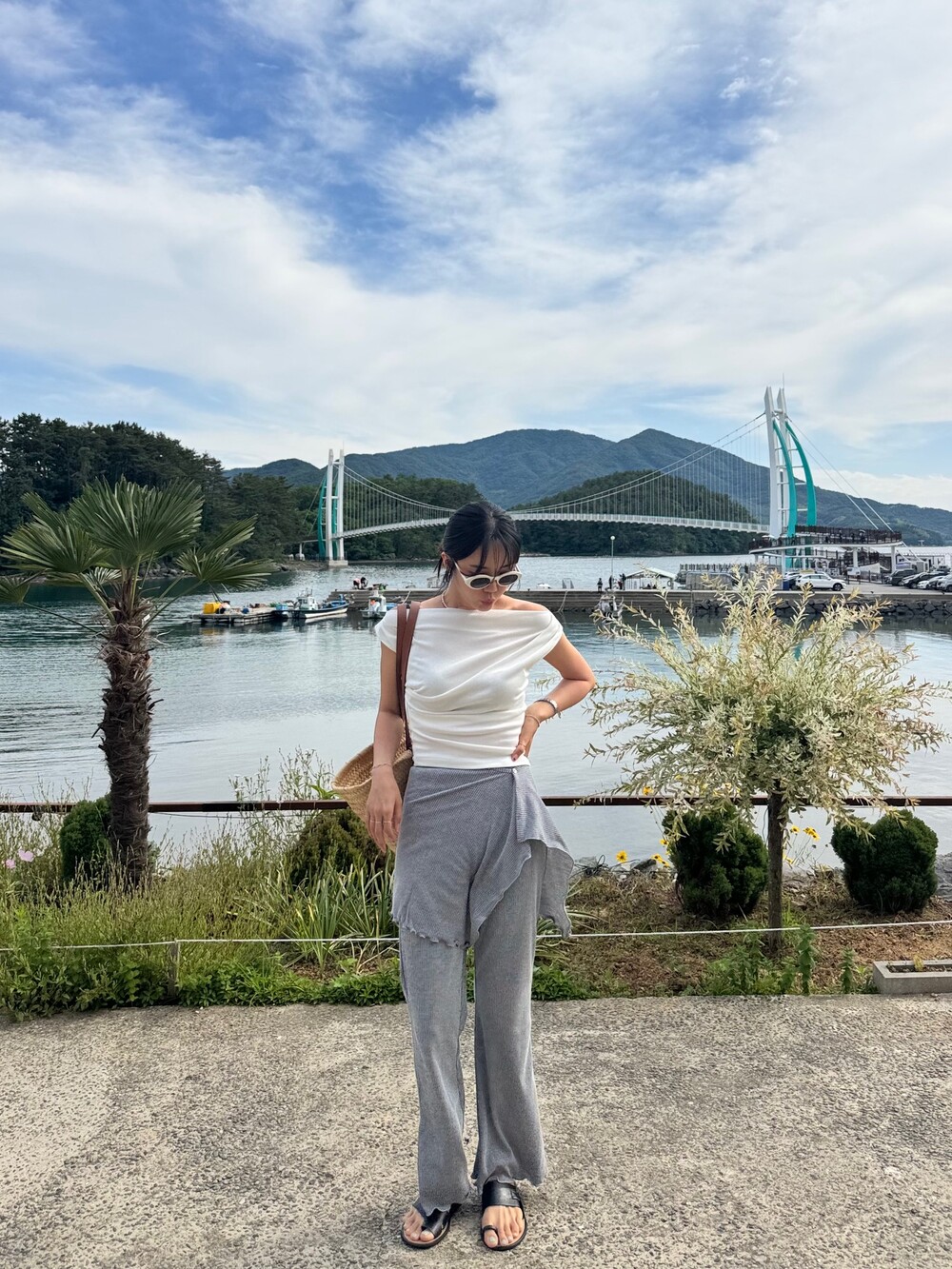 특징: 신축성 O, 비침 X, 안감 X , 두께감 보통, 무게감 보통