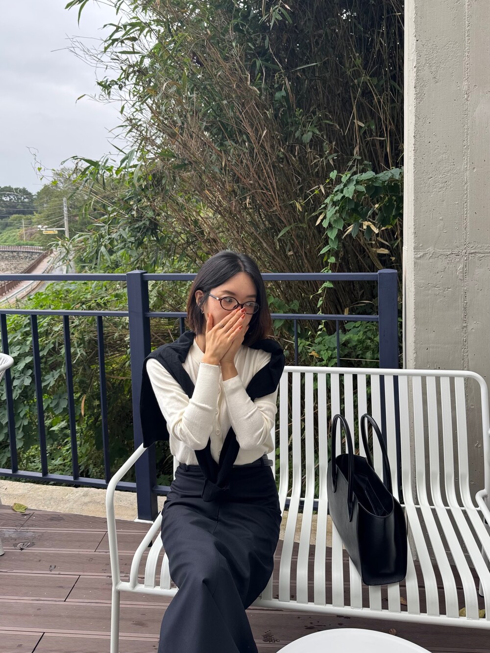 특징: 신축성 O, 비침 X, 안감 X , 두께감 보통, 무게감 보통