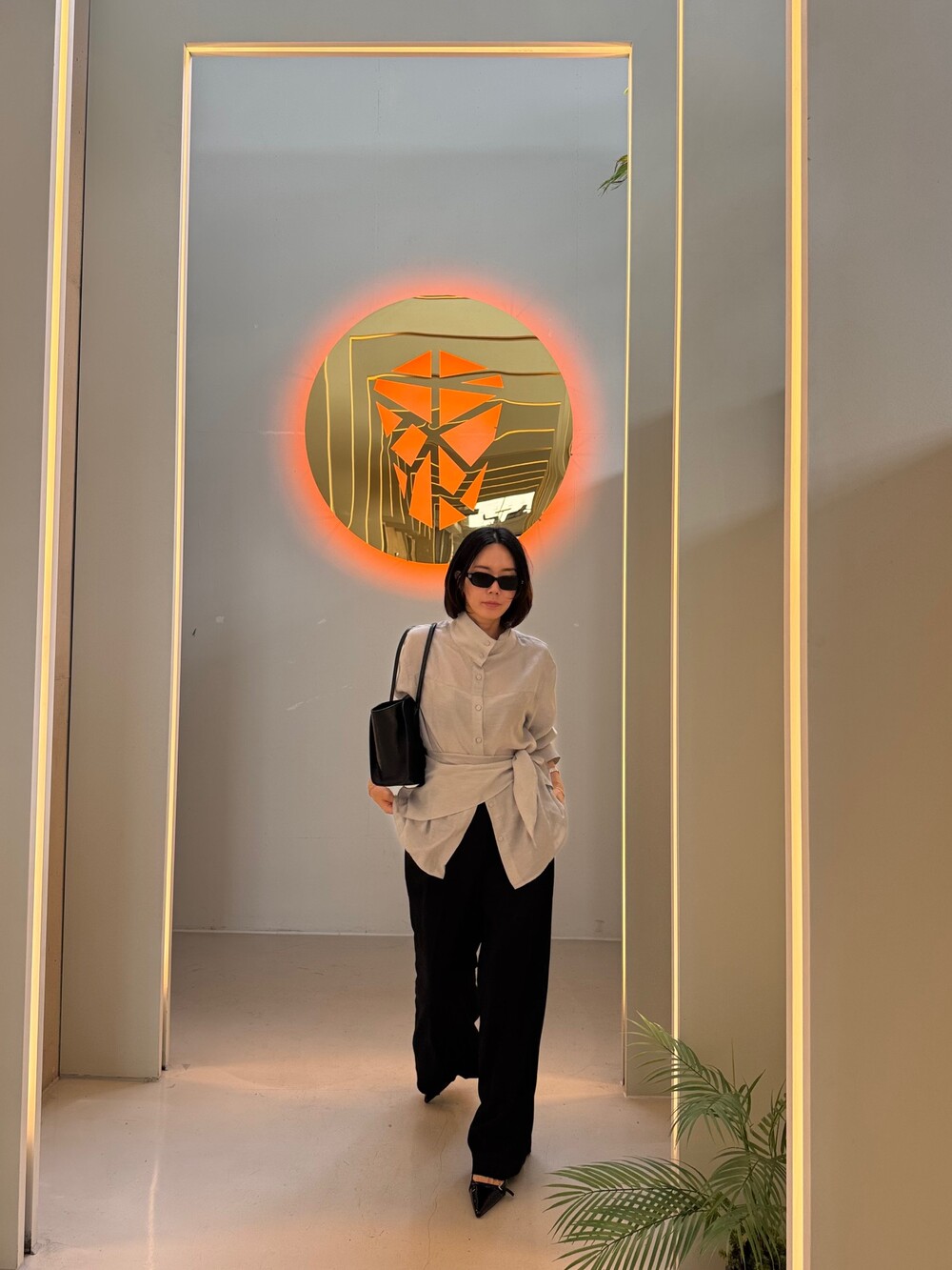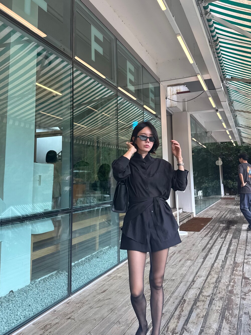 특징: 신축성 O, 비침 밝은 컬러 있음, 안감 X , 두께감 보통, 무게감 보통