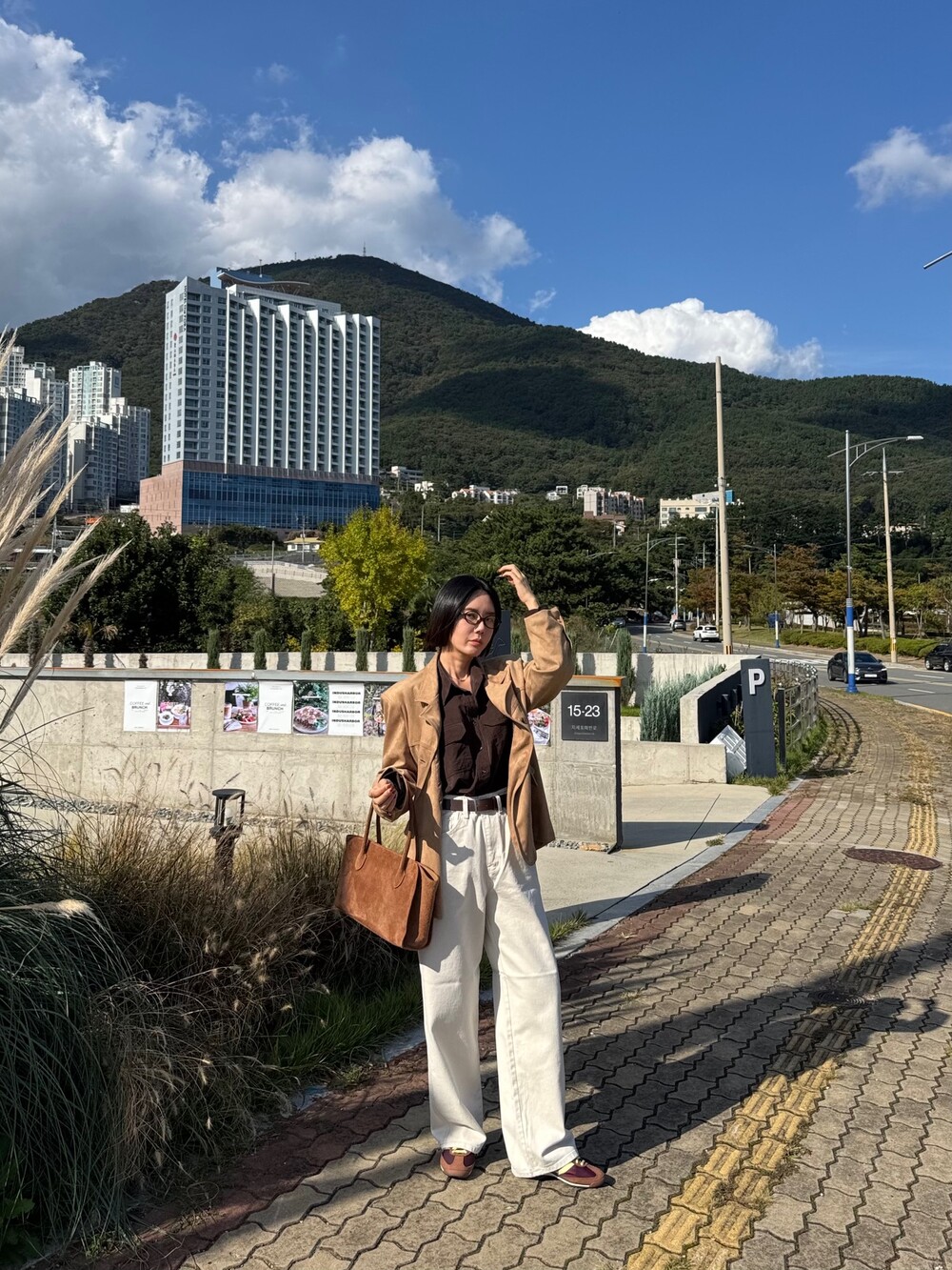 특징: 신축성 O, 비침 X, 안감 O , 두께감 보통, 무게감 보통