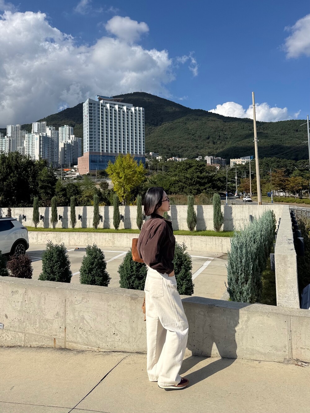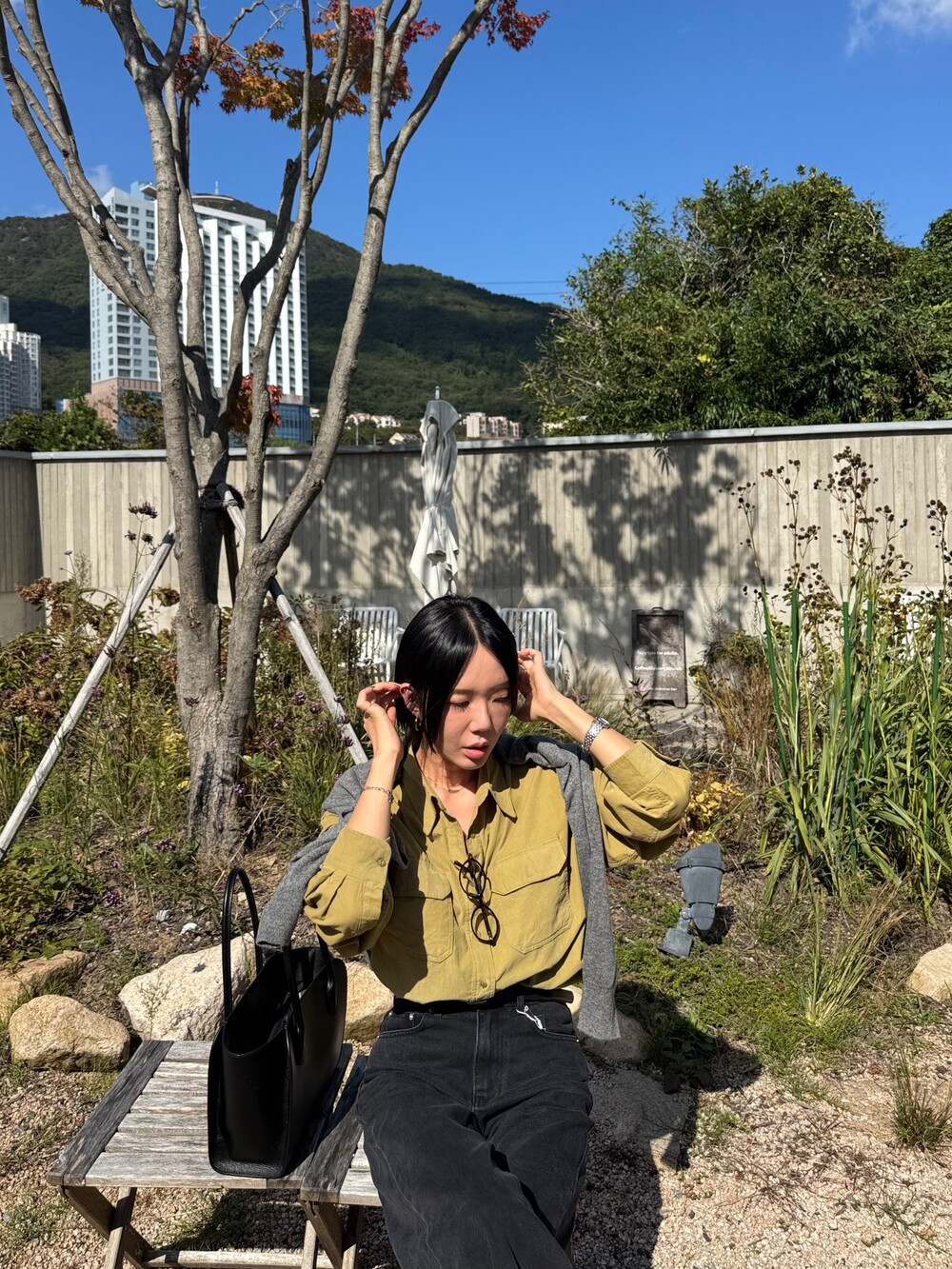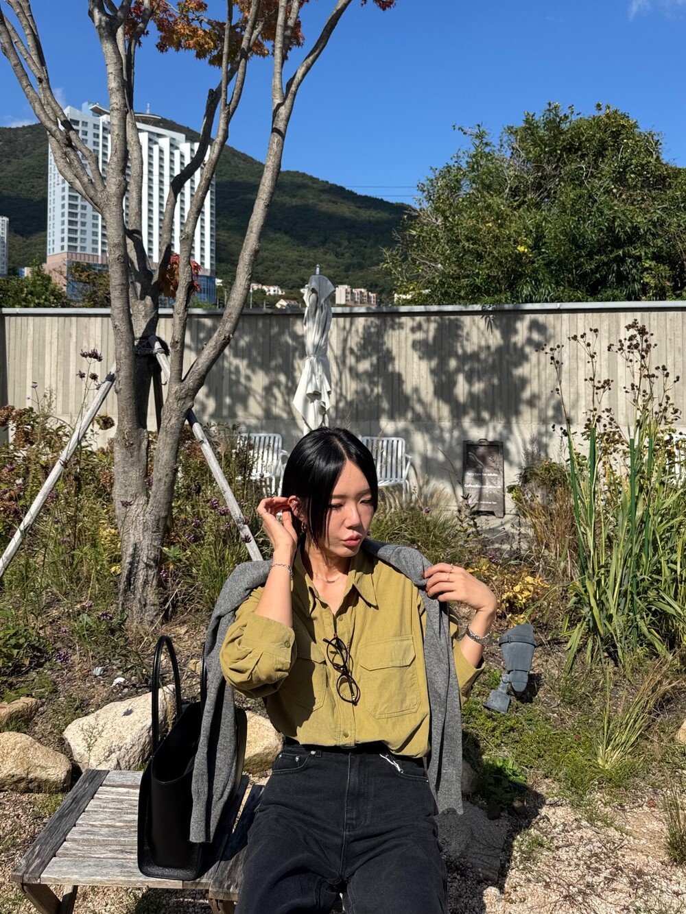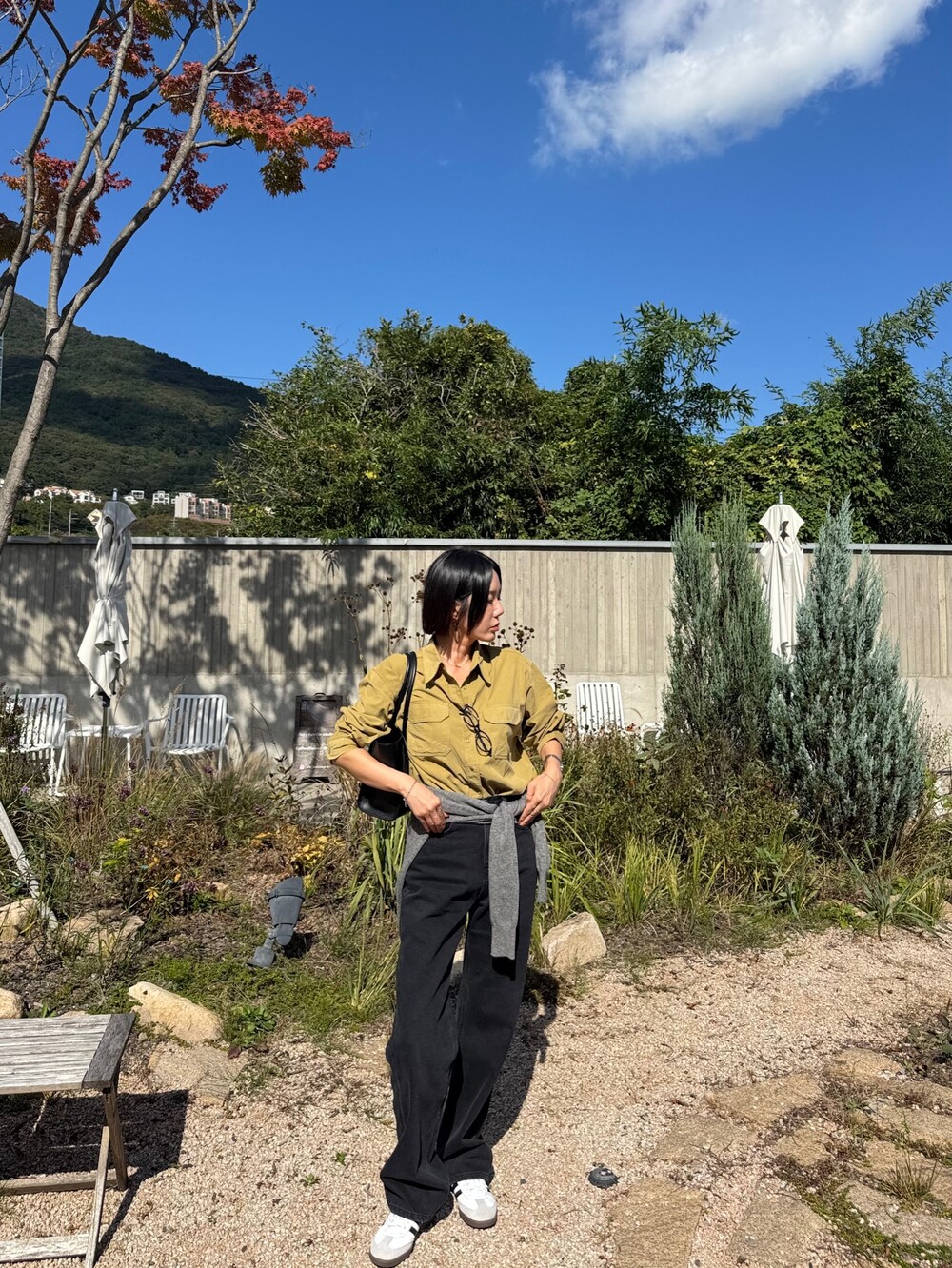 특징: 신축성 O, 비침 X, 안감 X , 두께감 보통, 무게감 보통