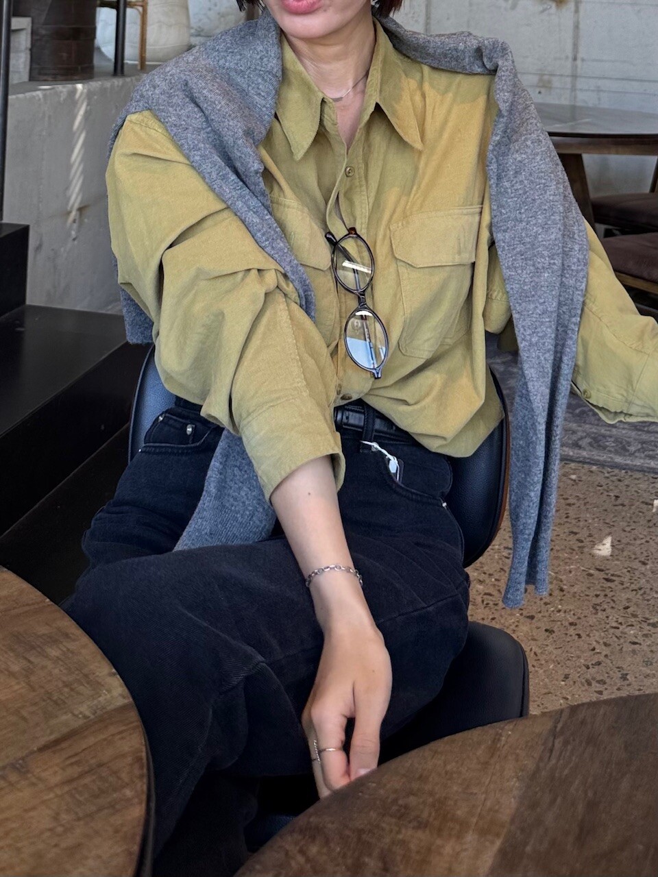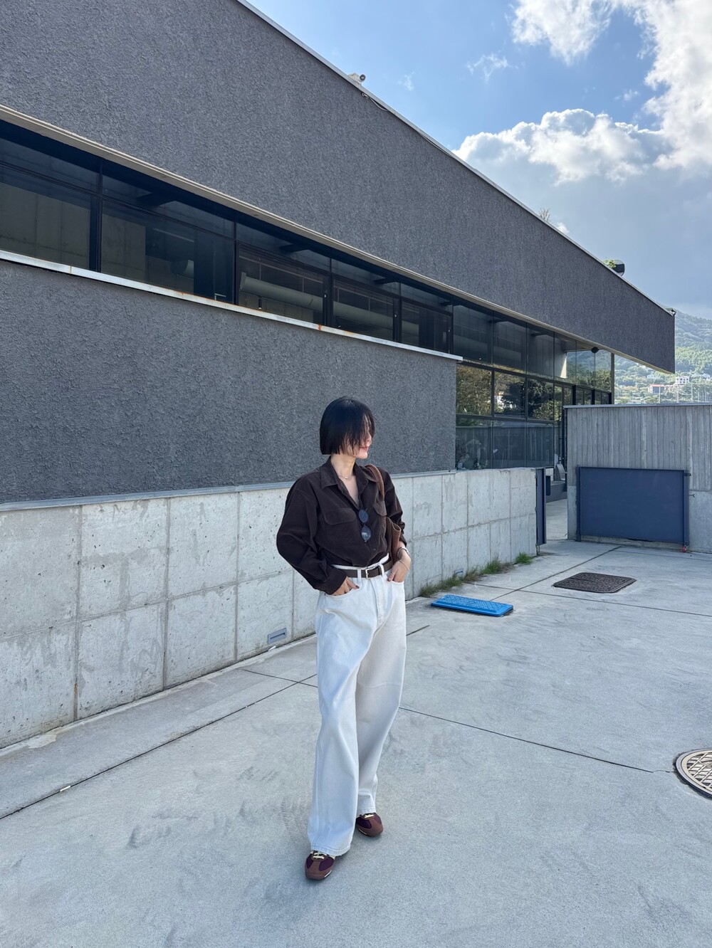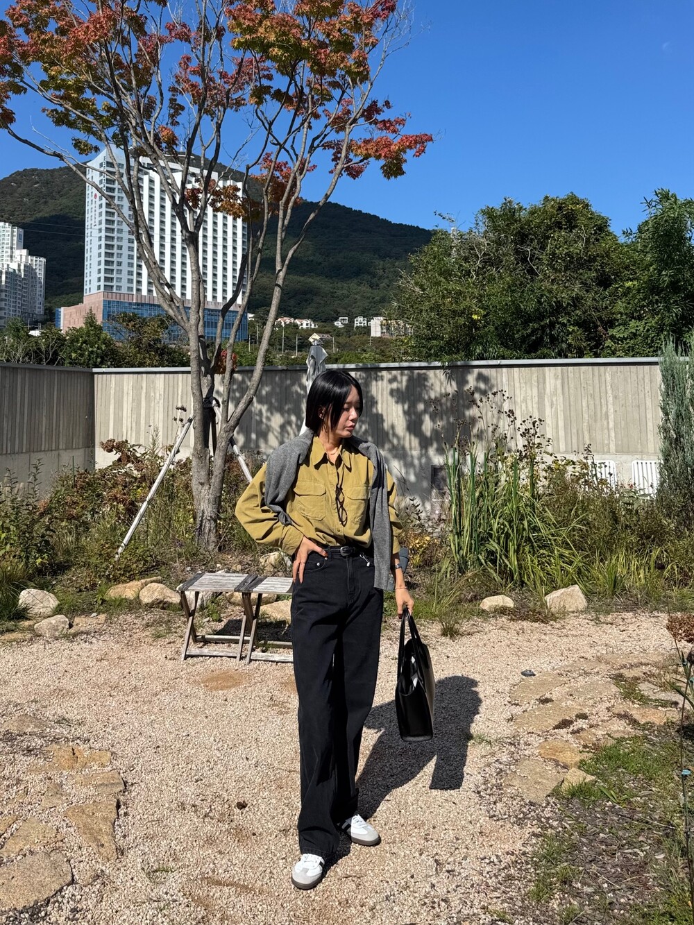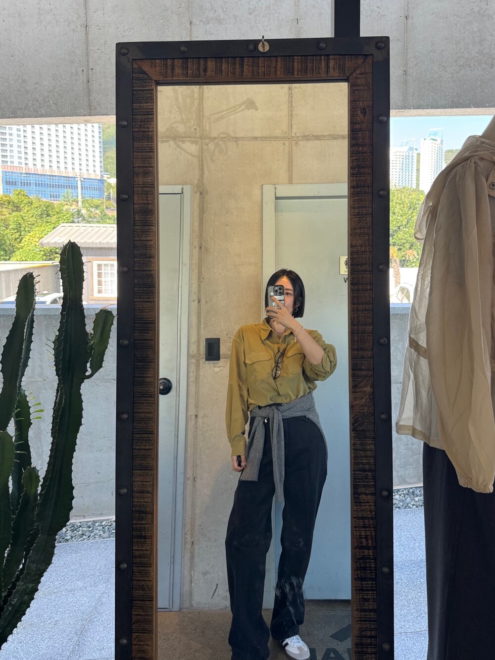 특징: 신축성 O, 비침 X, 안감 X , 두께감 보통, 무게감 보통