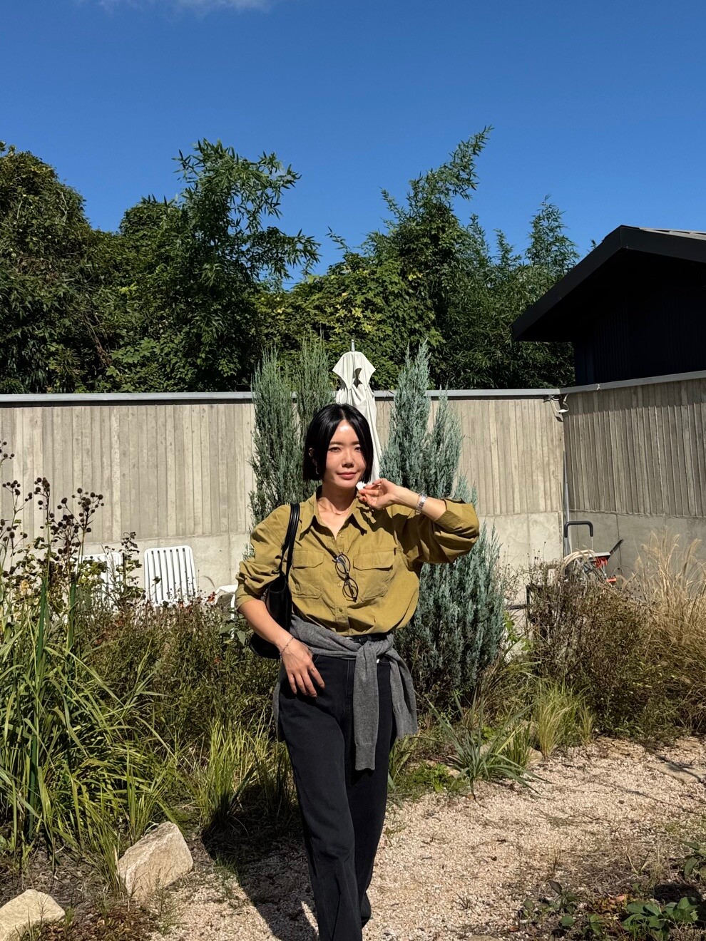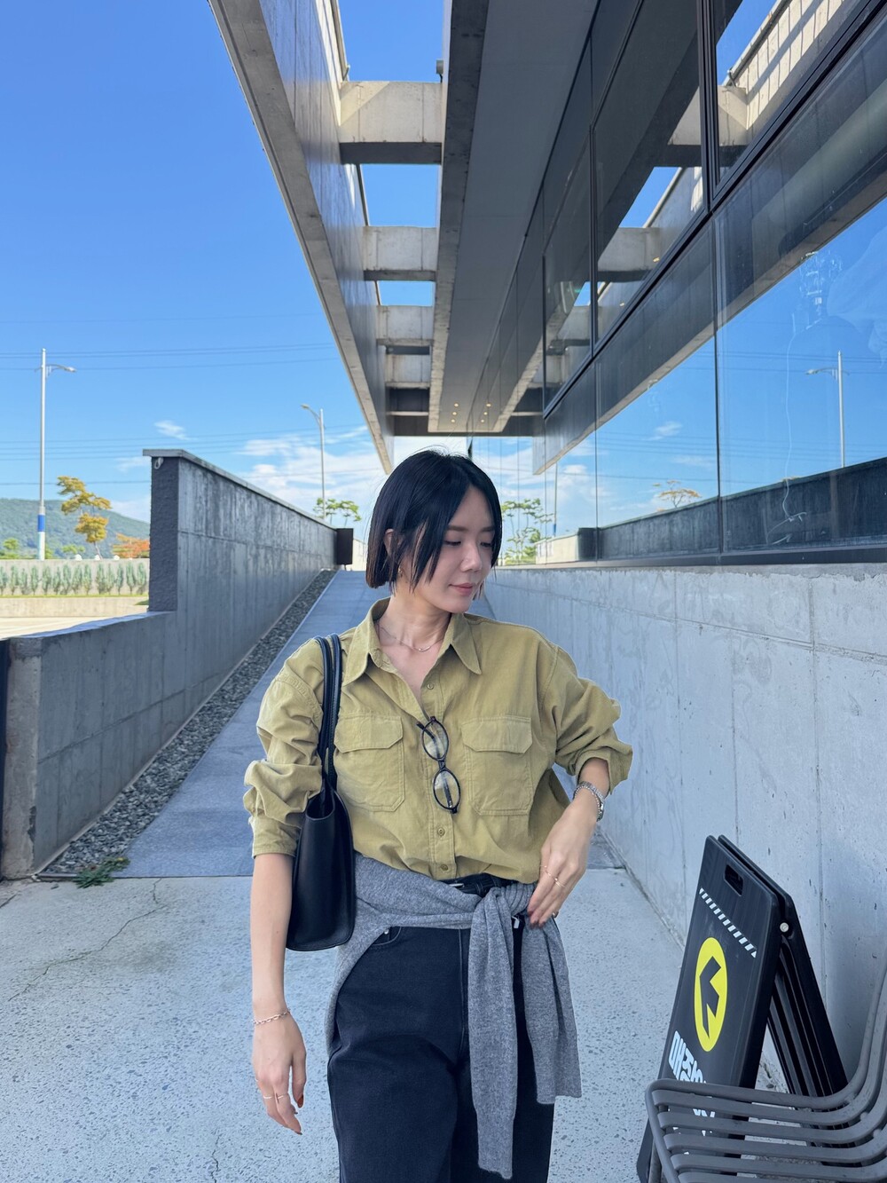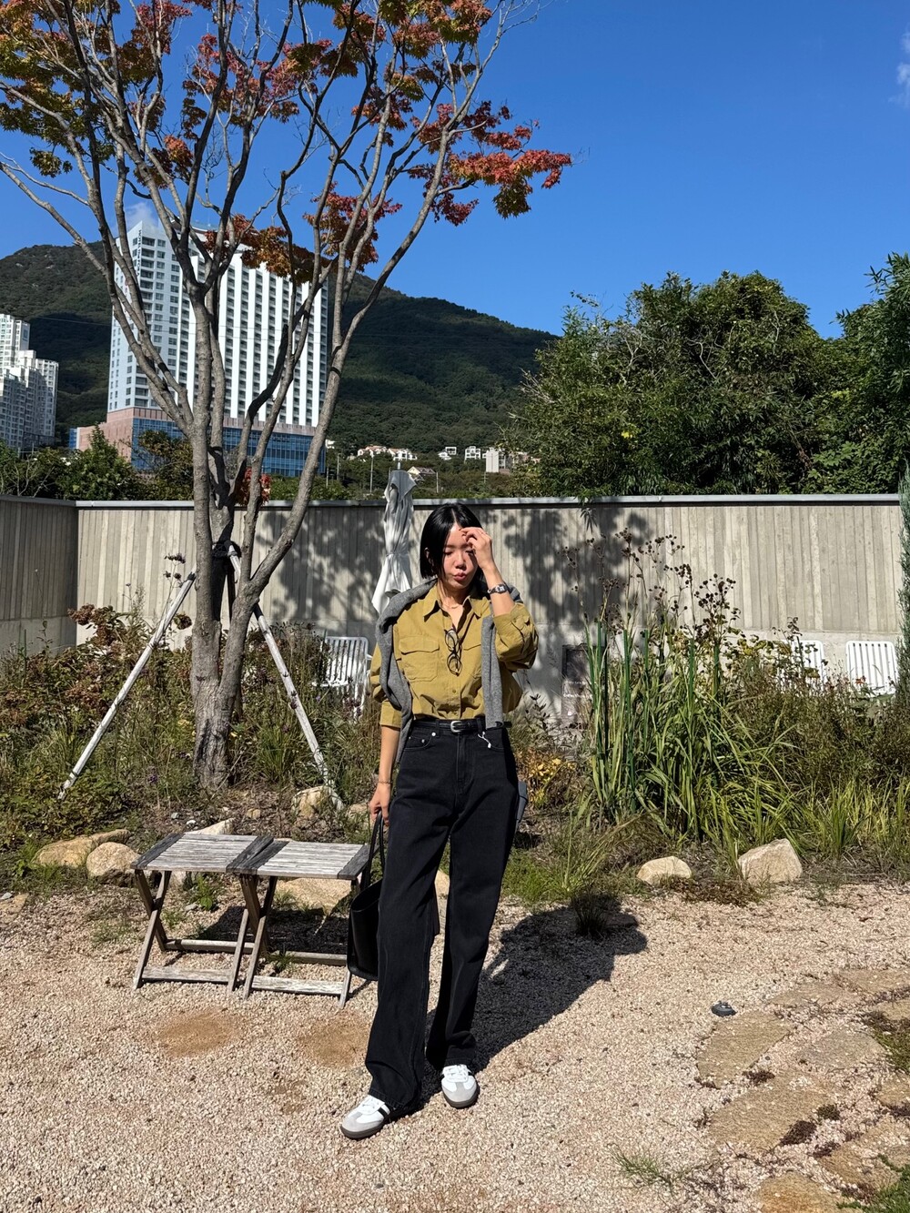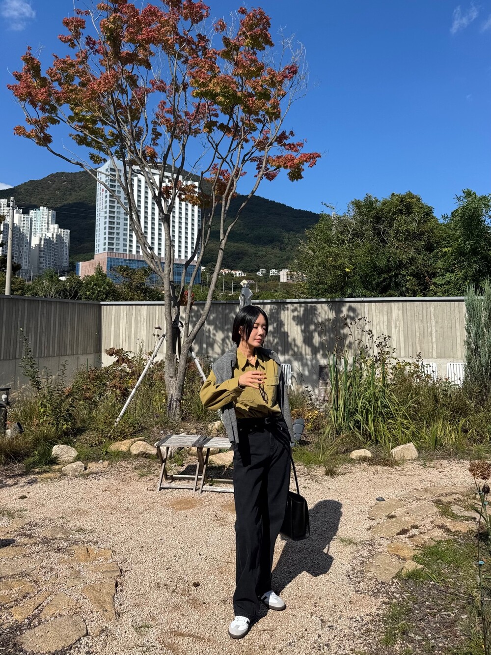 특징: 신축성 O, 비침 X, 안감 X , 두께감 보통, 무게감 보통