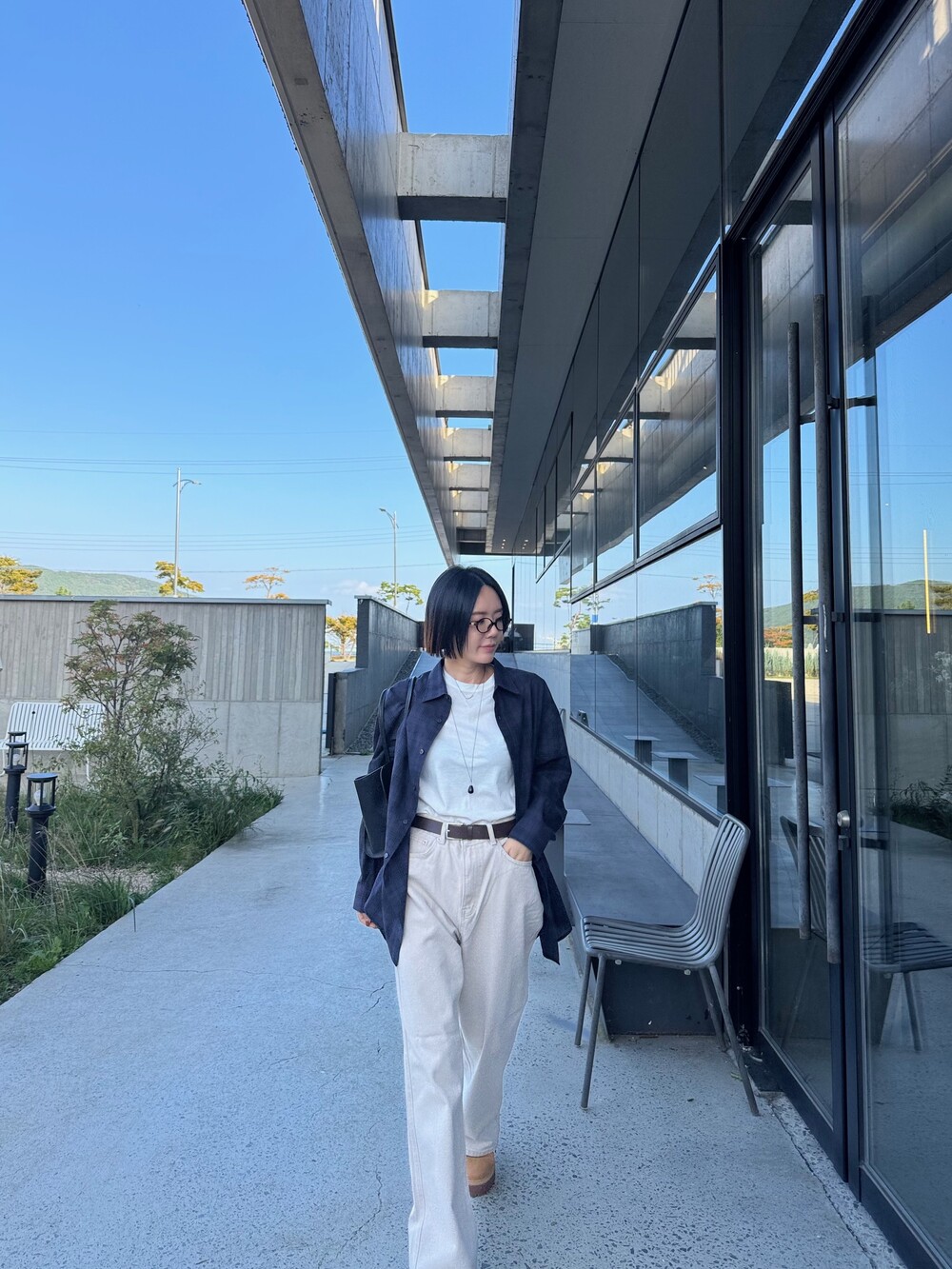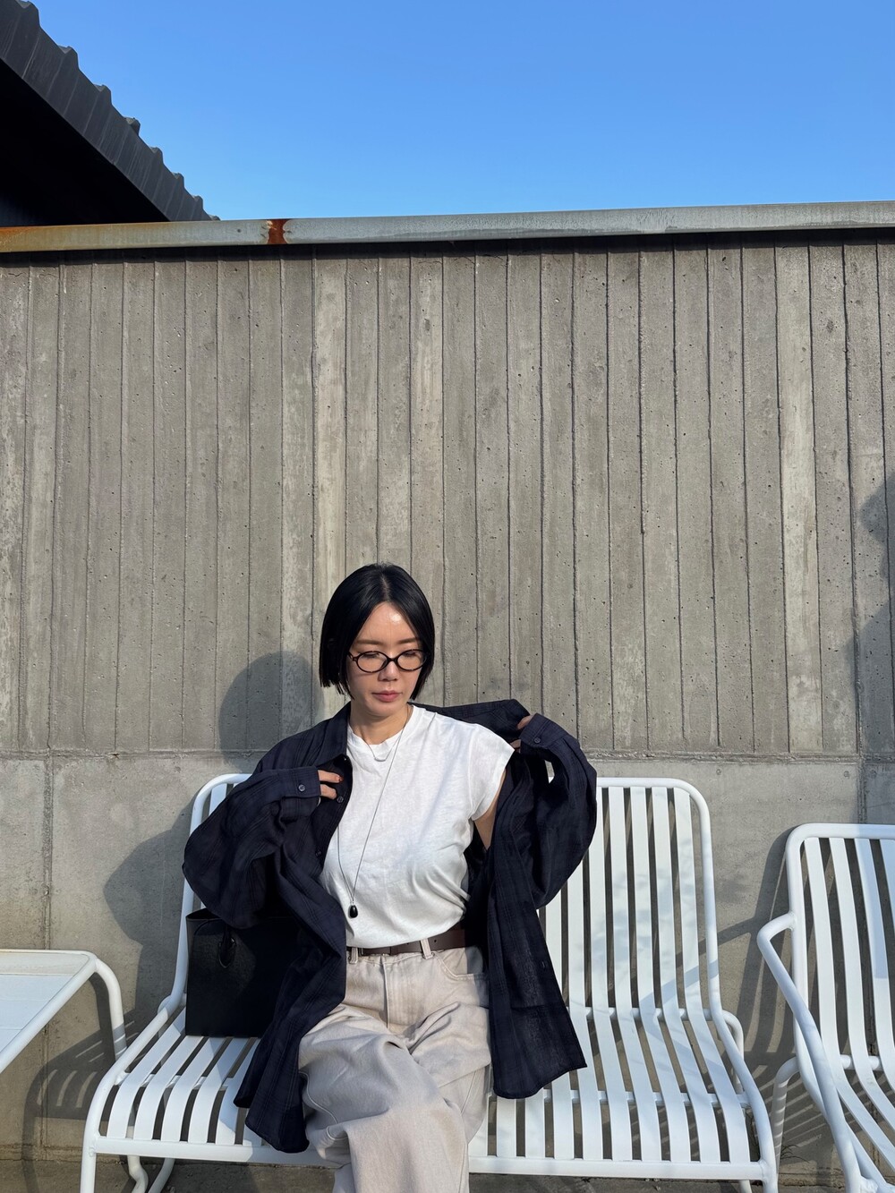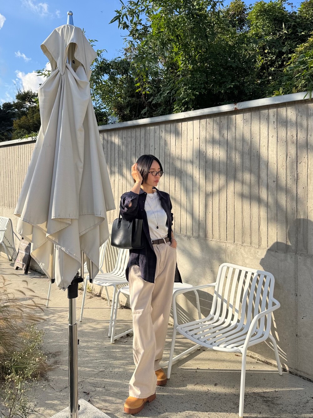 특징: 신축성 O, 비침 X, 안감 X , 두께감 보통, 무게감 보통