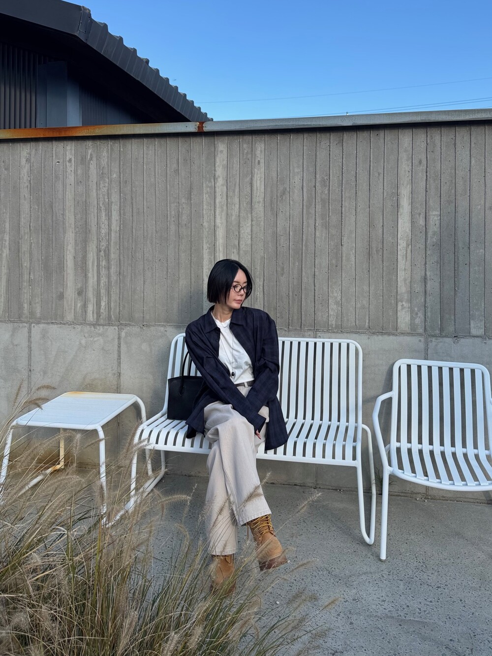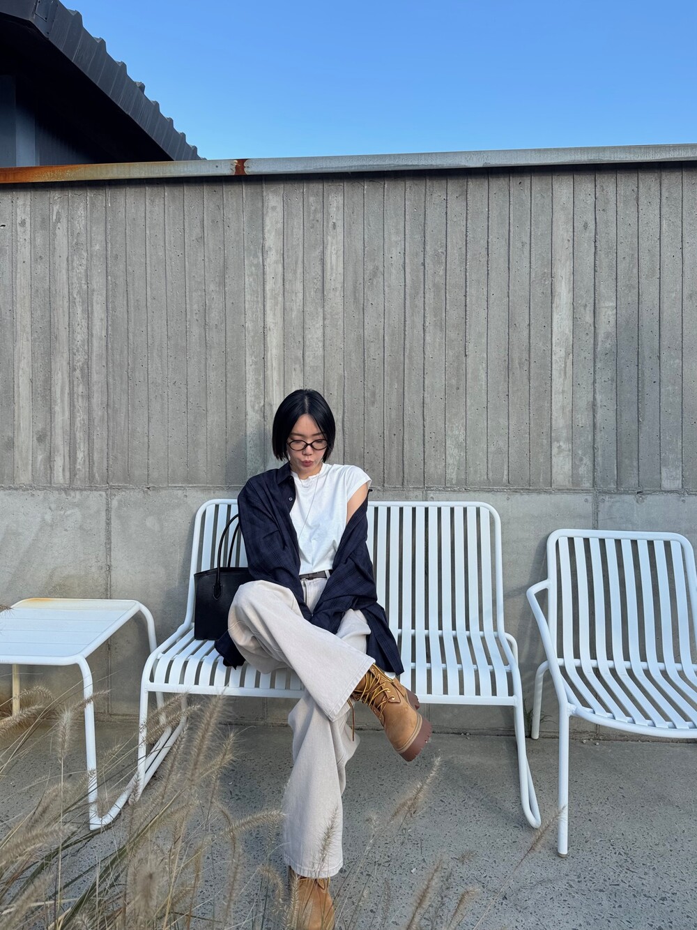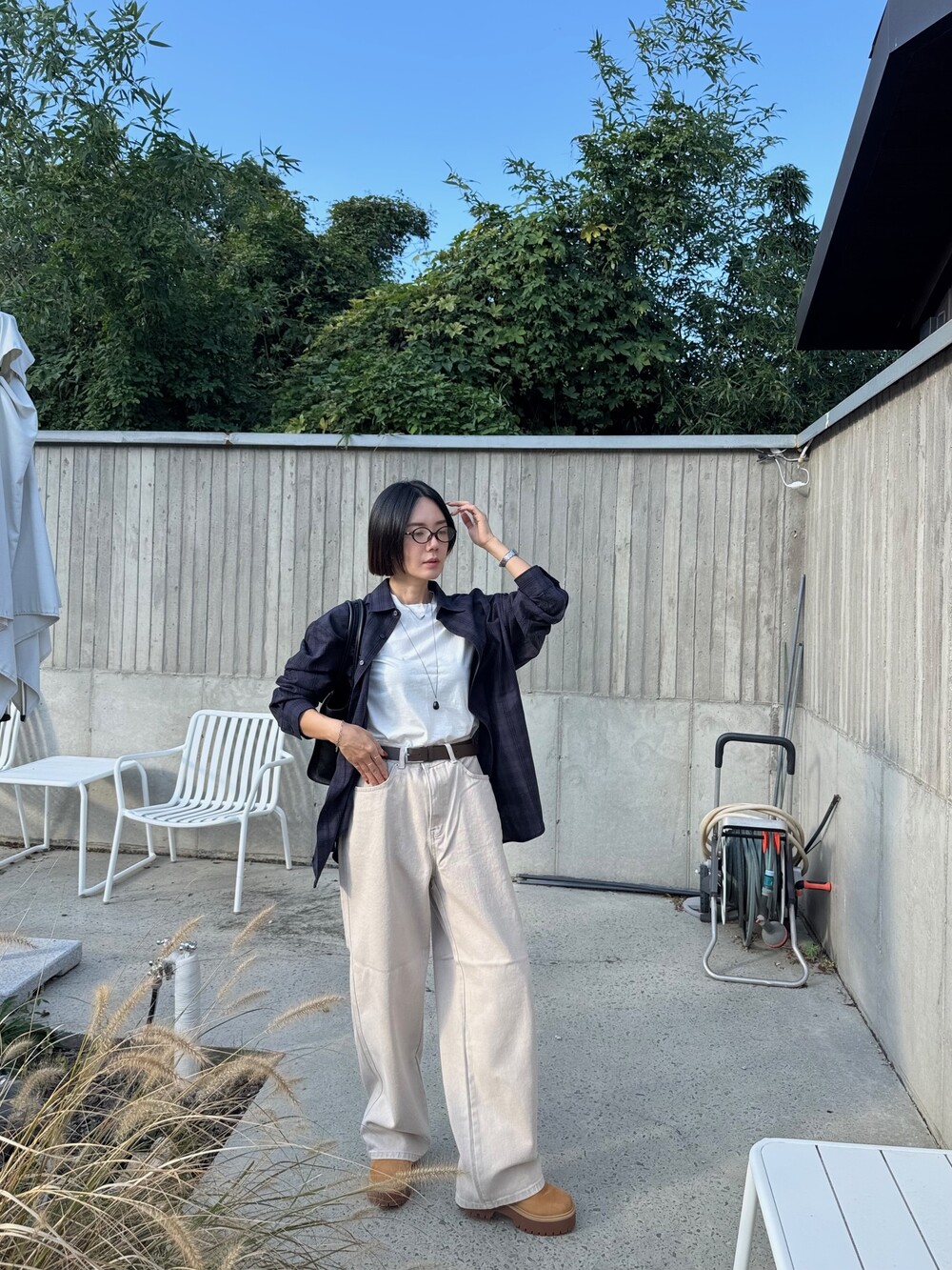 특징: 신축성 O, 비침 X, 안감 X , 두께감 보통, 무게감 보통