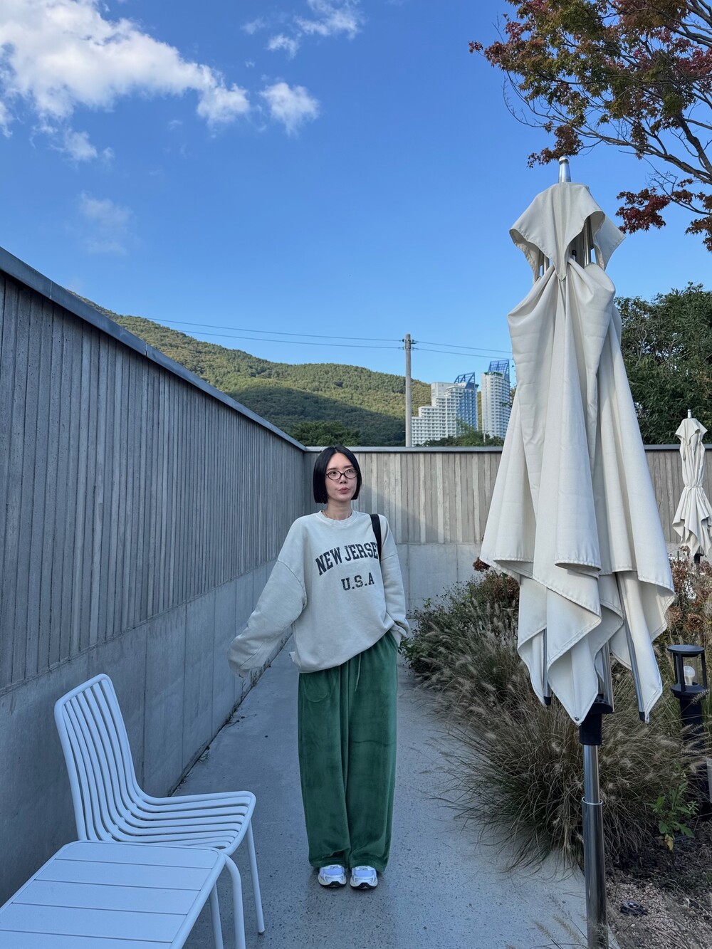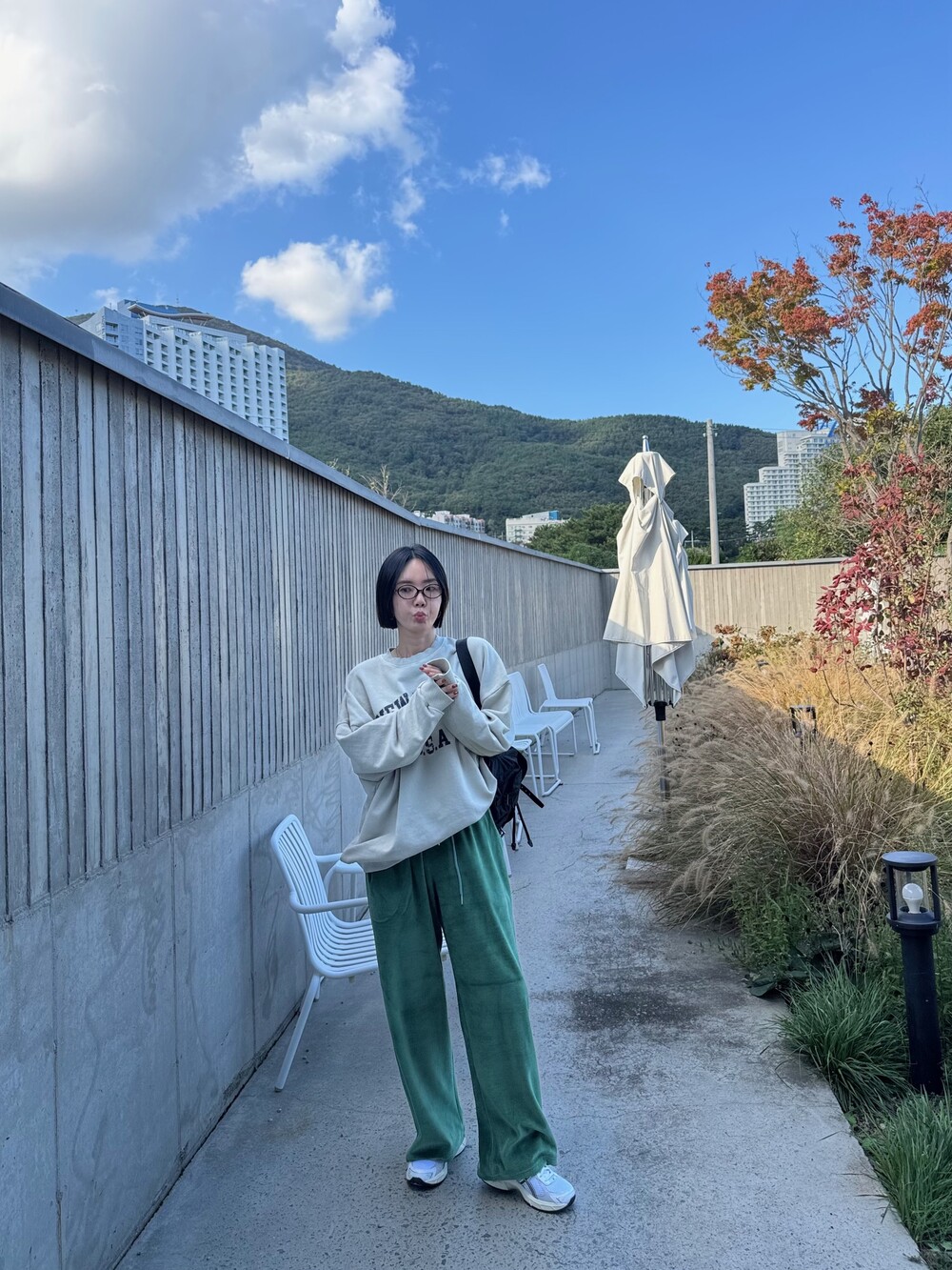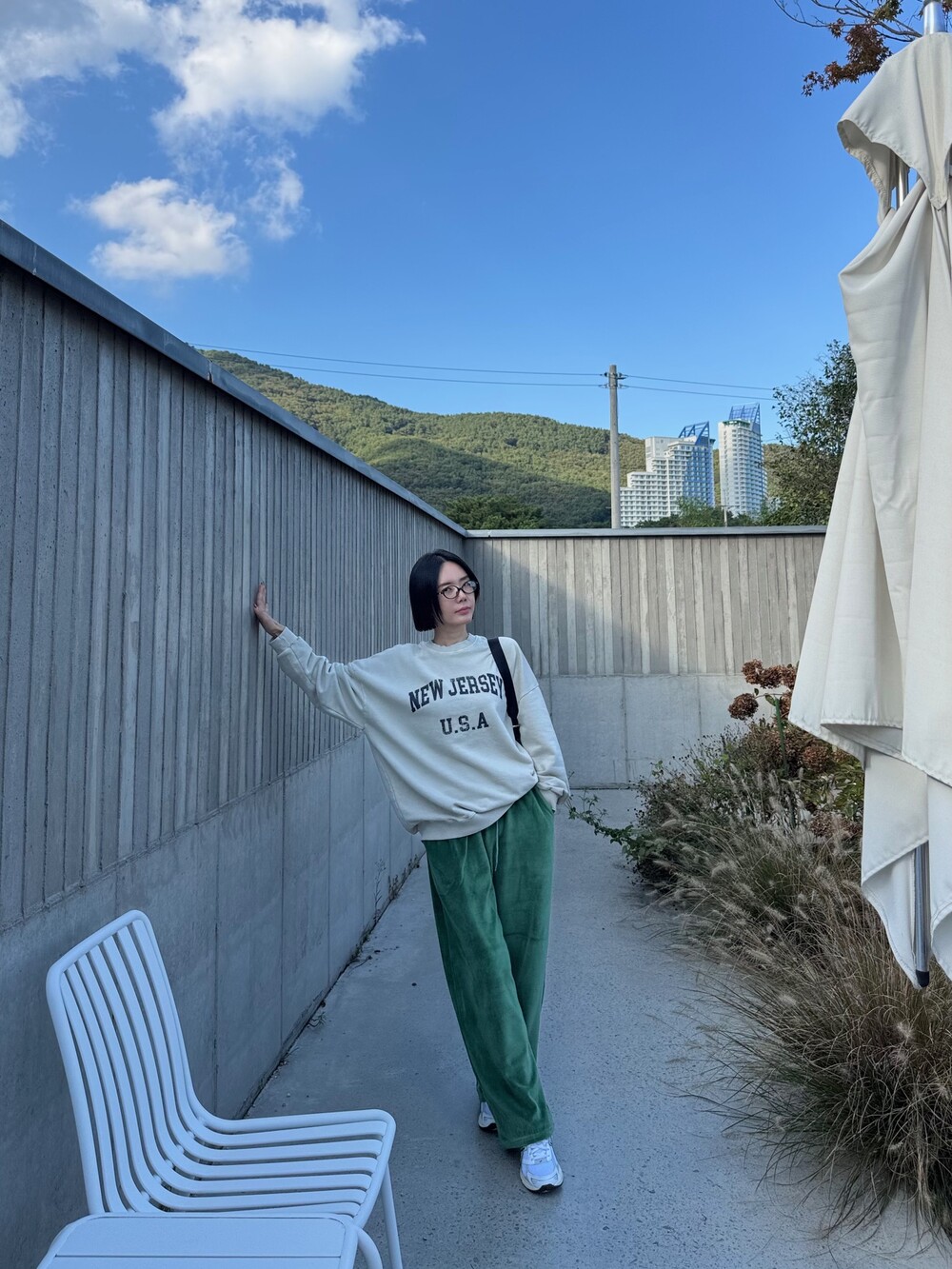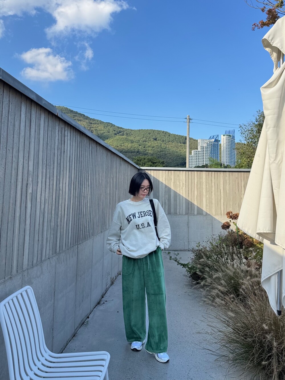 특징: 신축성 O, 비침 X, 안감 X , 두께감 보통, 무게감 보통
