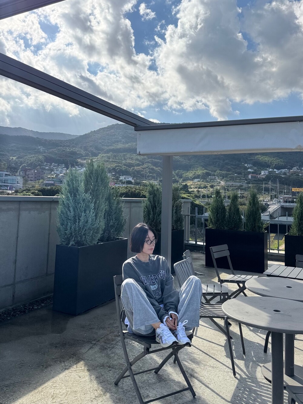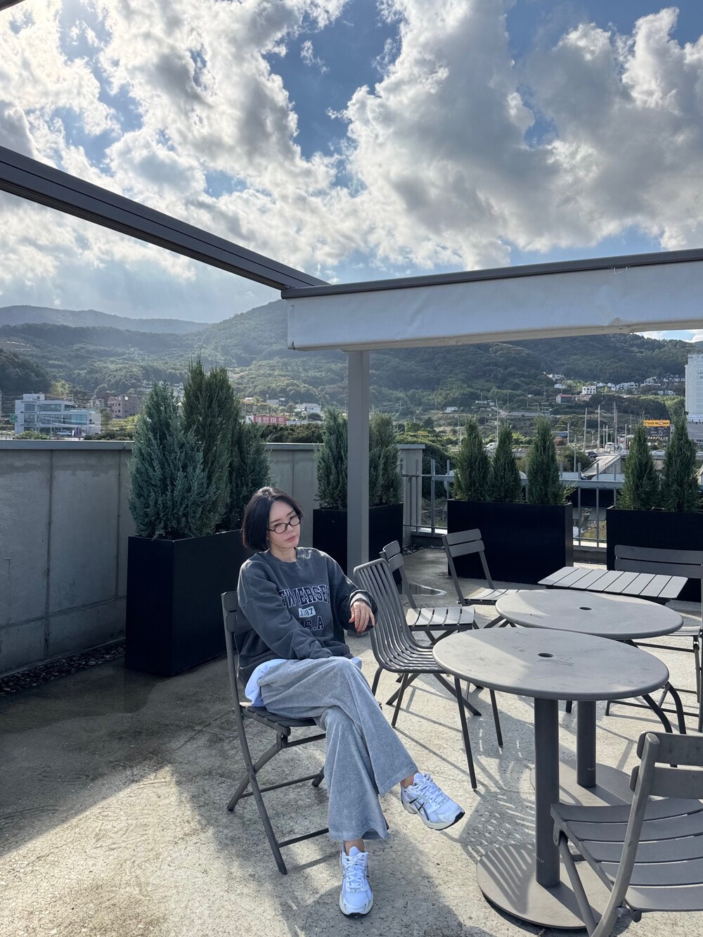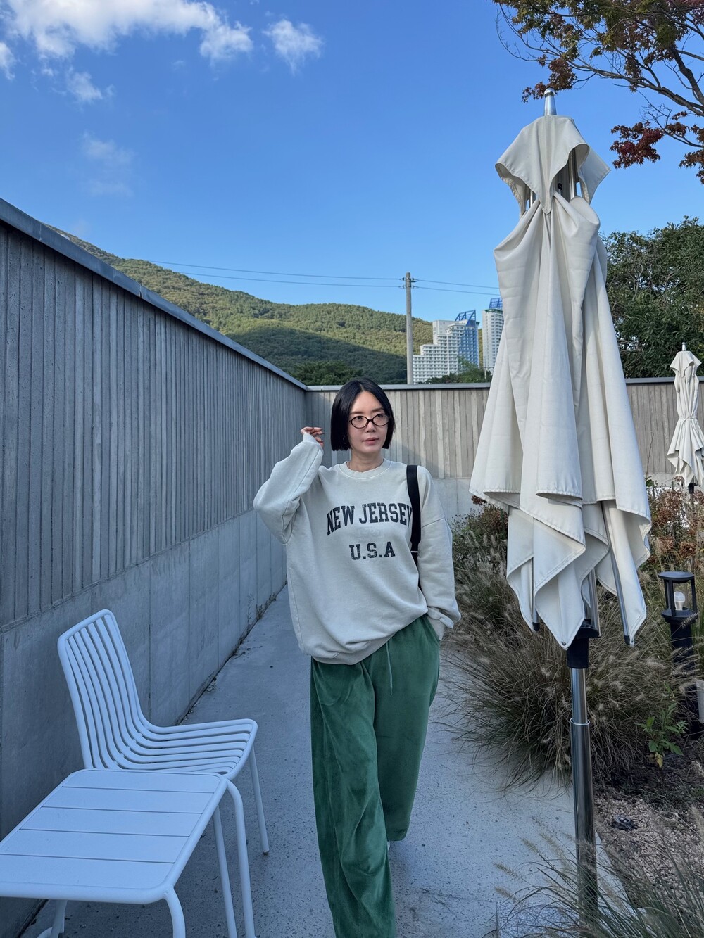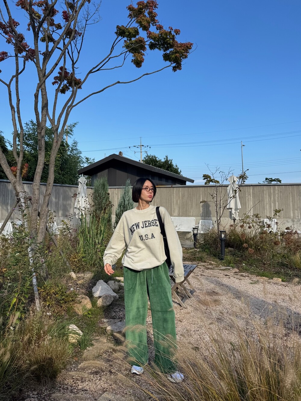 특징: 신축성 O, 비침 X, 안감 X , 두께감 보통, 무게감 보통