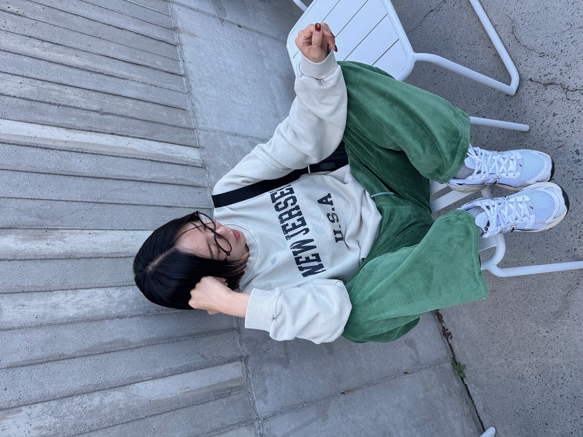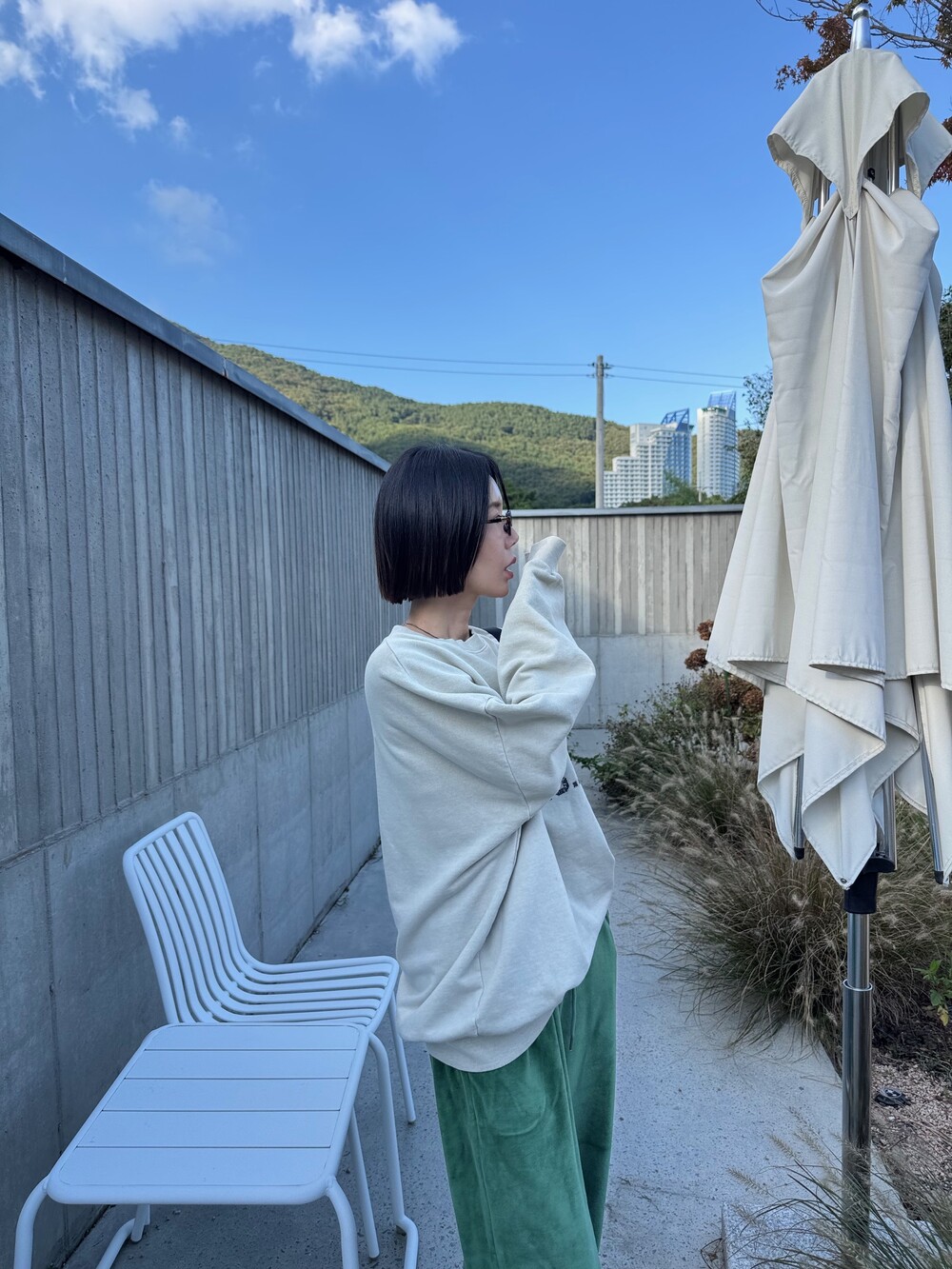 3단쭈리 소재의 피그먼트 오버핏 맨투맨이예요