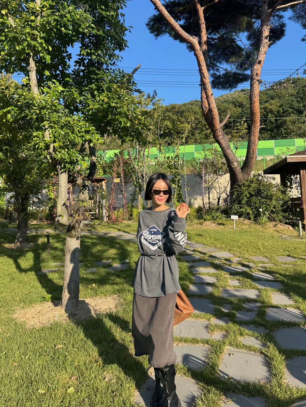 특징: 신축성 O, 비침 X, 안감 X , 두께감 보통, 무게감 보통