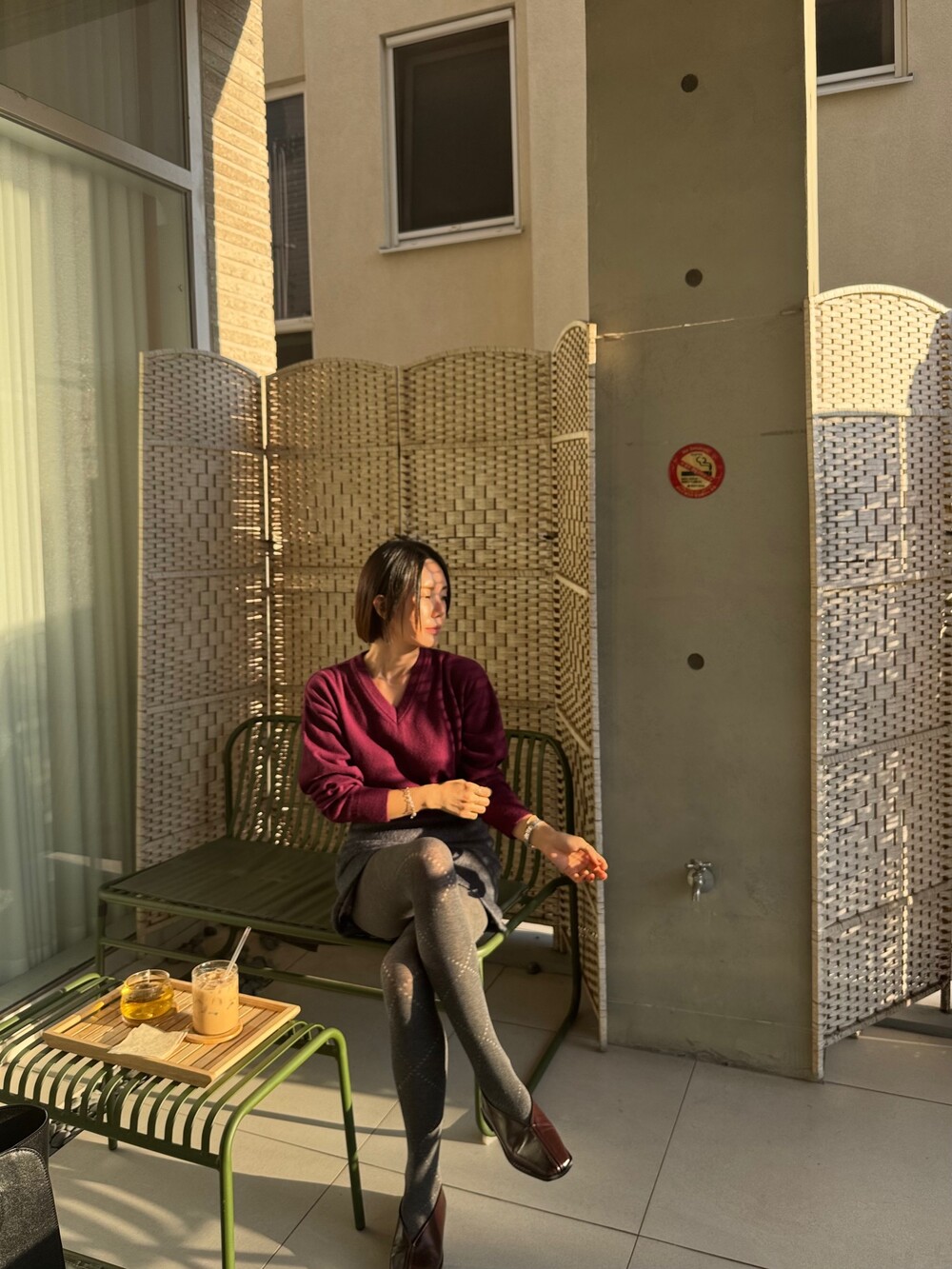 특징: 신축성 O, 비침 X, 안감 X , 두께감 보통, 무게감 보통