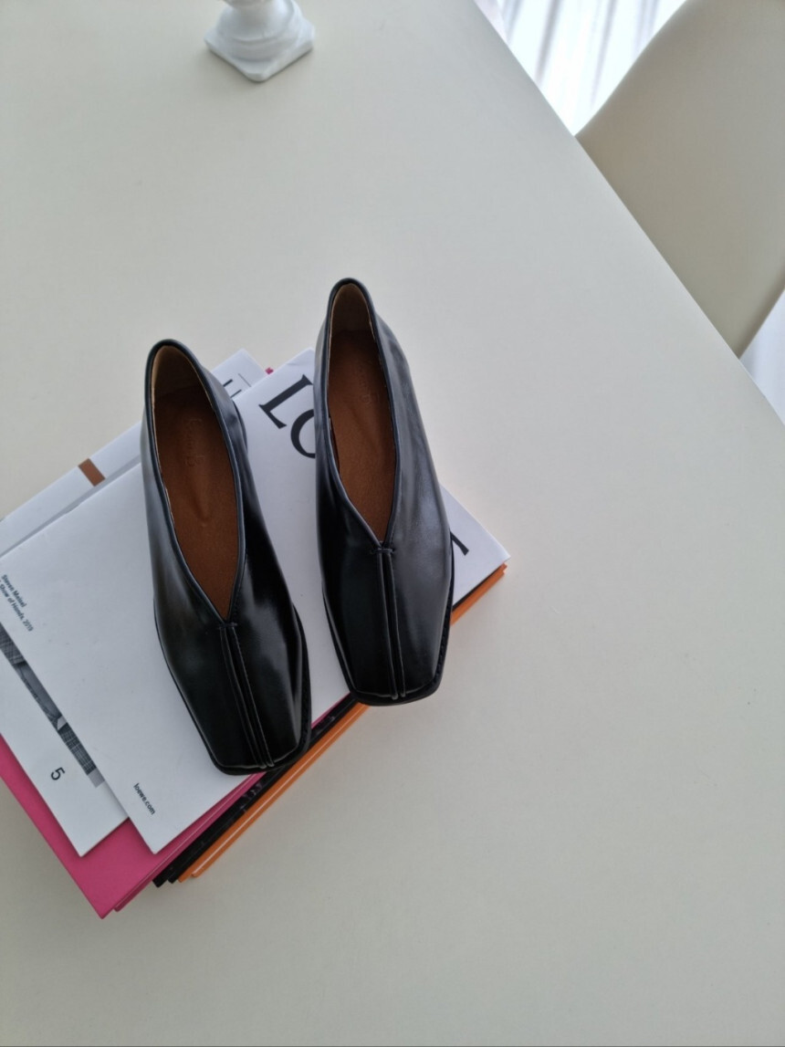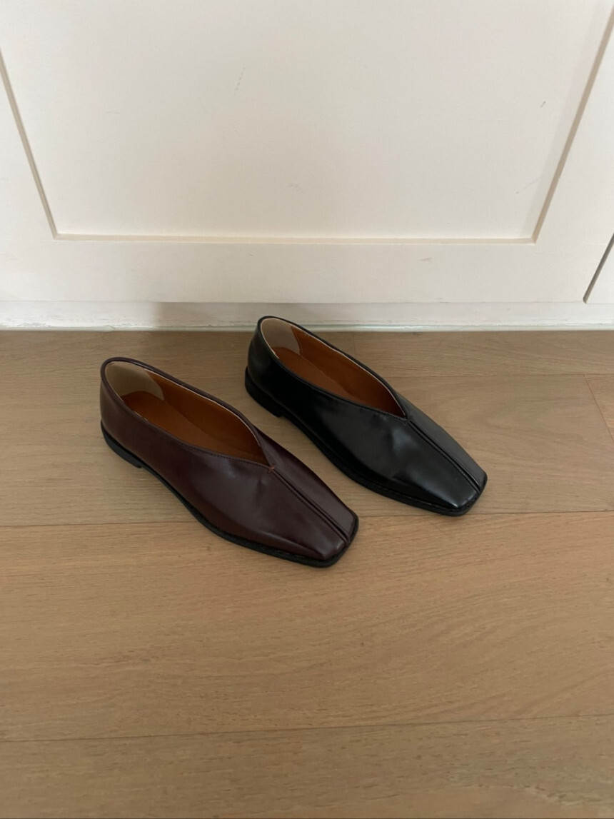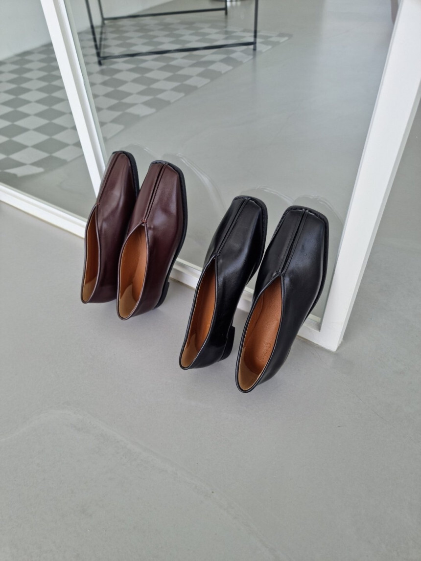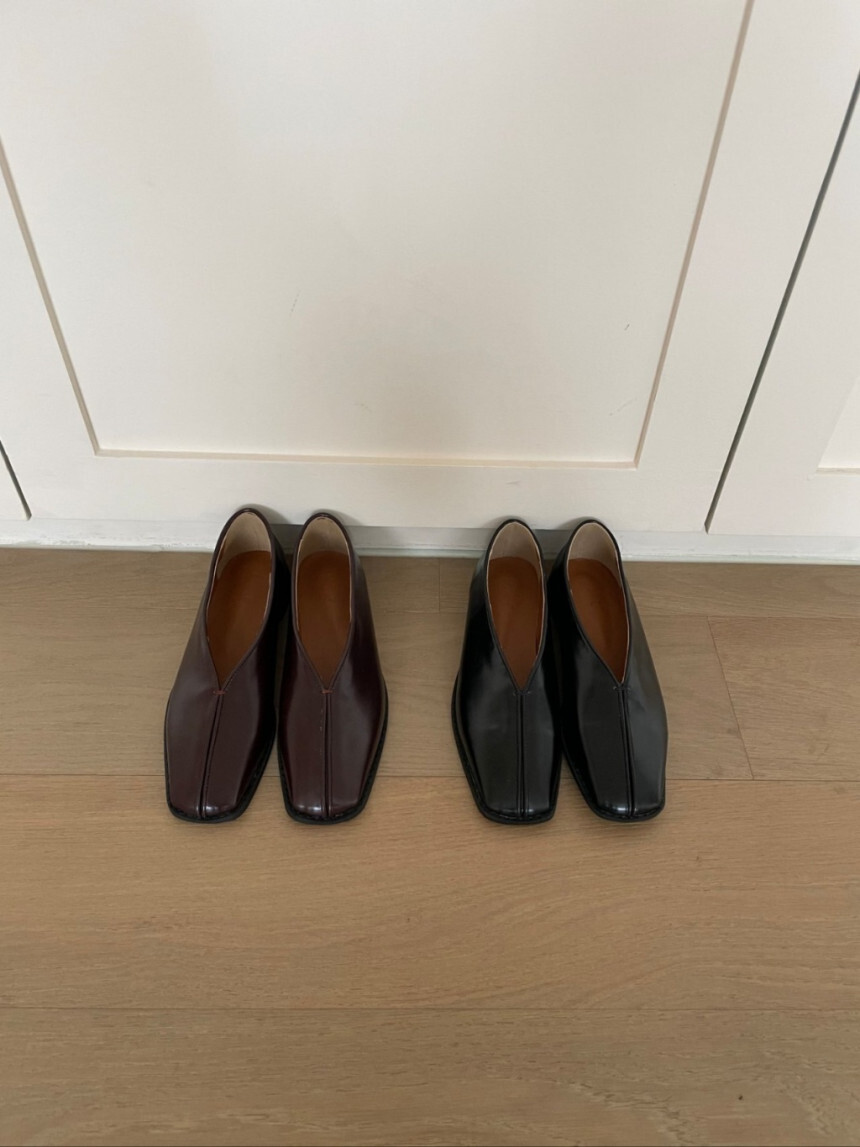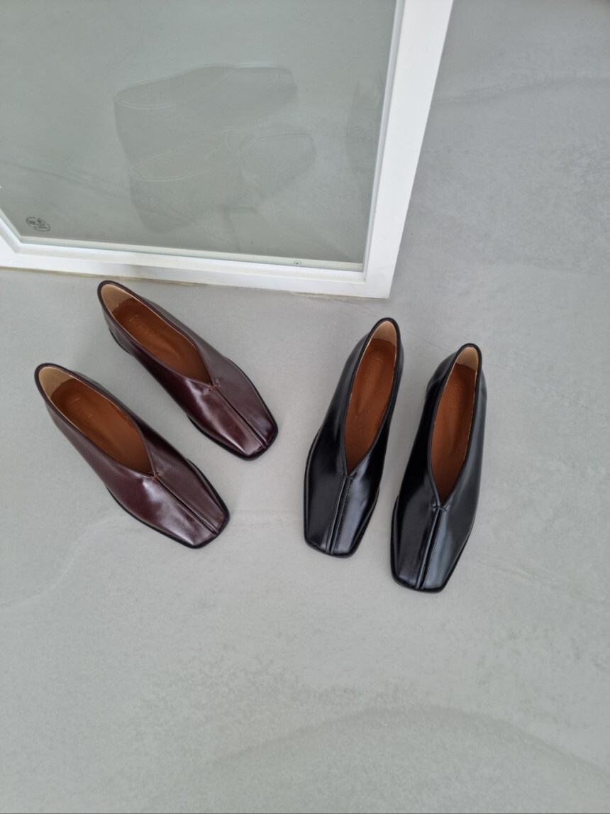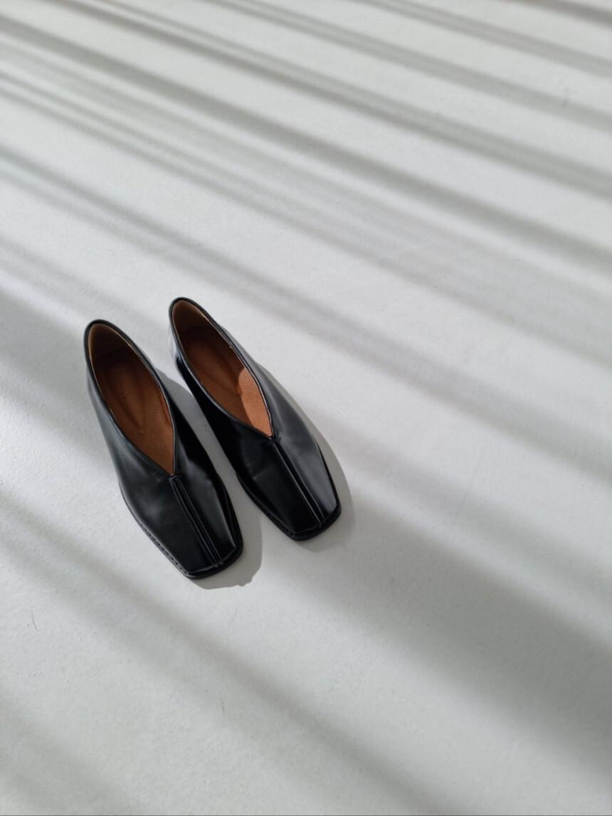 스퀘어 사각 절개라인 플랫 슈즈 2col