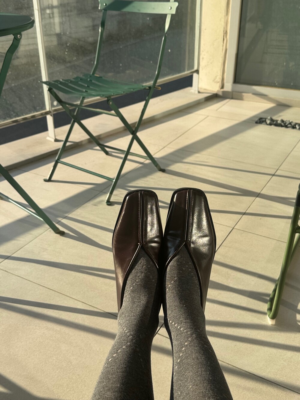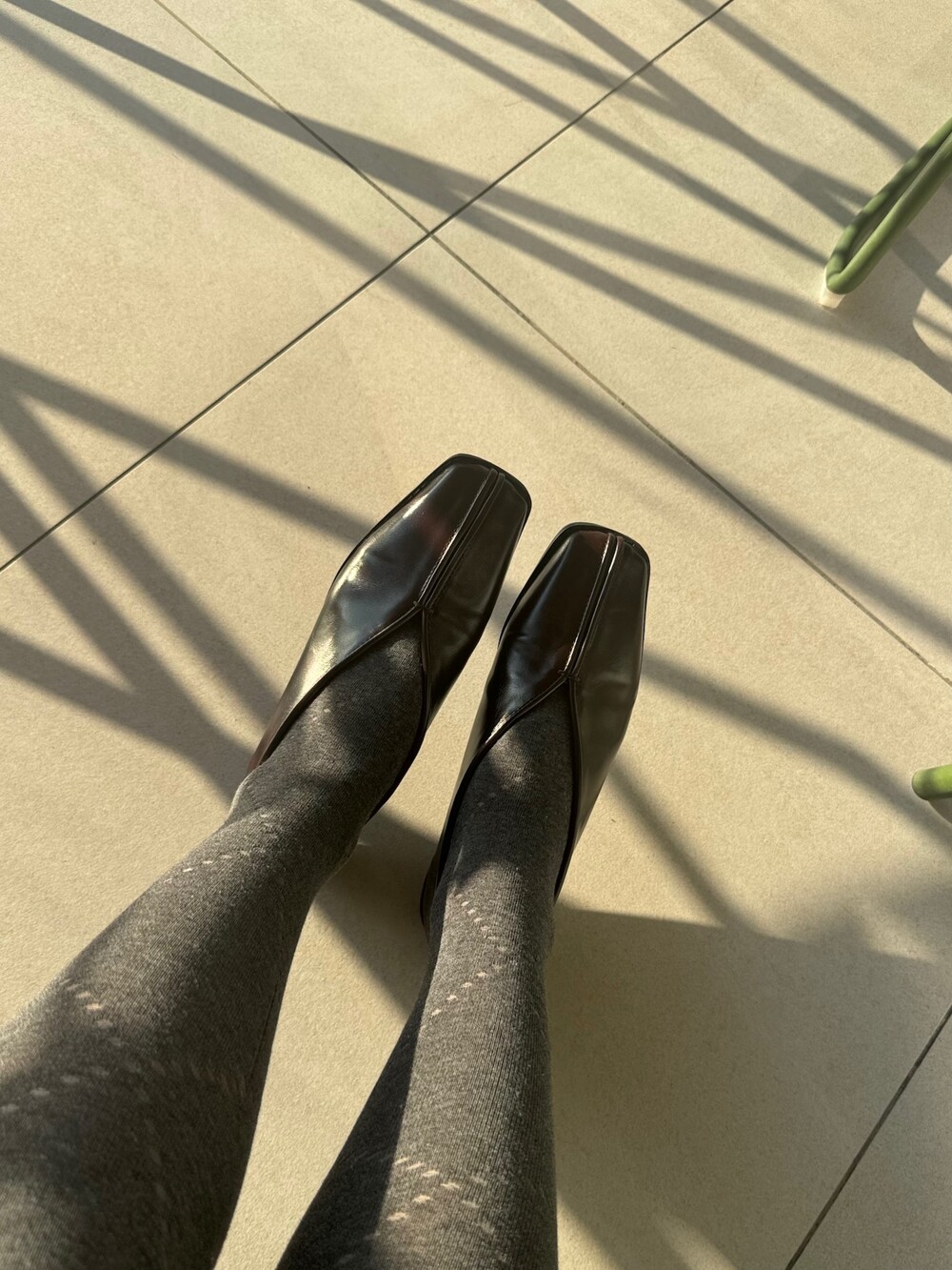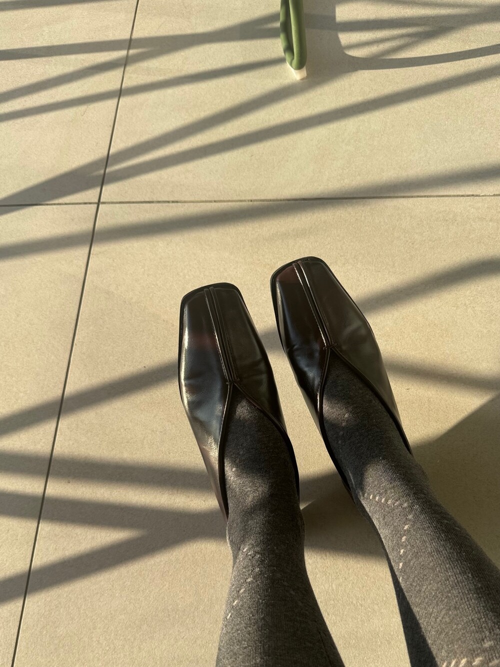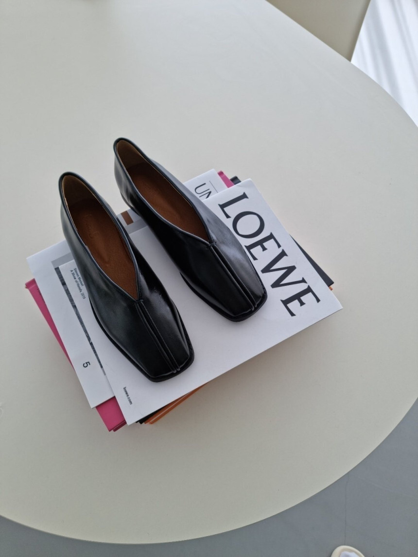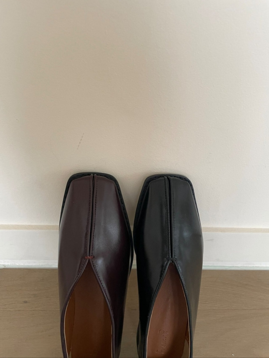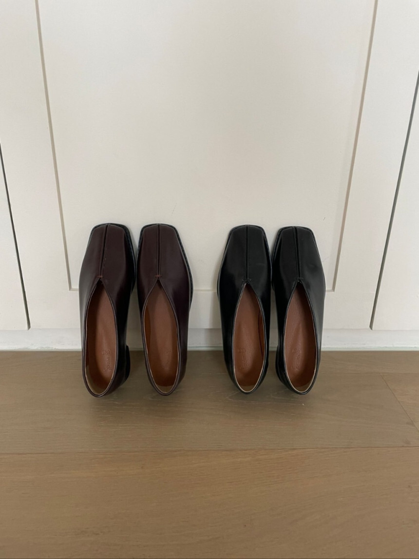 스퀘어 사각 절개라인 플랫 슈즈 2col