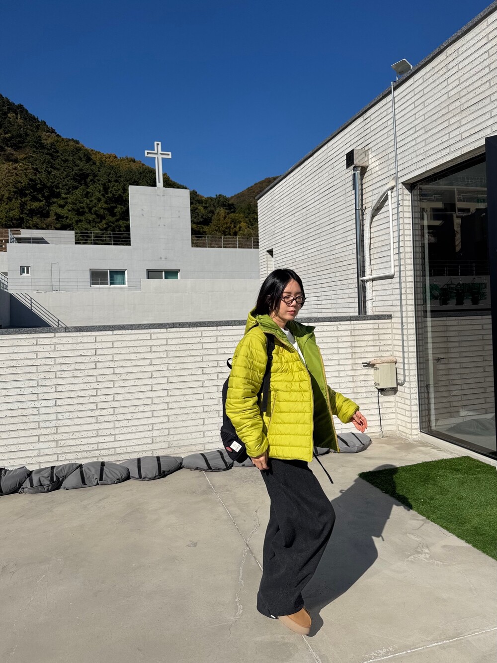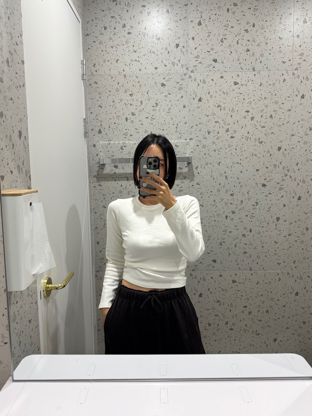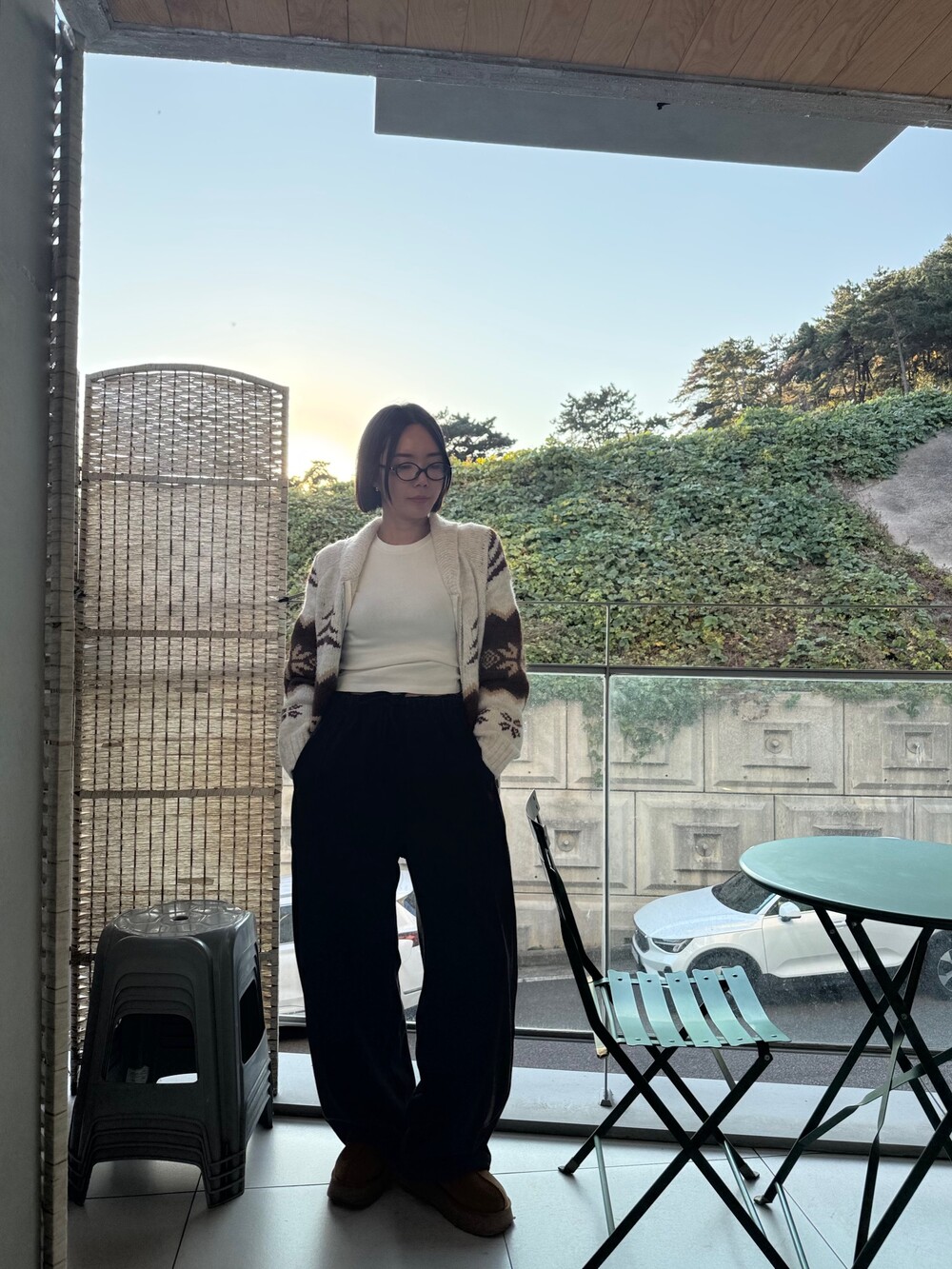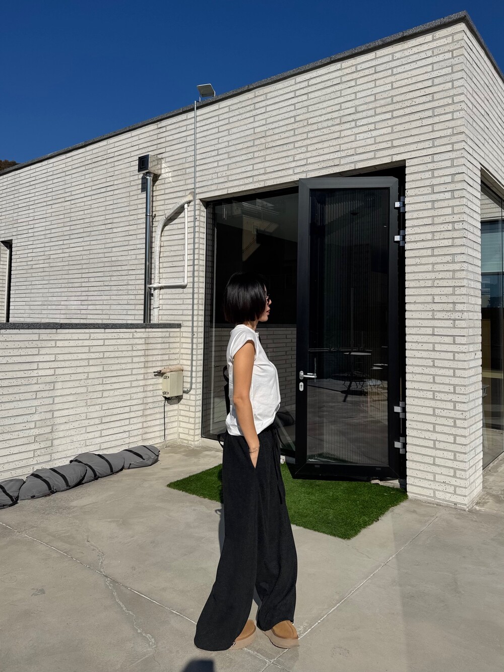 특징: 신축성 O, 비침 X, 안감 X , 두께감 보통, 무게감 보통