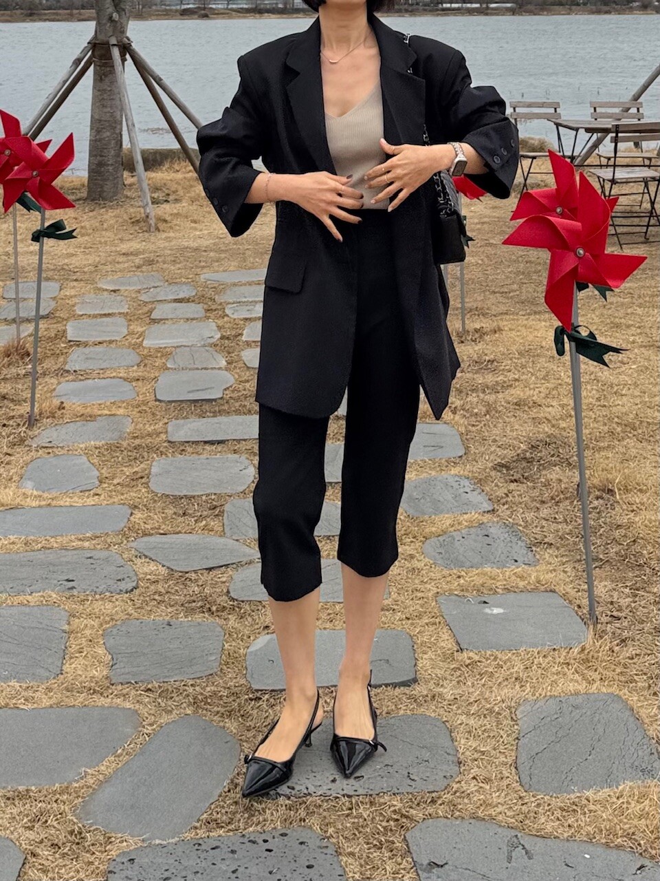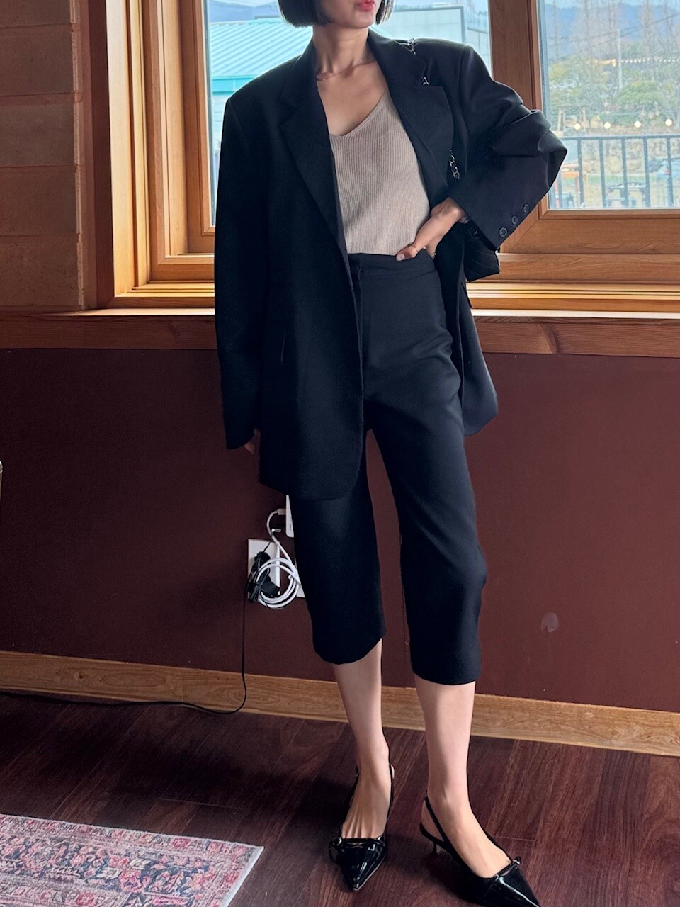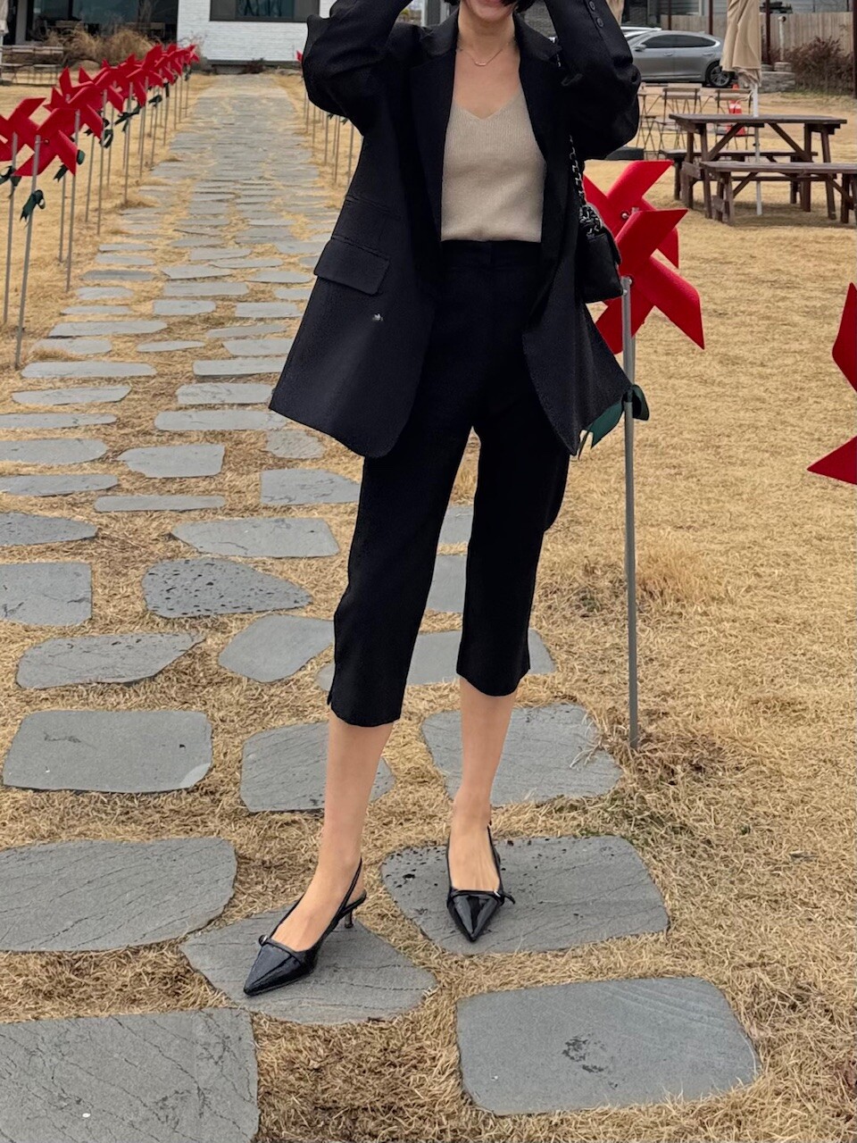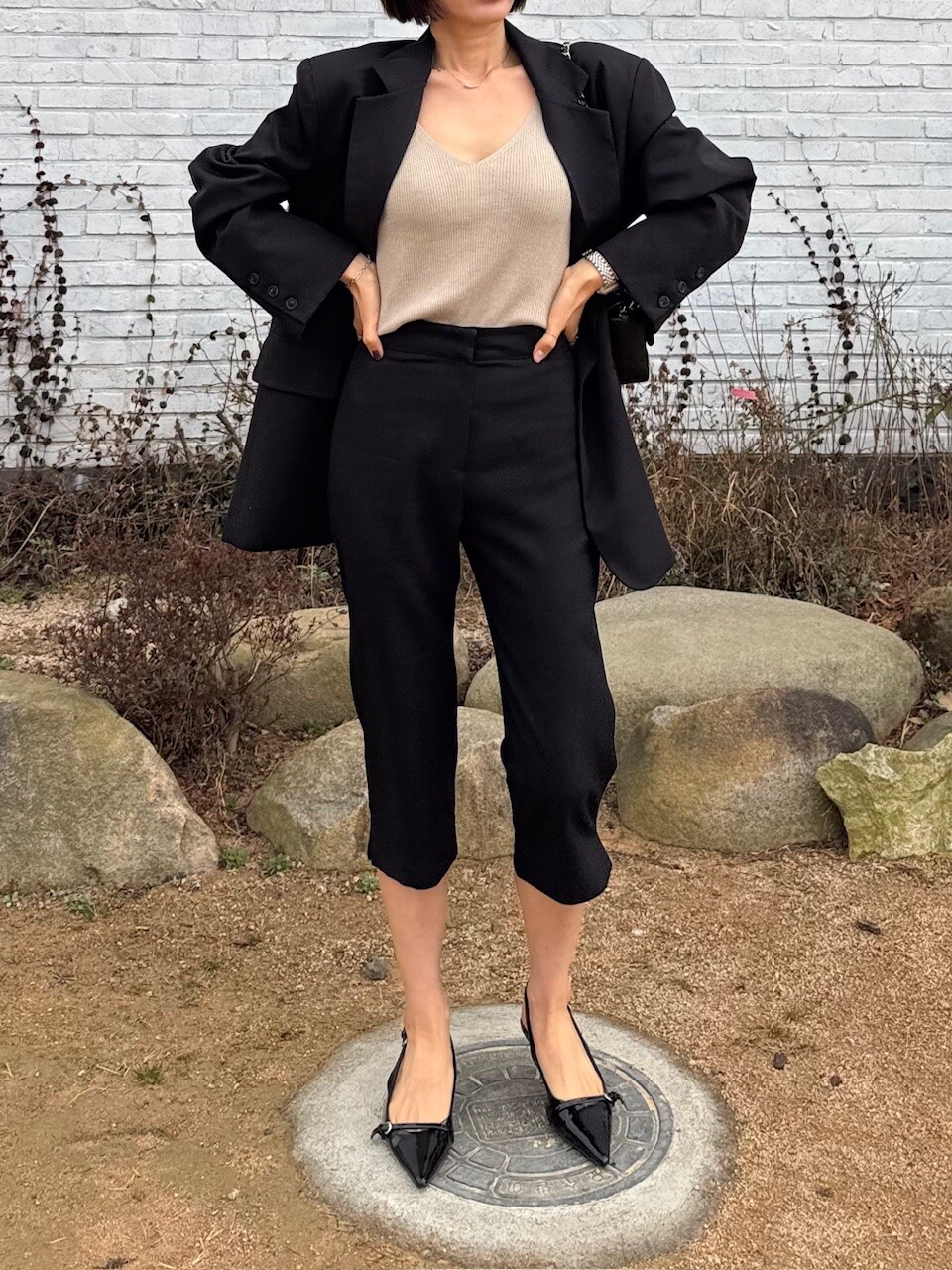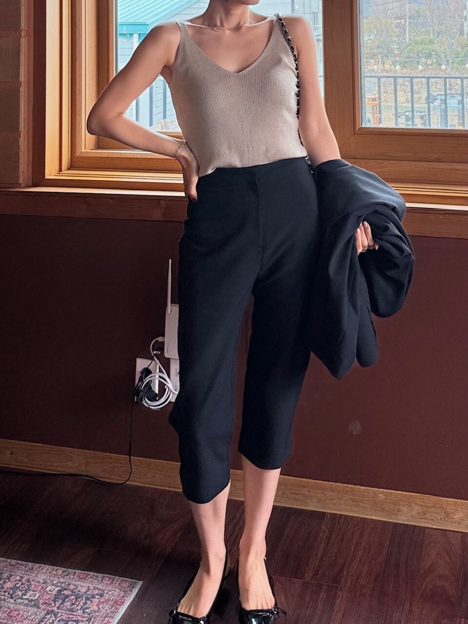 슬랙스 느낌의 5부 카프리 팬츠예요