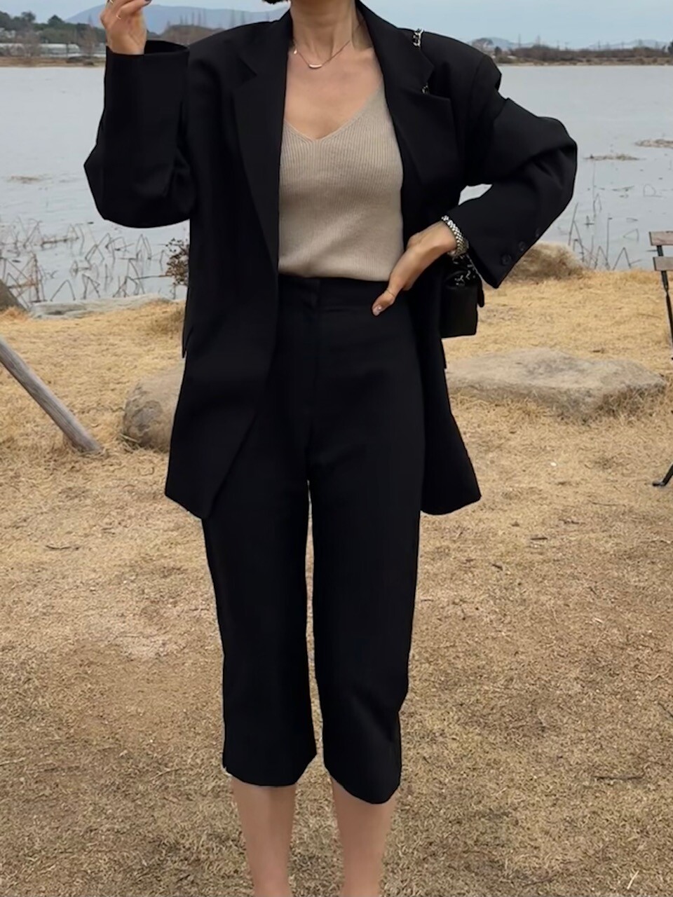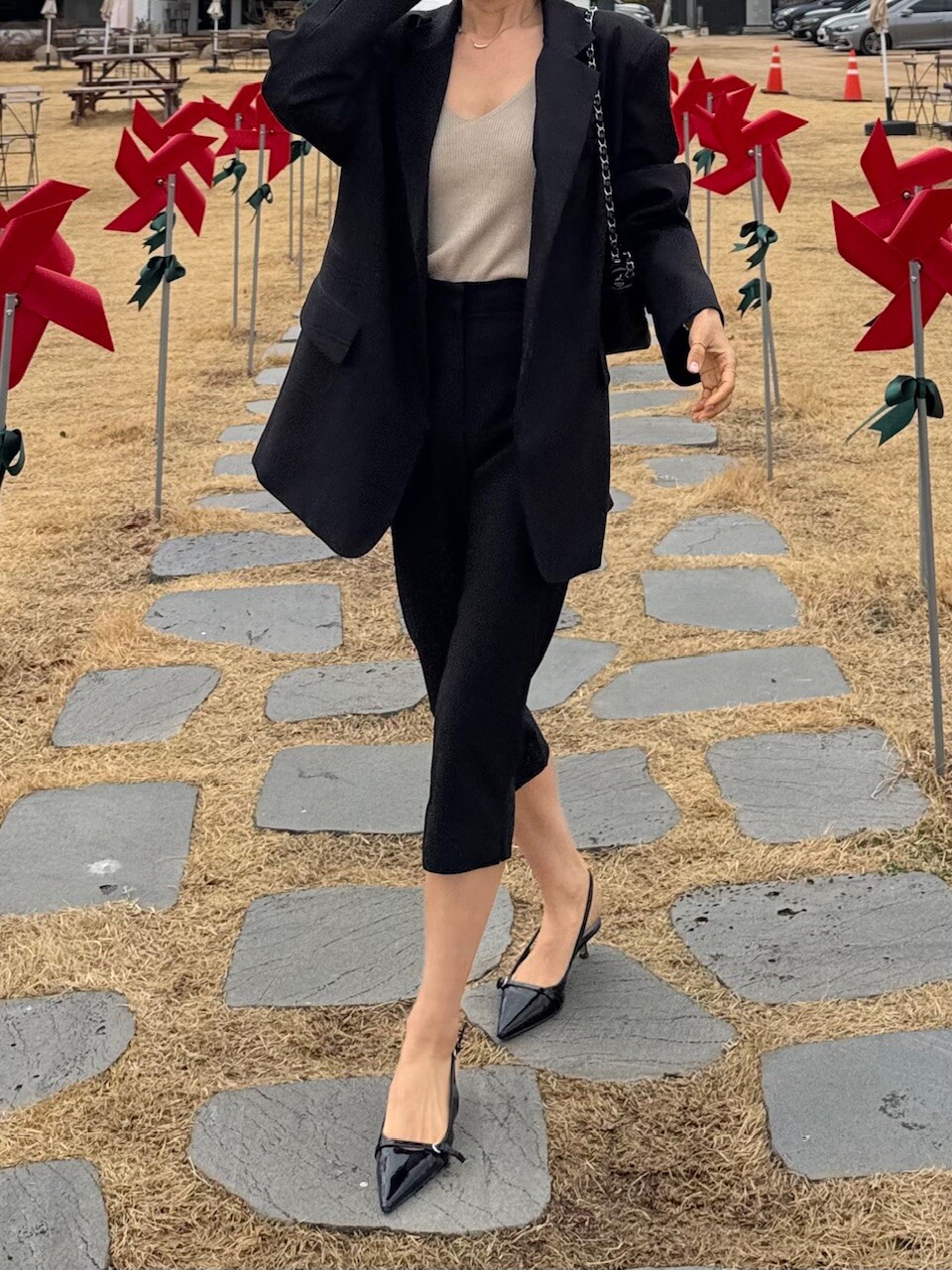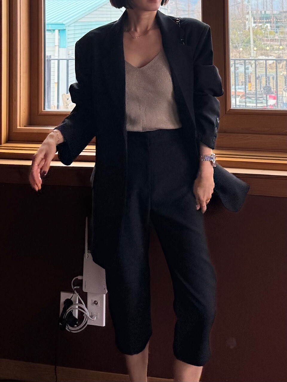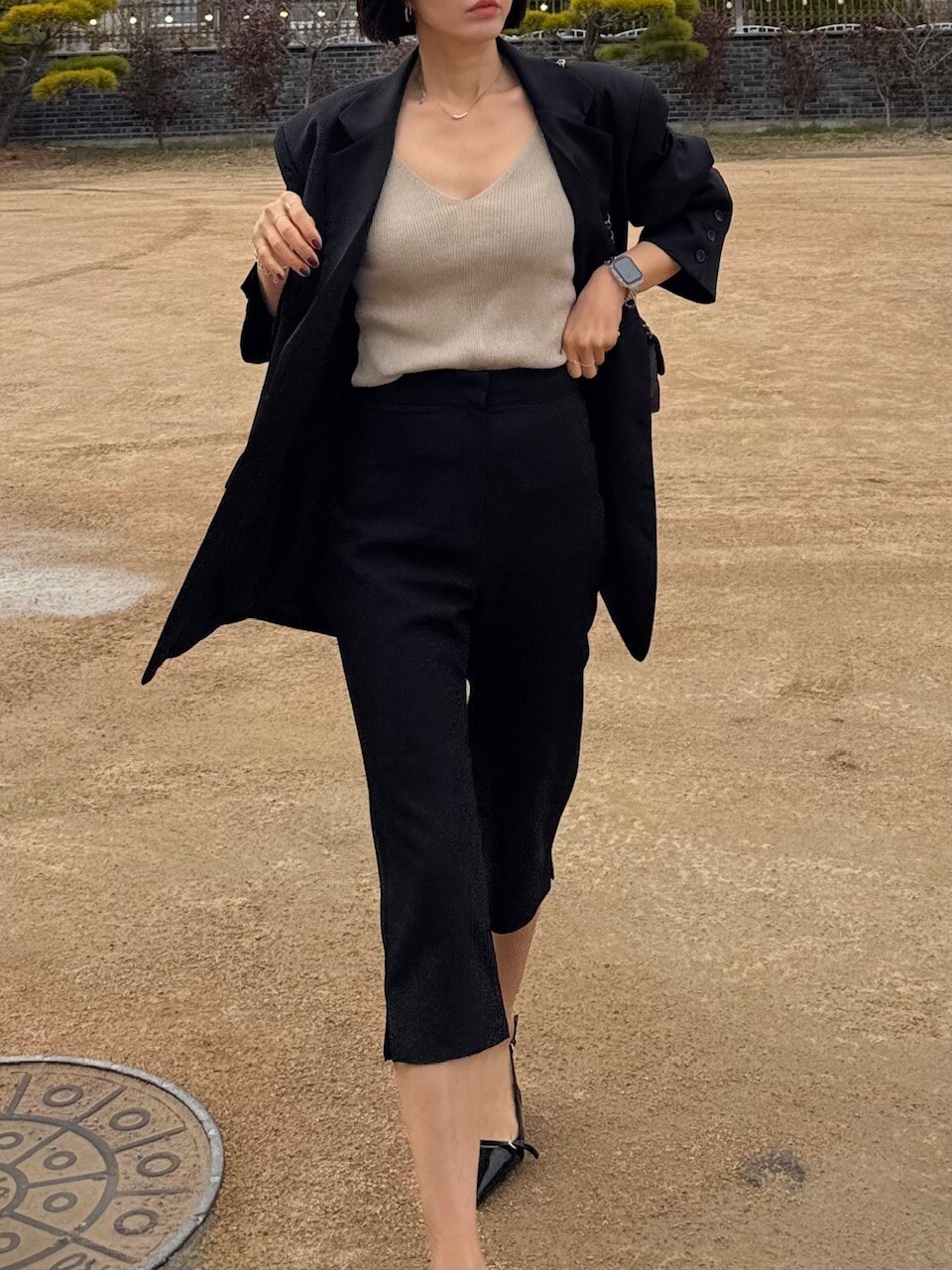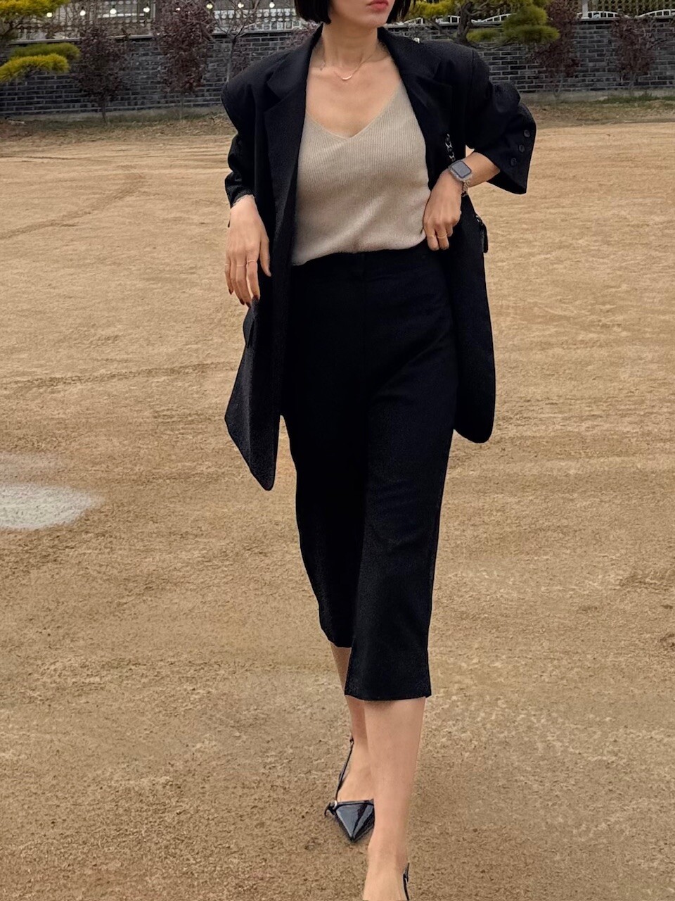 슬랙스 느낌의 5부 카프리 팬츠예요
