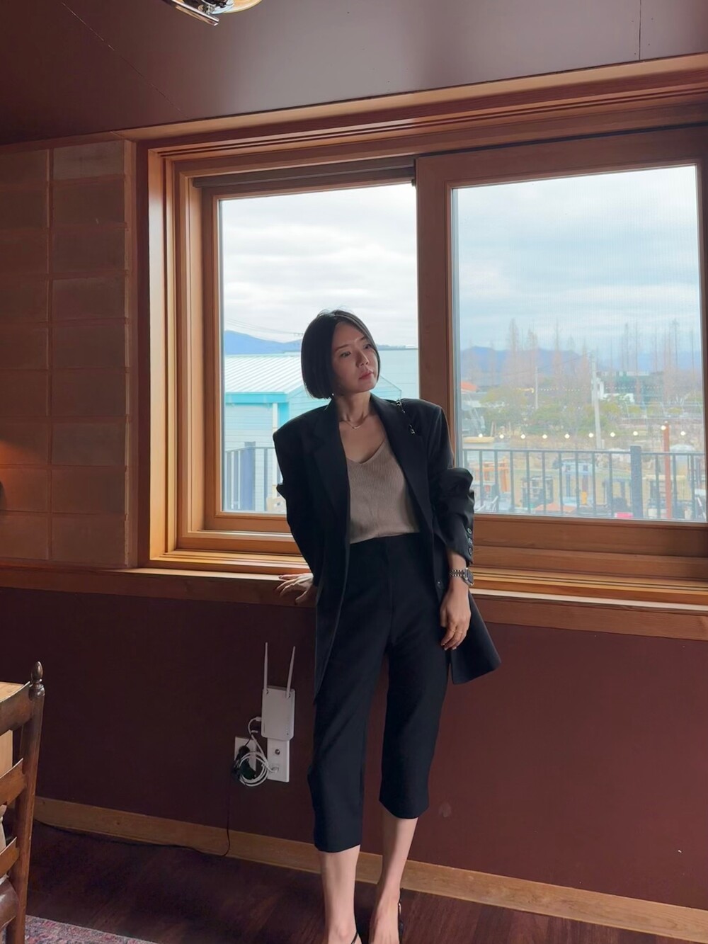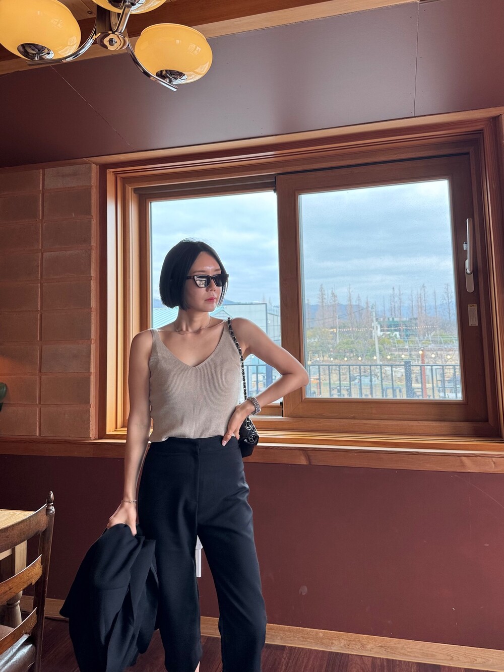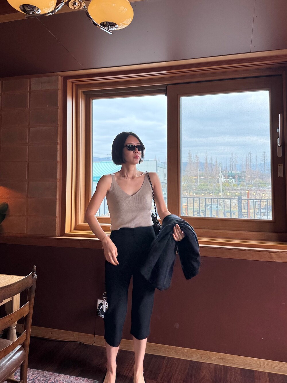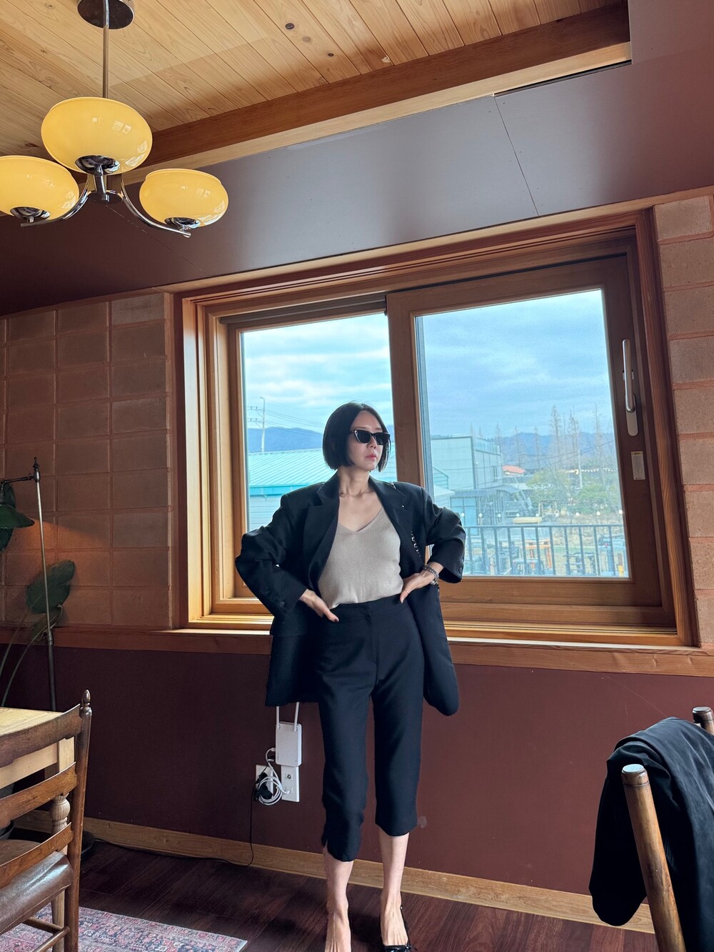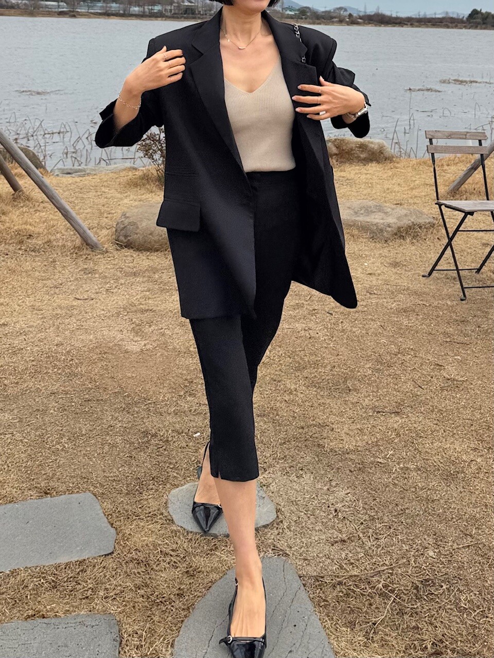 슬랙스 느낌의 5부 카프리 팬츠예요