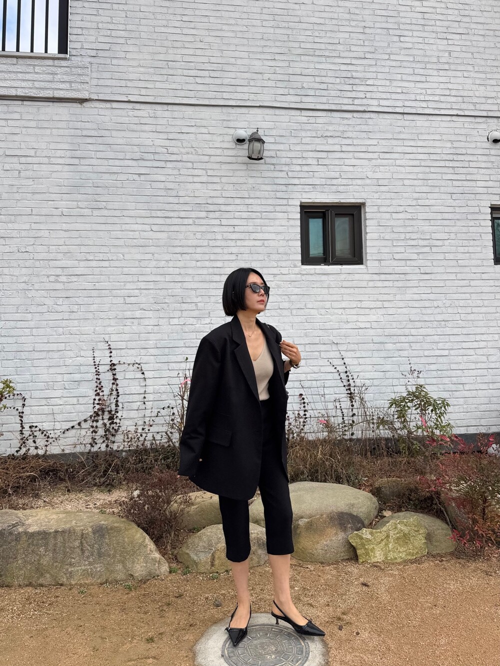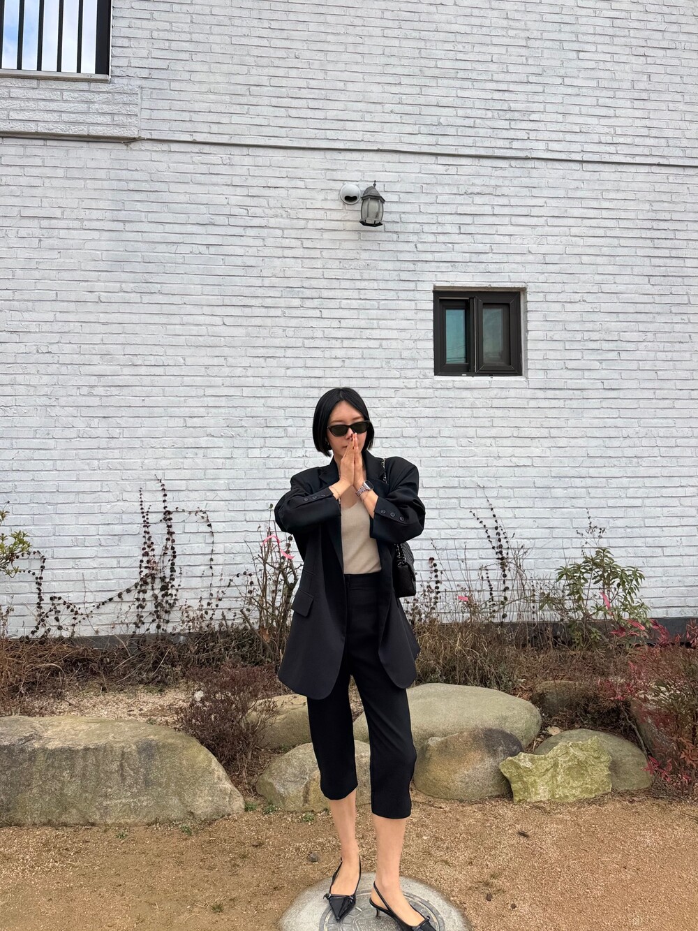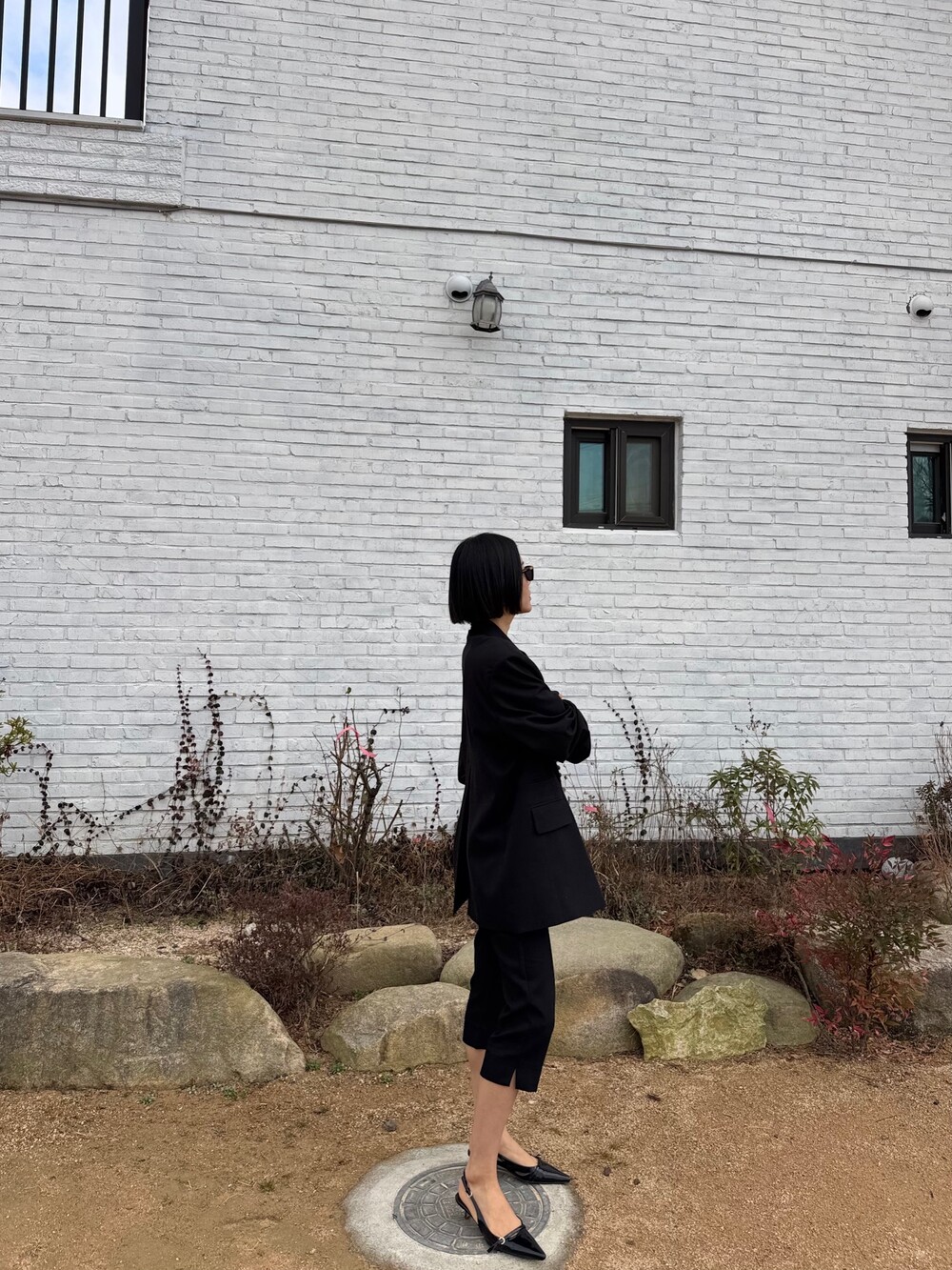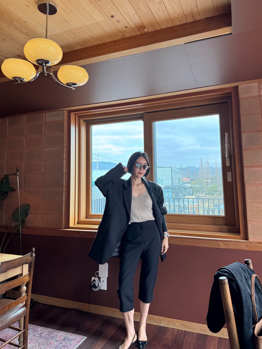 특징: 신축성 O, 비침 X, 안감 X , 두께감 보통, 무게감 보통