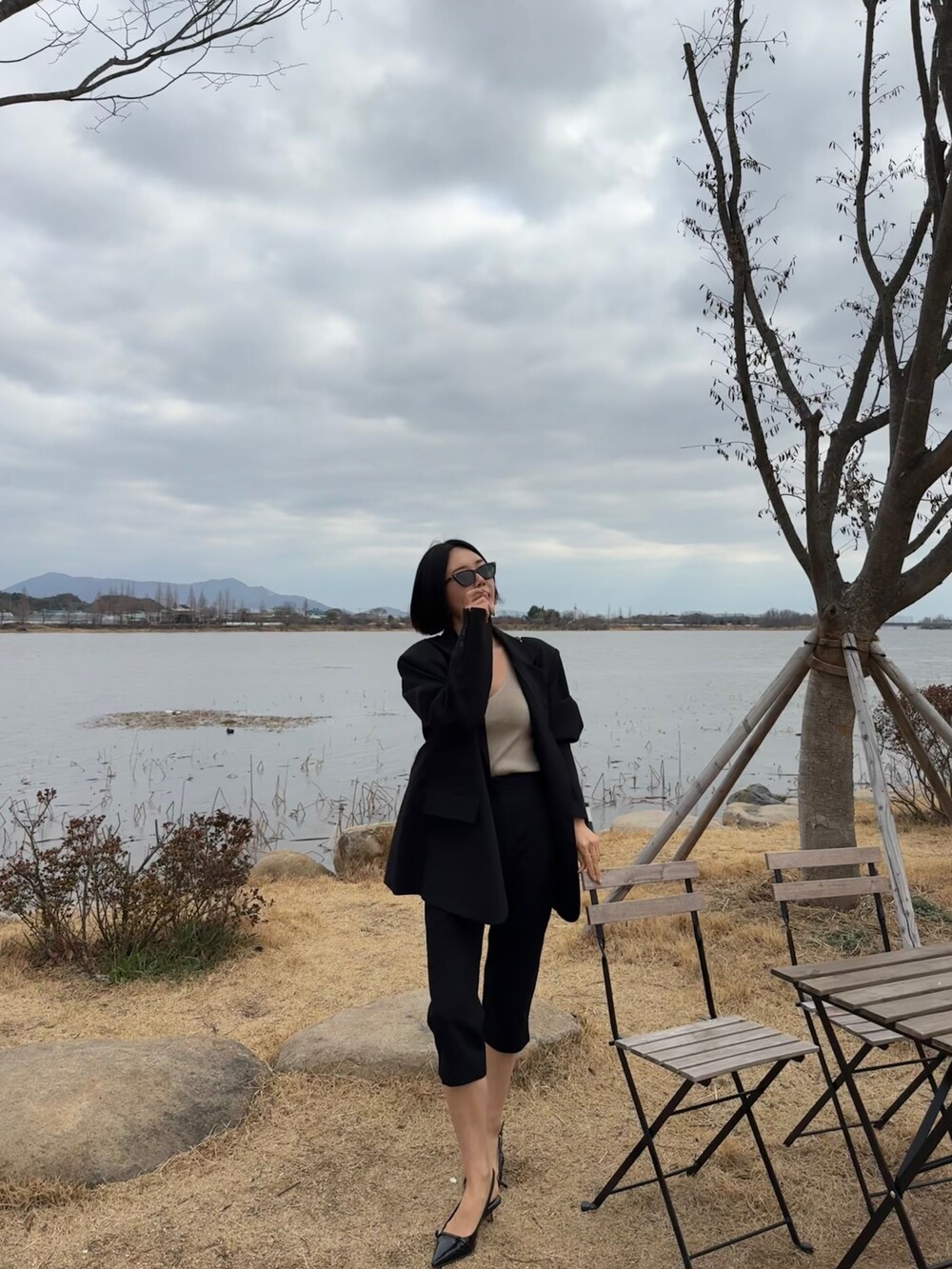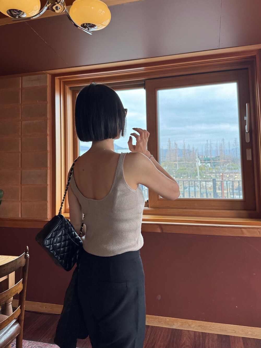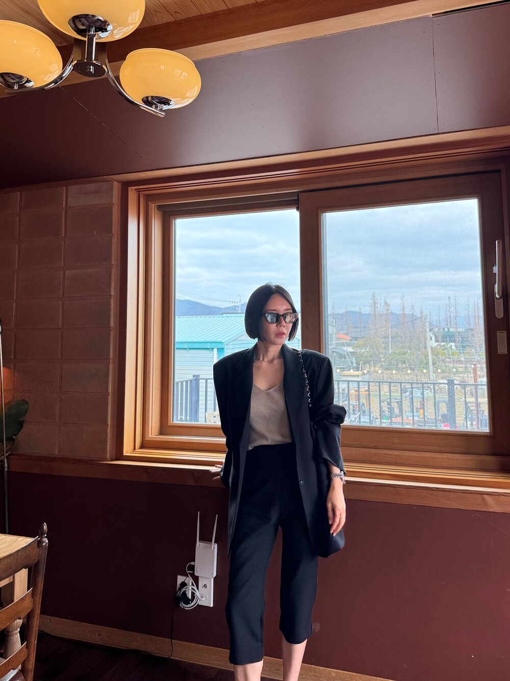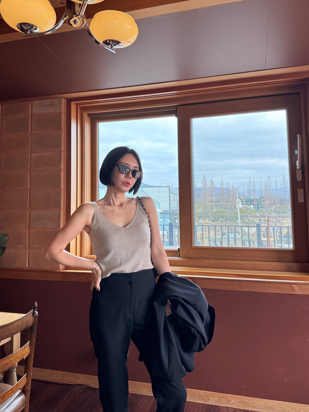특징: 신축성 O, 비침 X, 안감 X , 두께감 보통, 무게감 보통