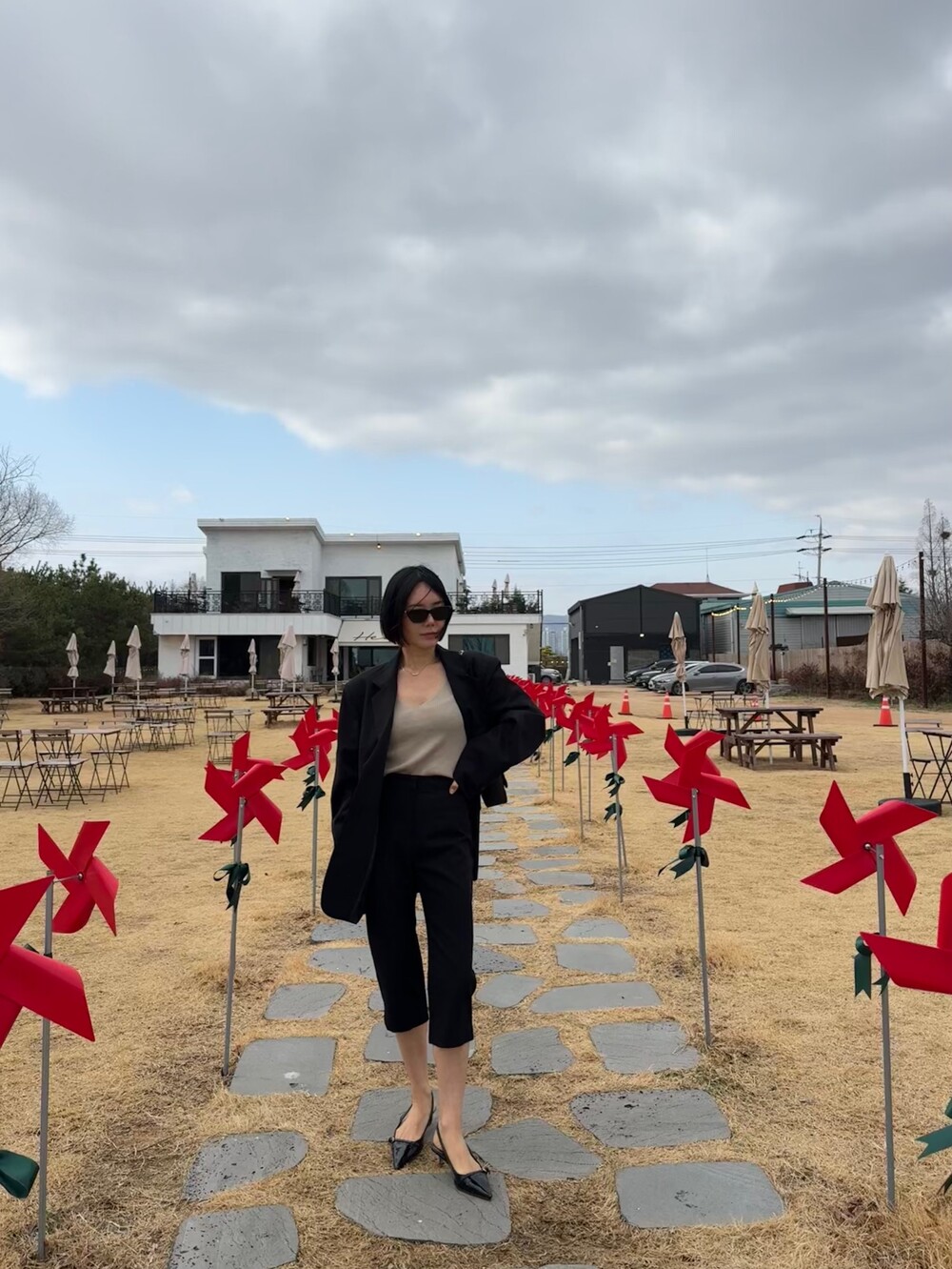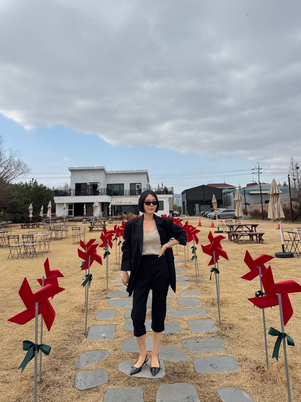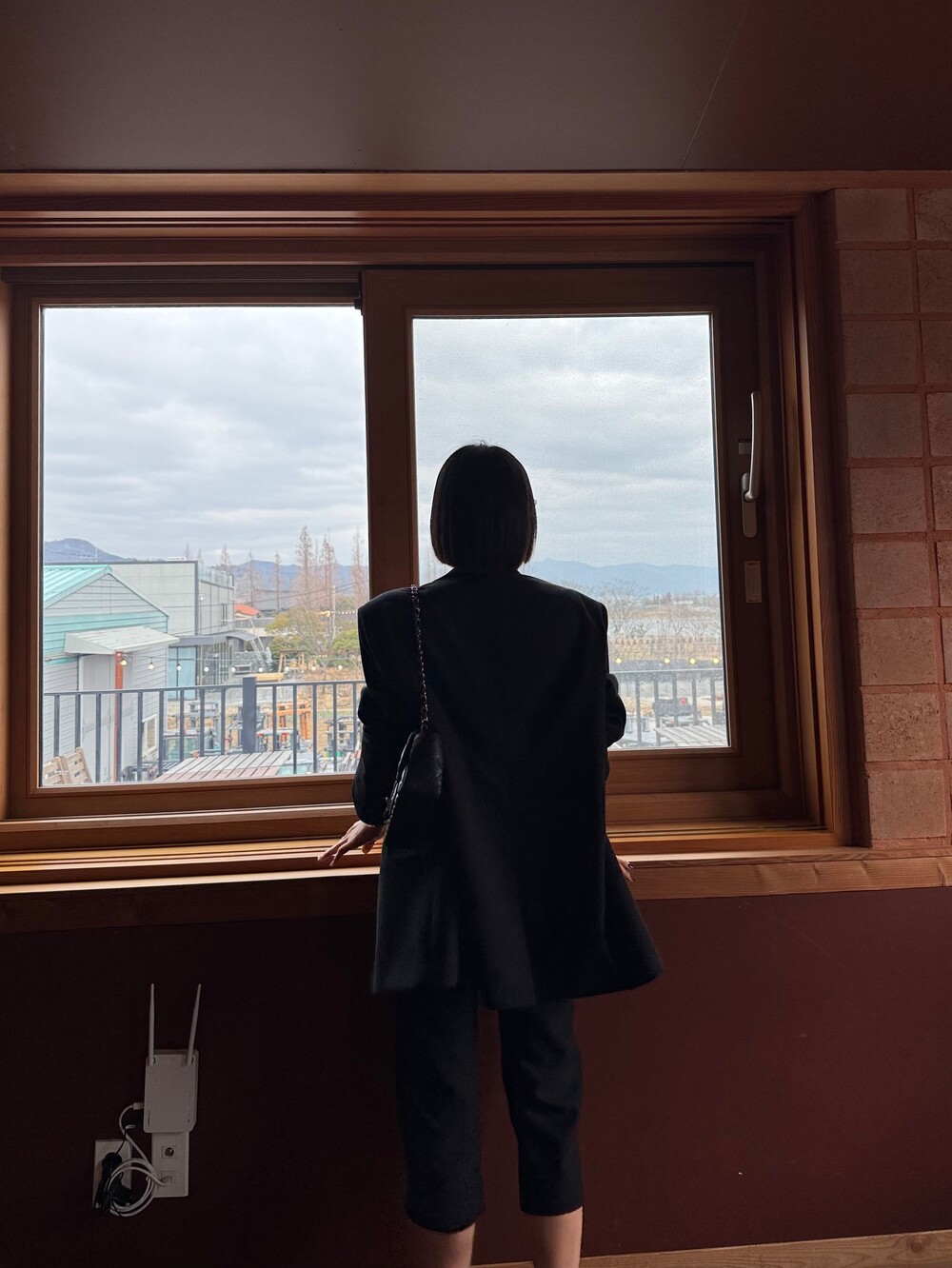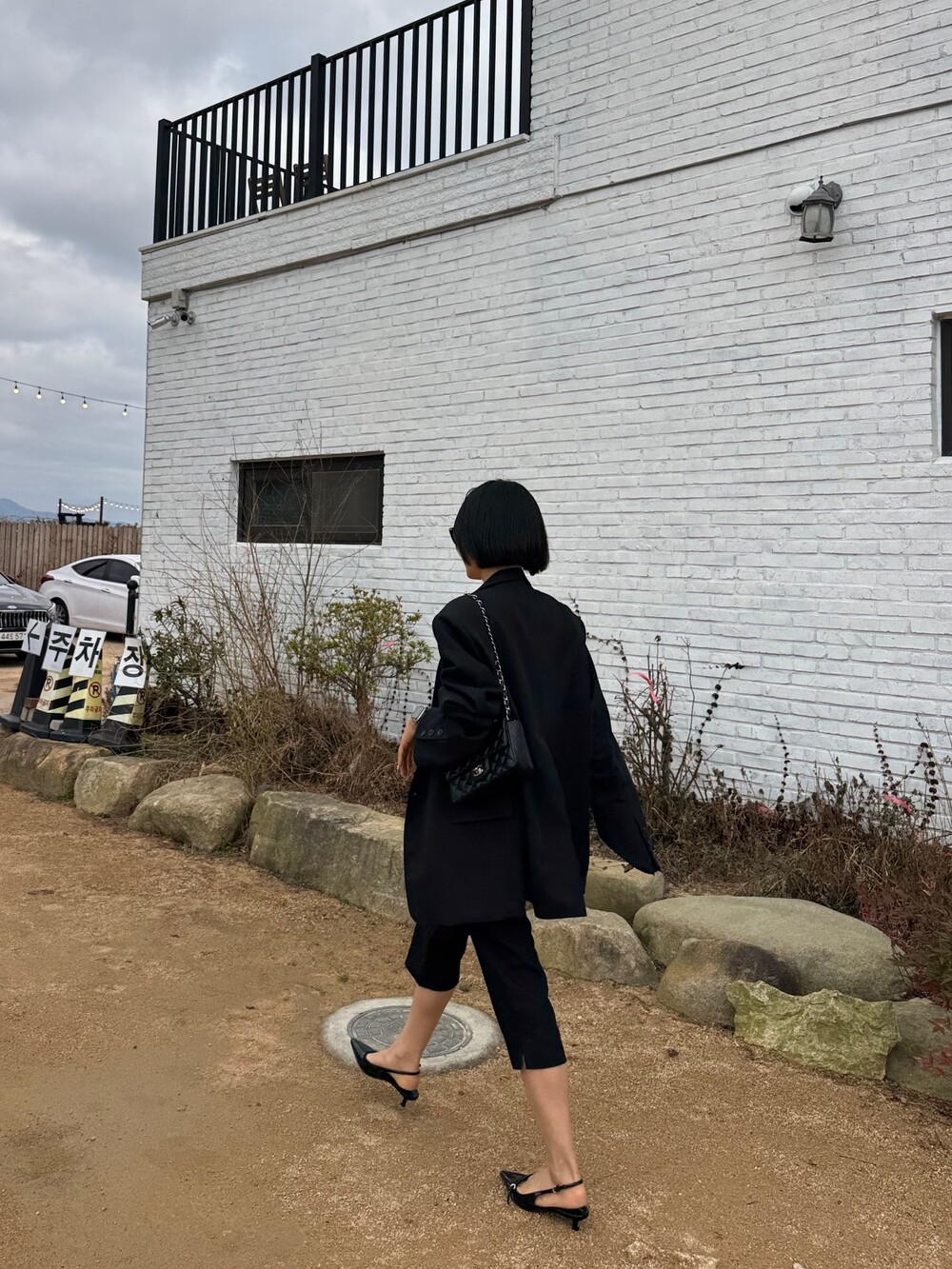 특징: 신축성 O, 비침 X, 안감 X , 두께감 보통, 무게감 보통