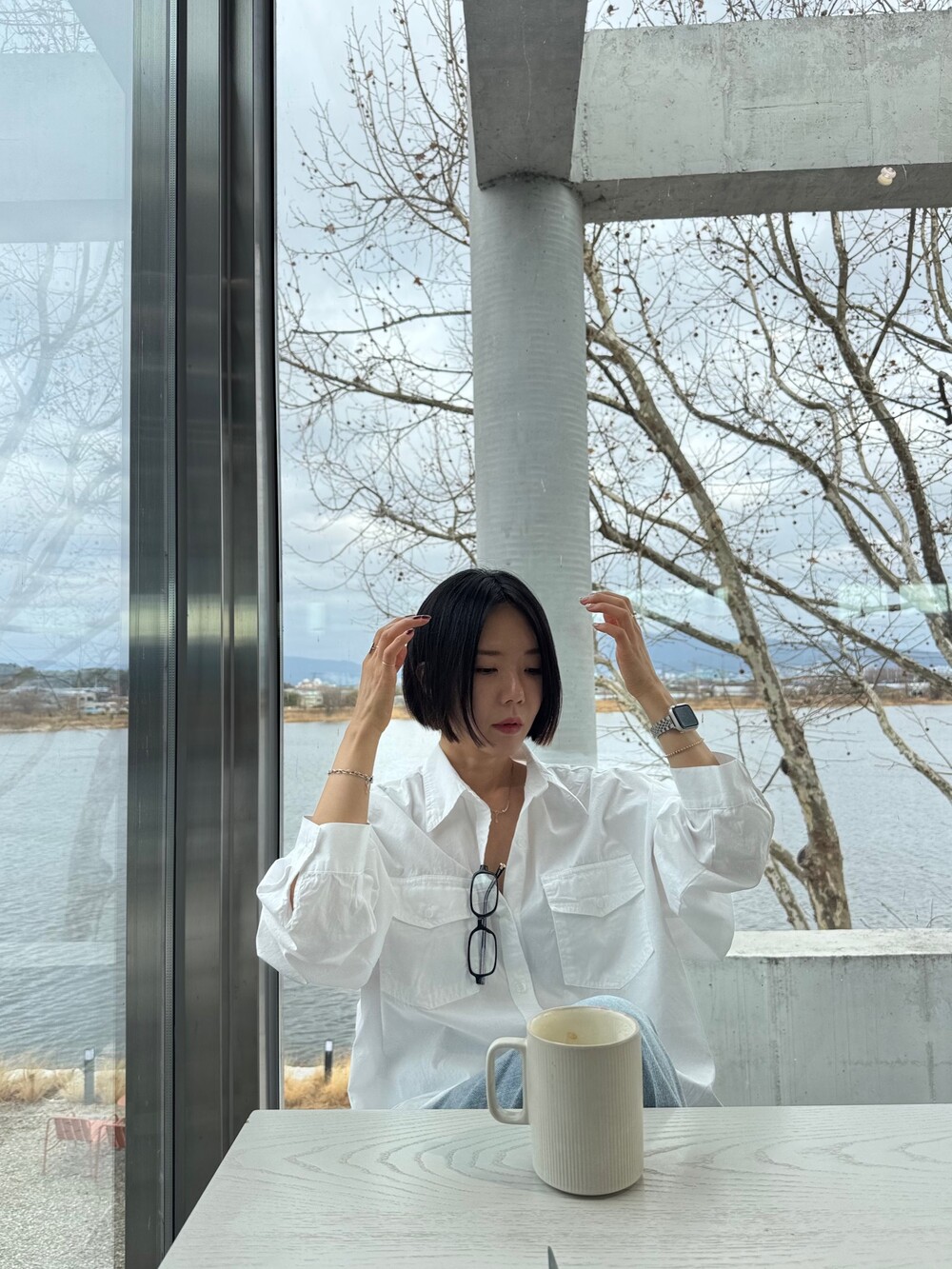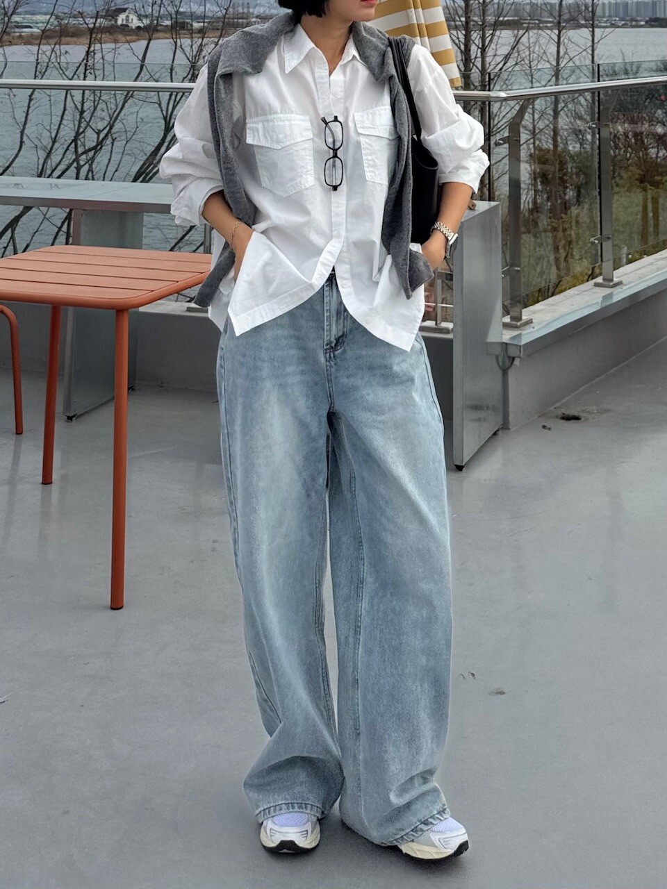 모델: 165cm , 48kg, 55사이즈