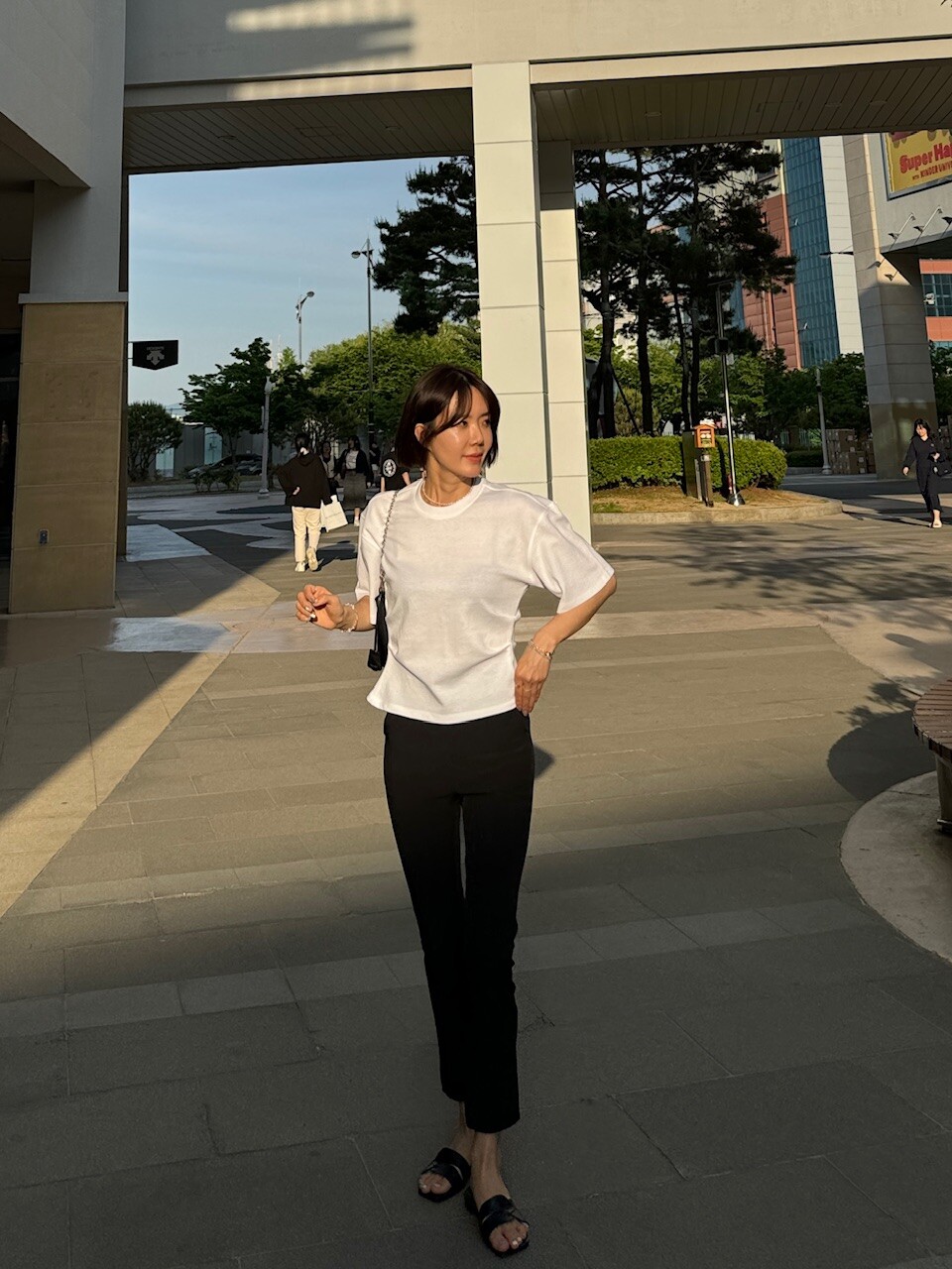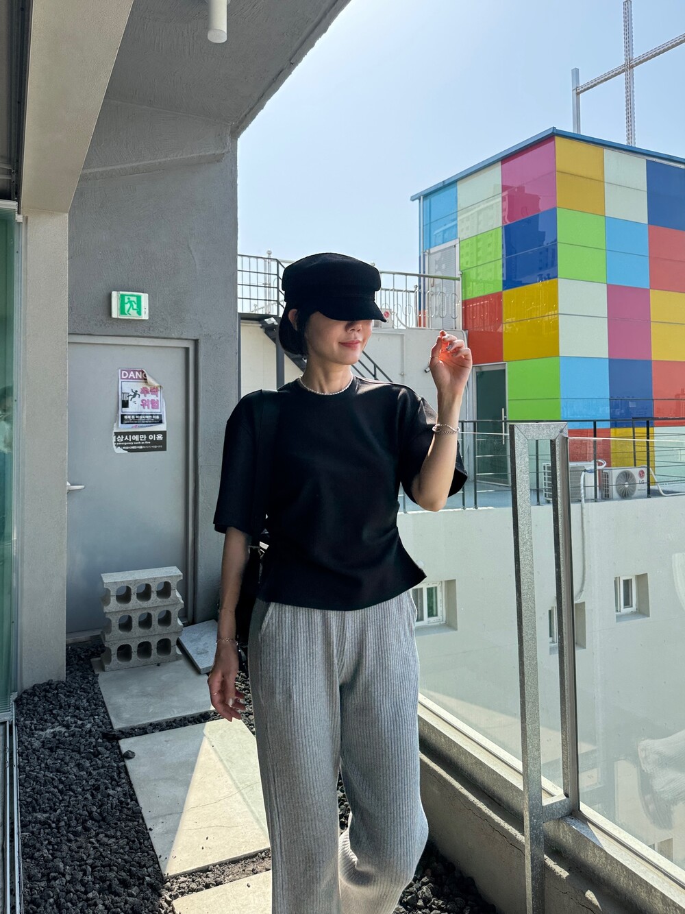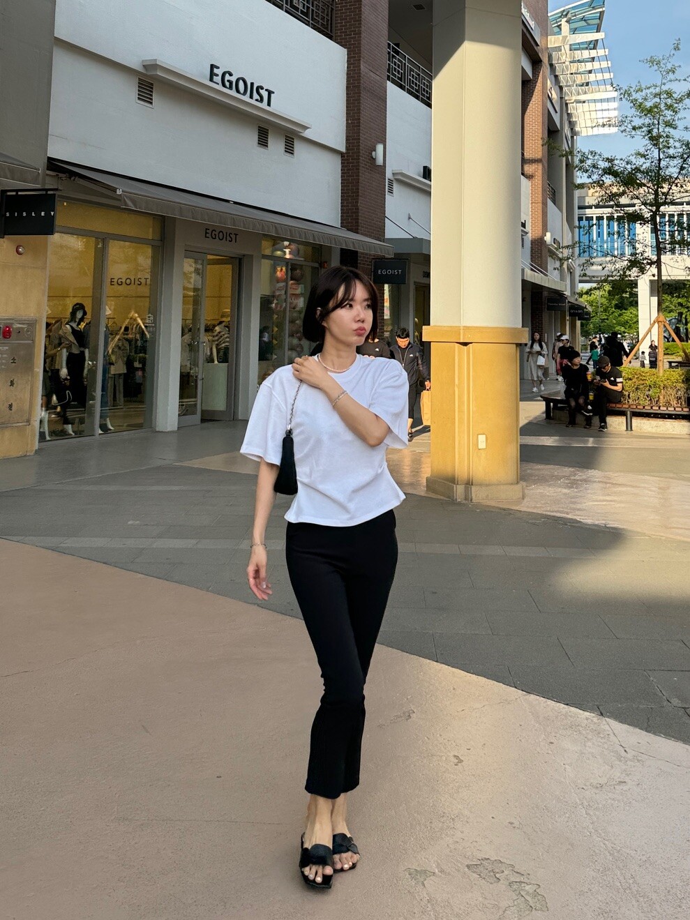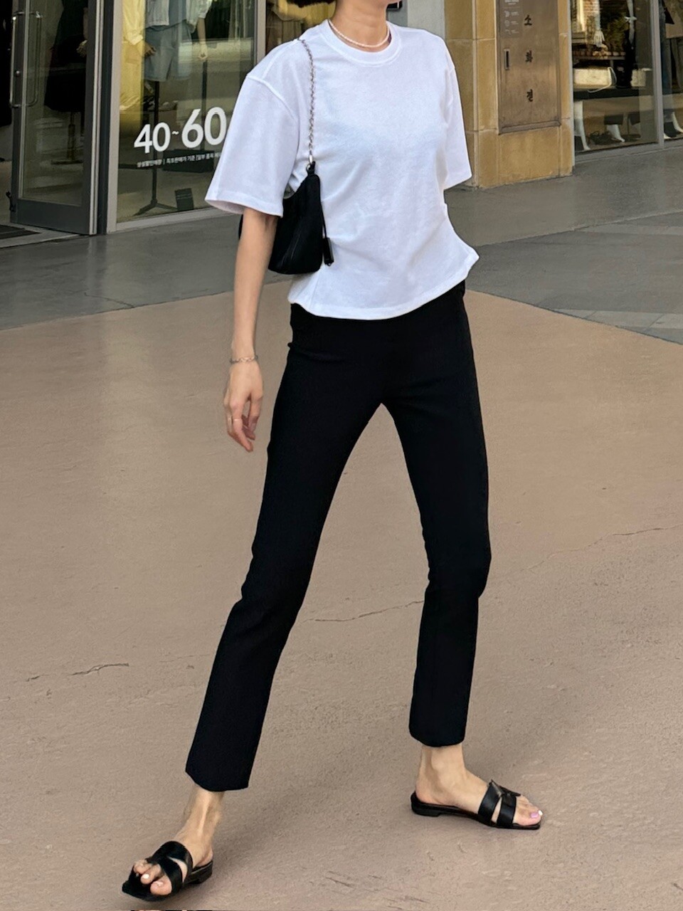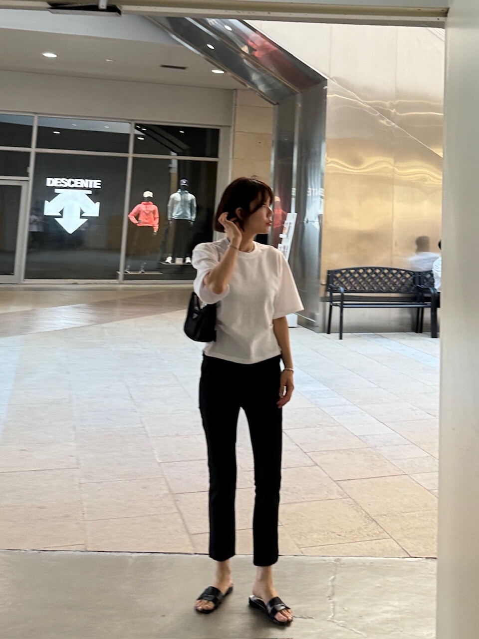 특징: 신축성 O, 비침 X, 안감 X , 두께감 보통, 무게감 보통