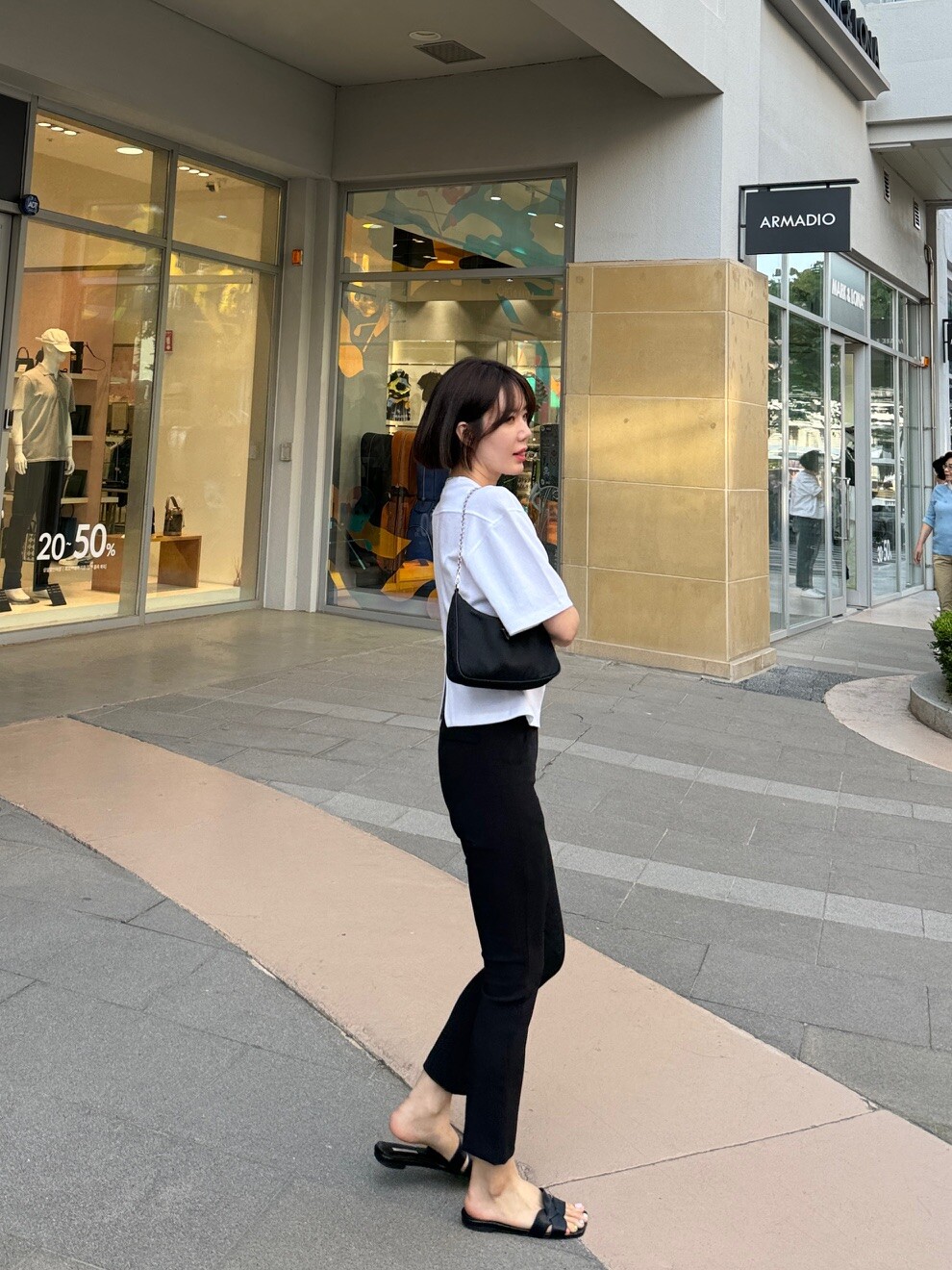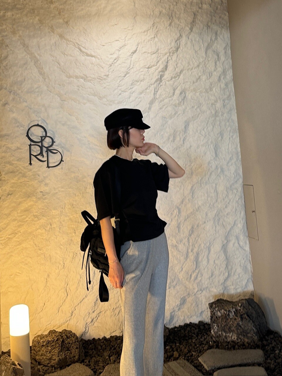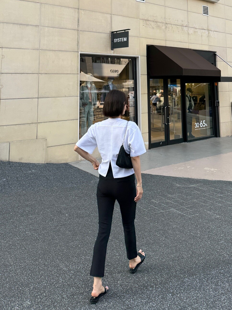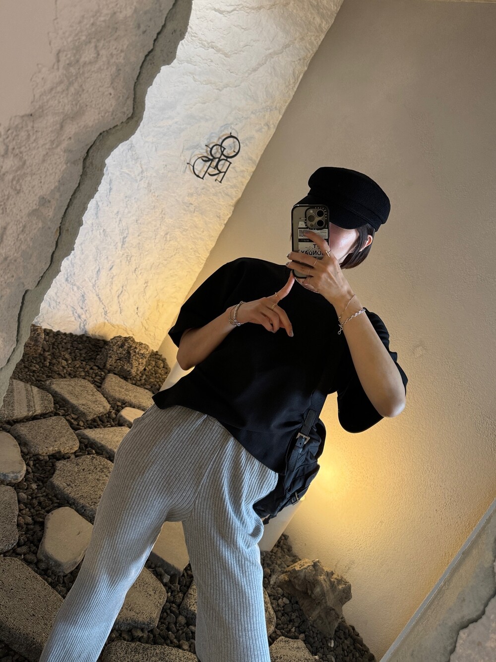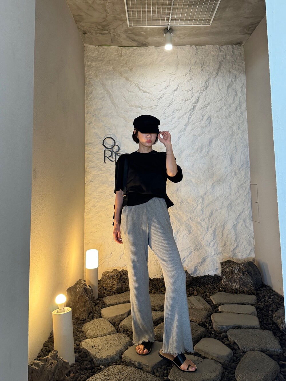 특징: 신축성 O, 비침 X, 안감 X , 두께감 보통, 무게감 보통