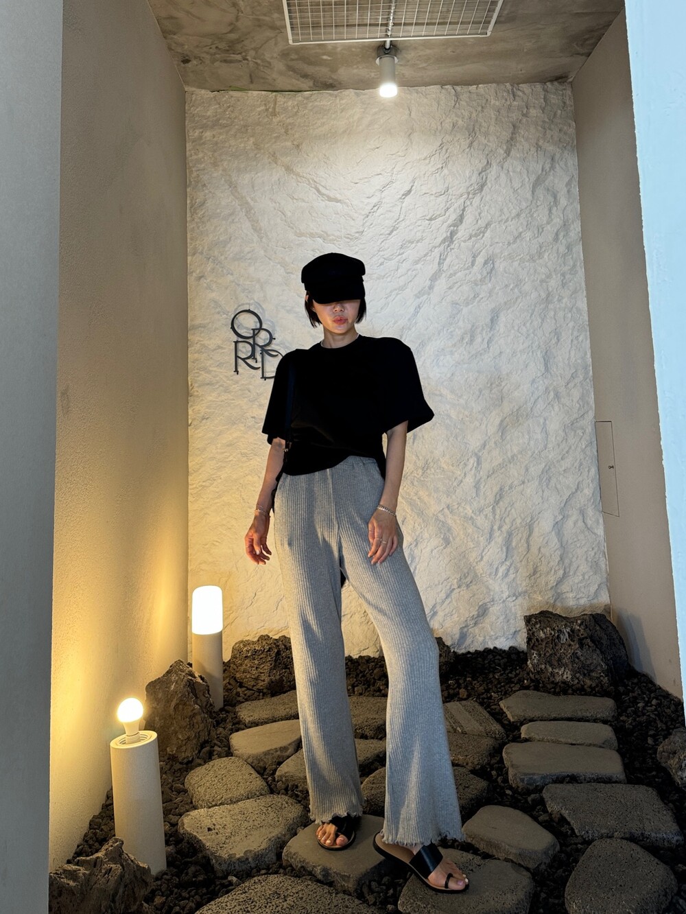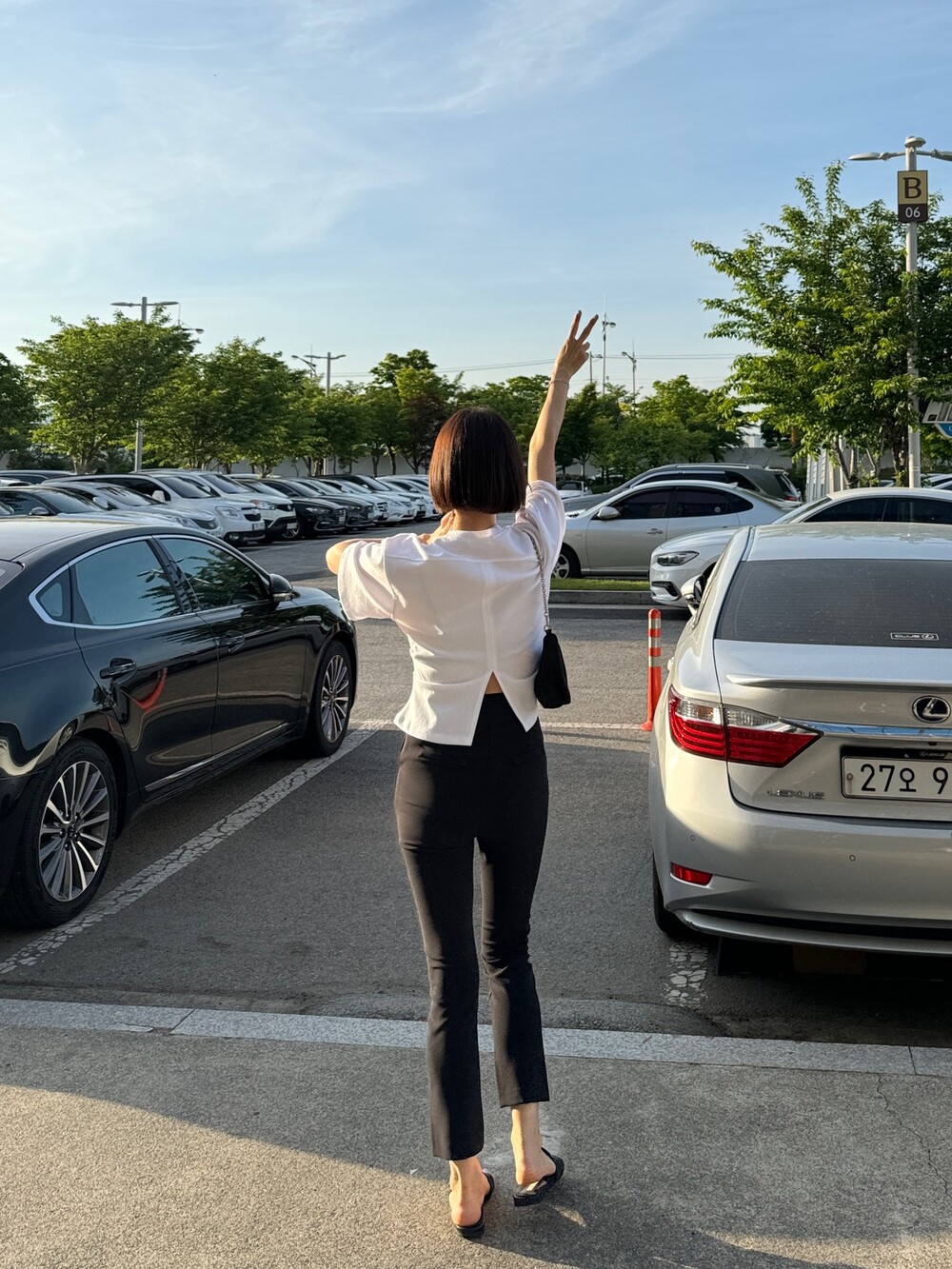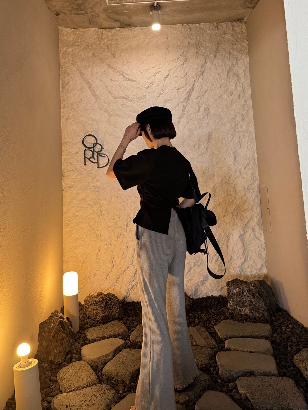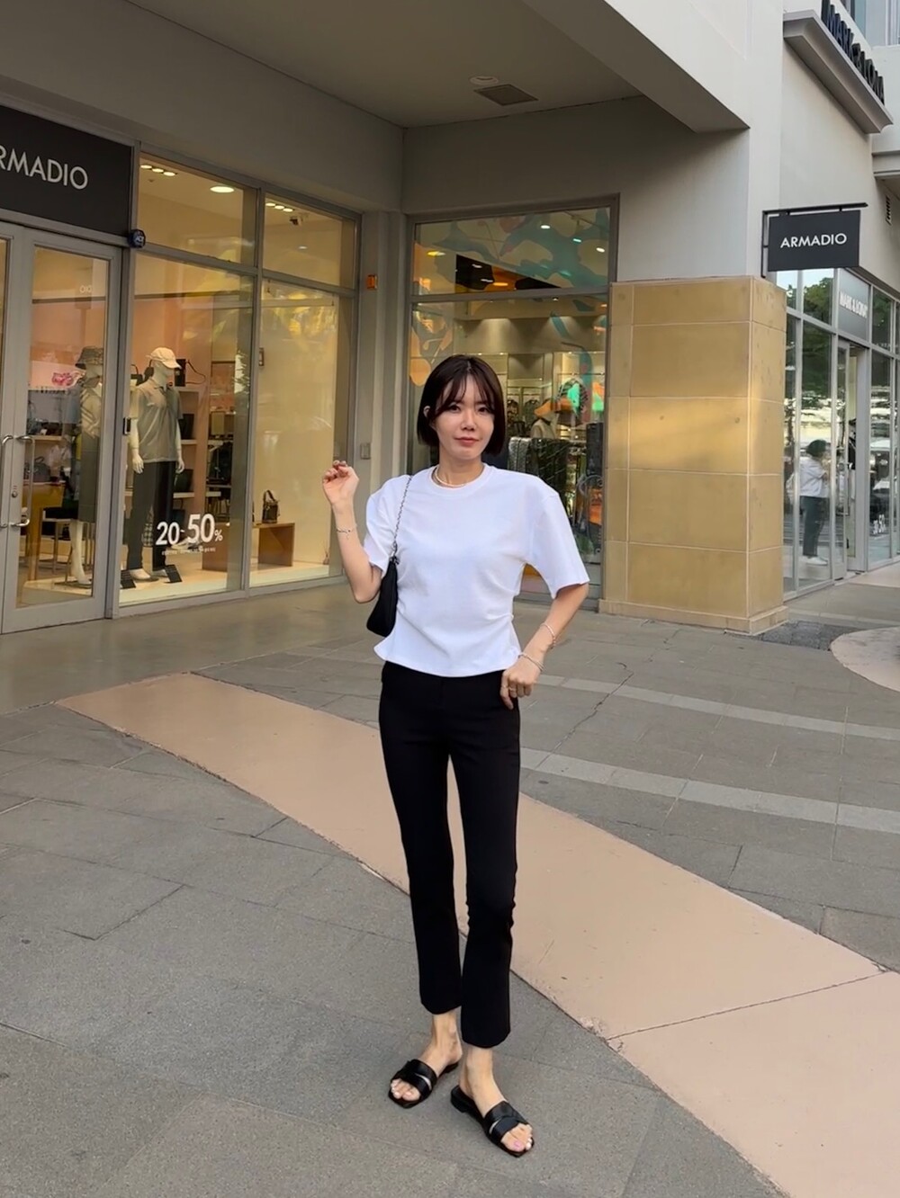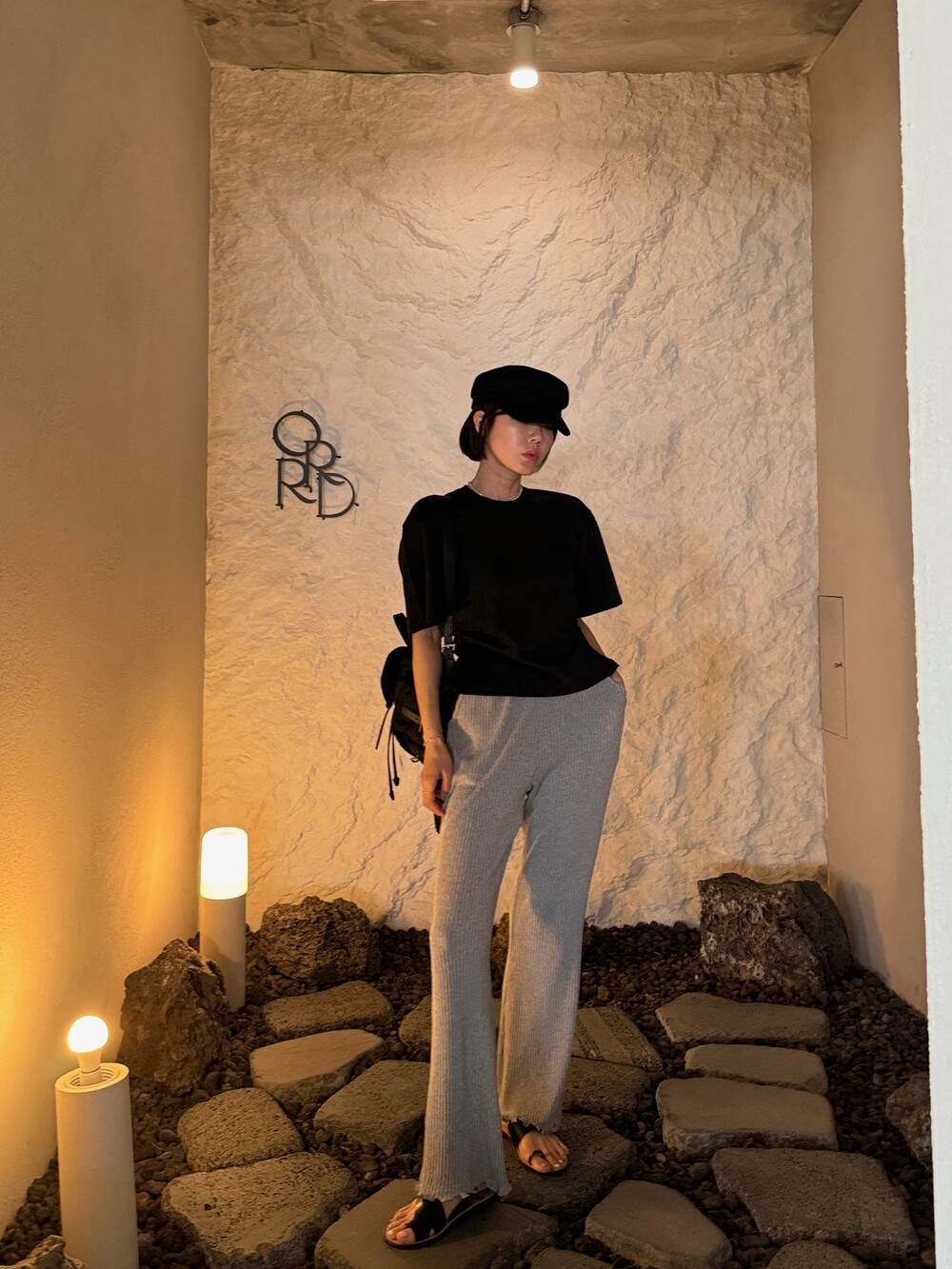특징: 신축성 O, 비침 X, 안감 X , 두께감 보통, 무게감 보통