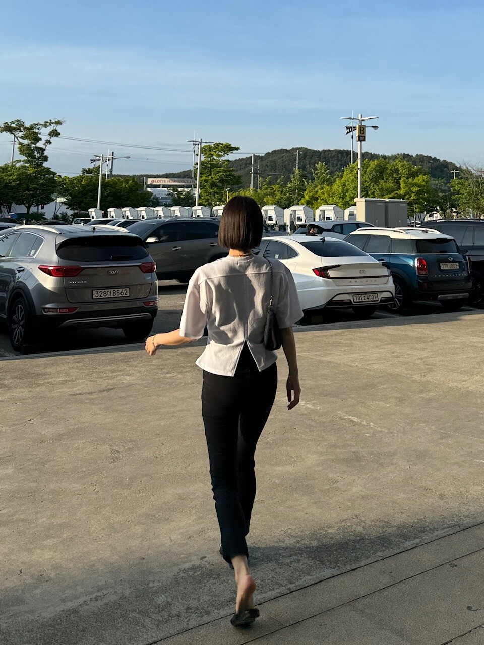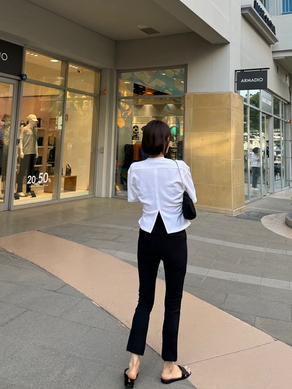 특징: 신축성 O, 비침 X, 안감 X , 두께감 보통, 무게감 보통