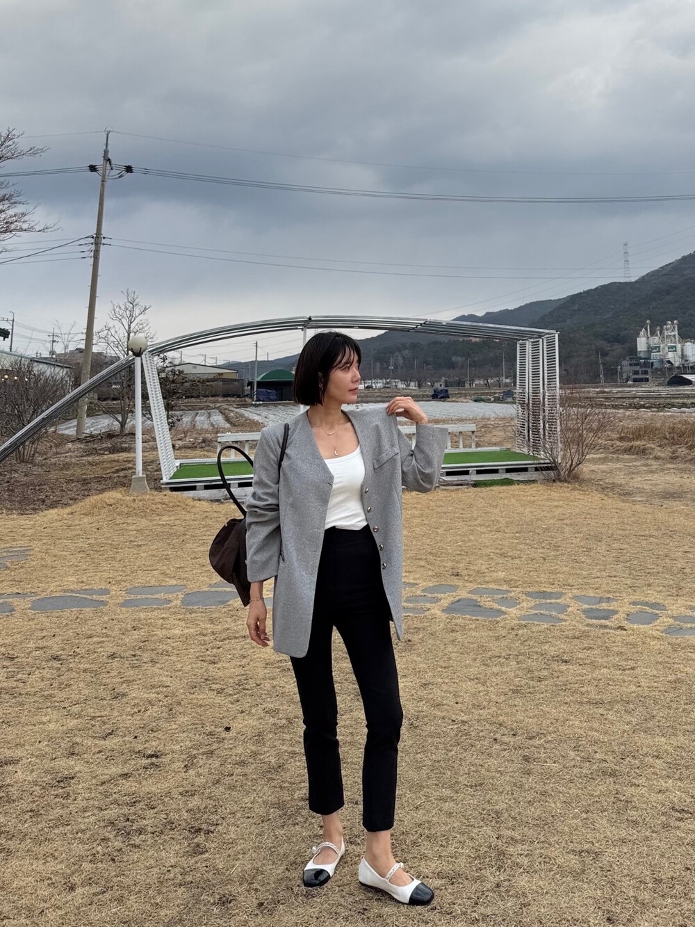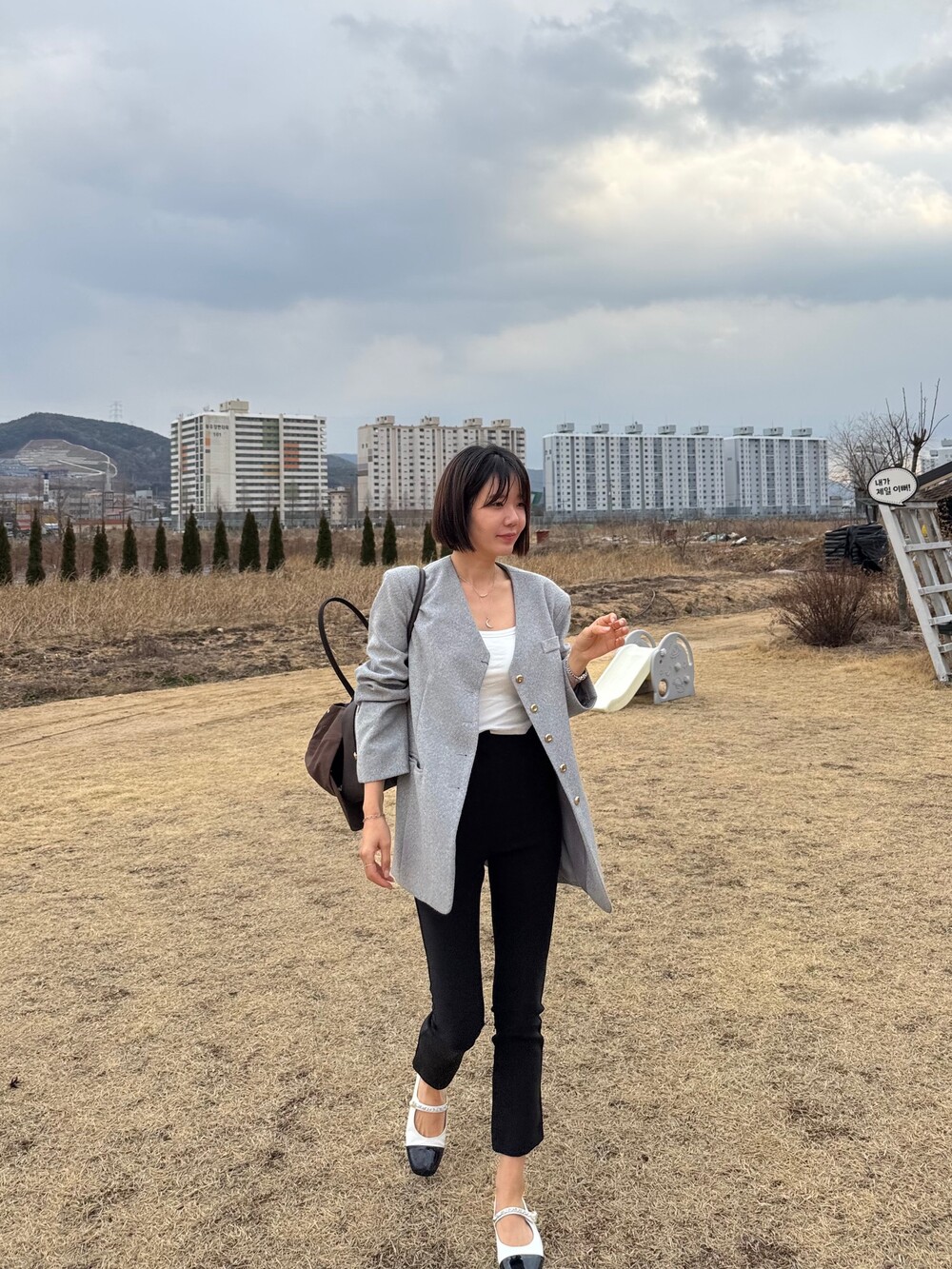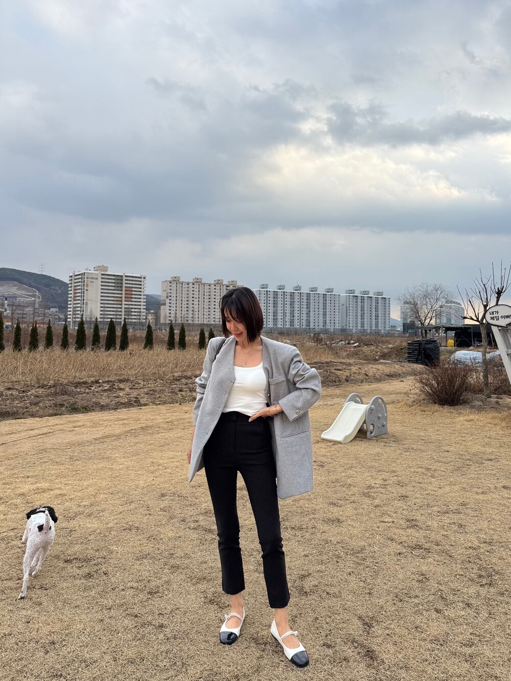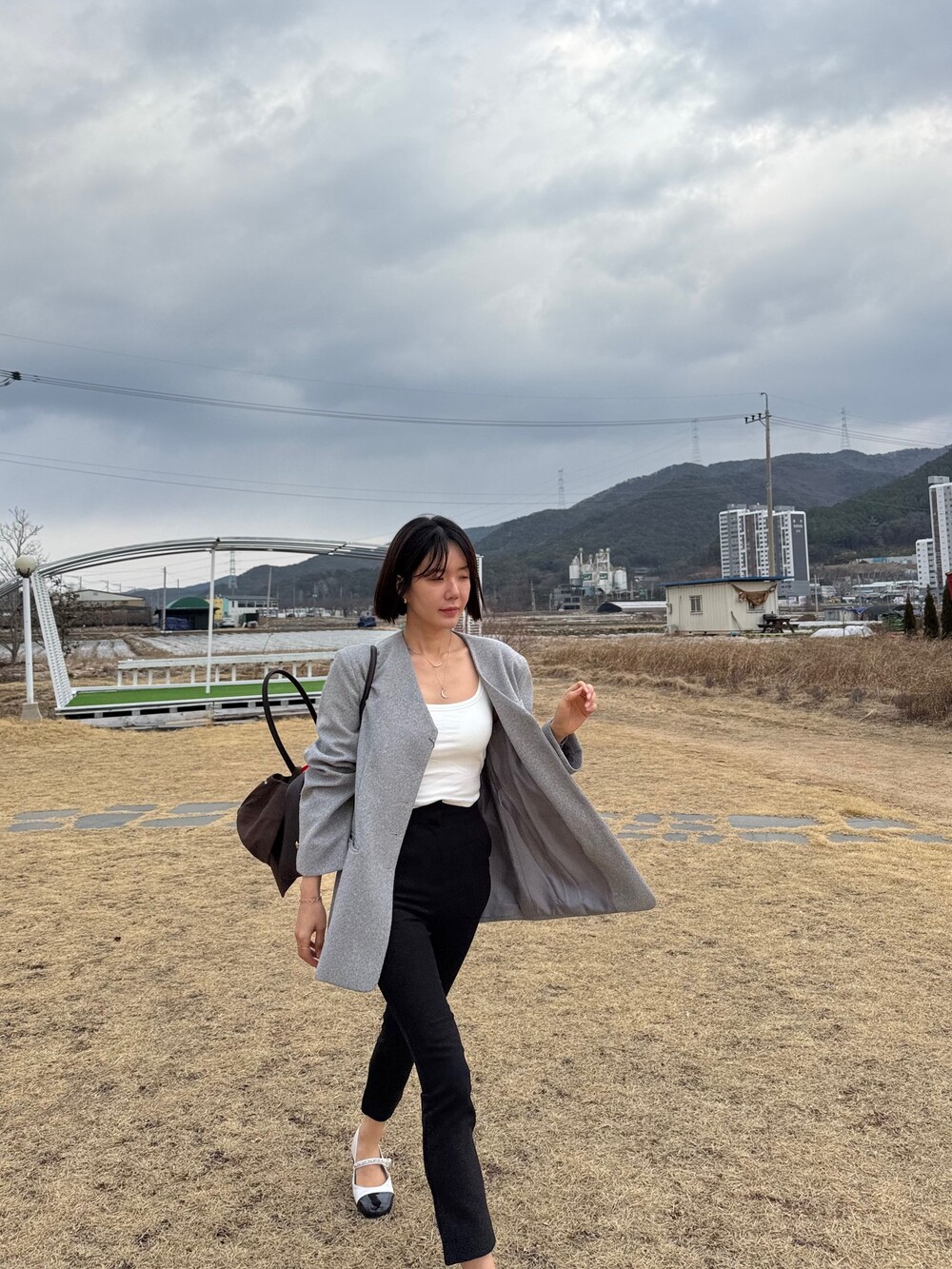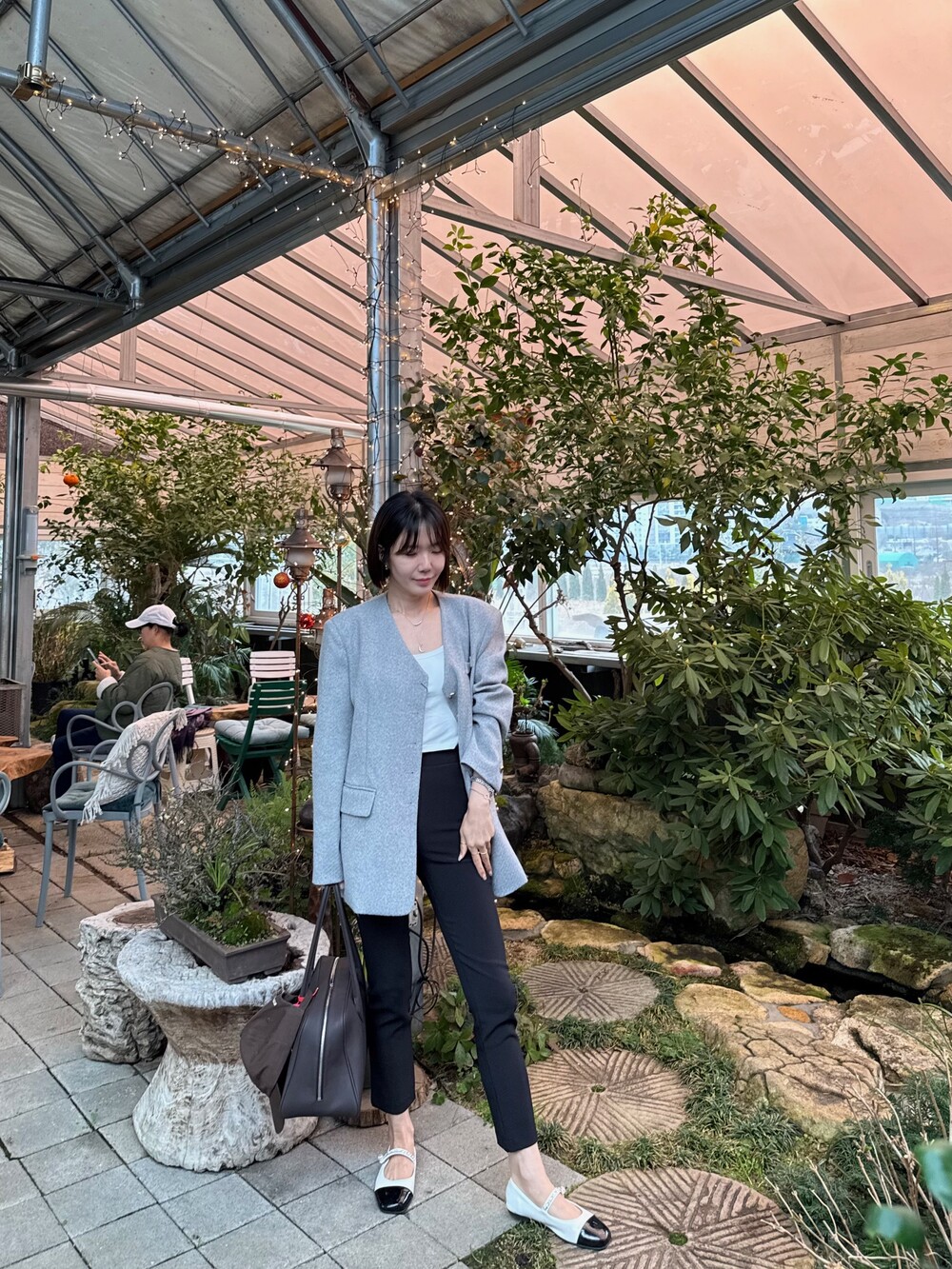 특징: 신축성 O, 비침 X, 안감 X , 두께감 보통, 무게감 보통