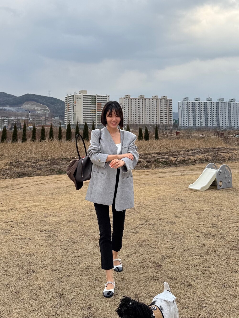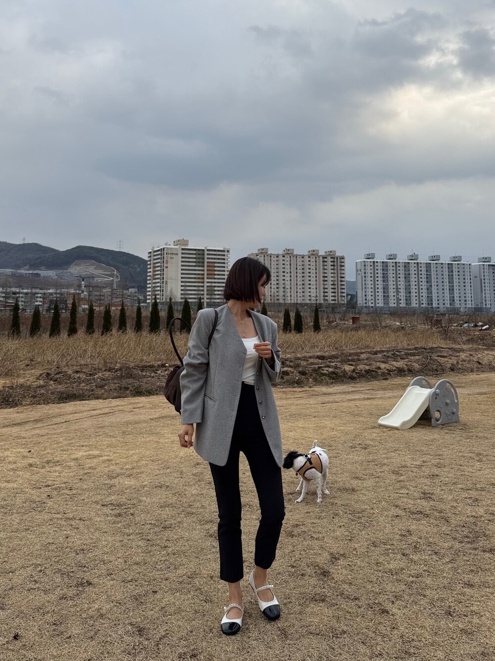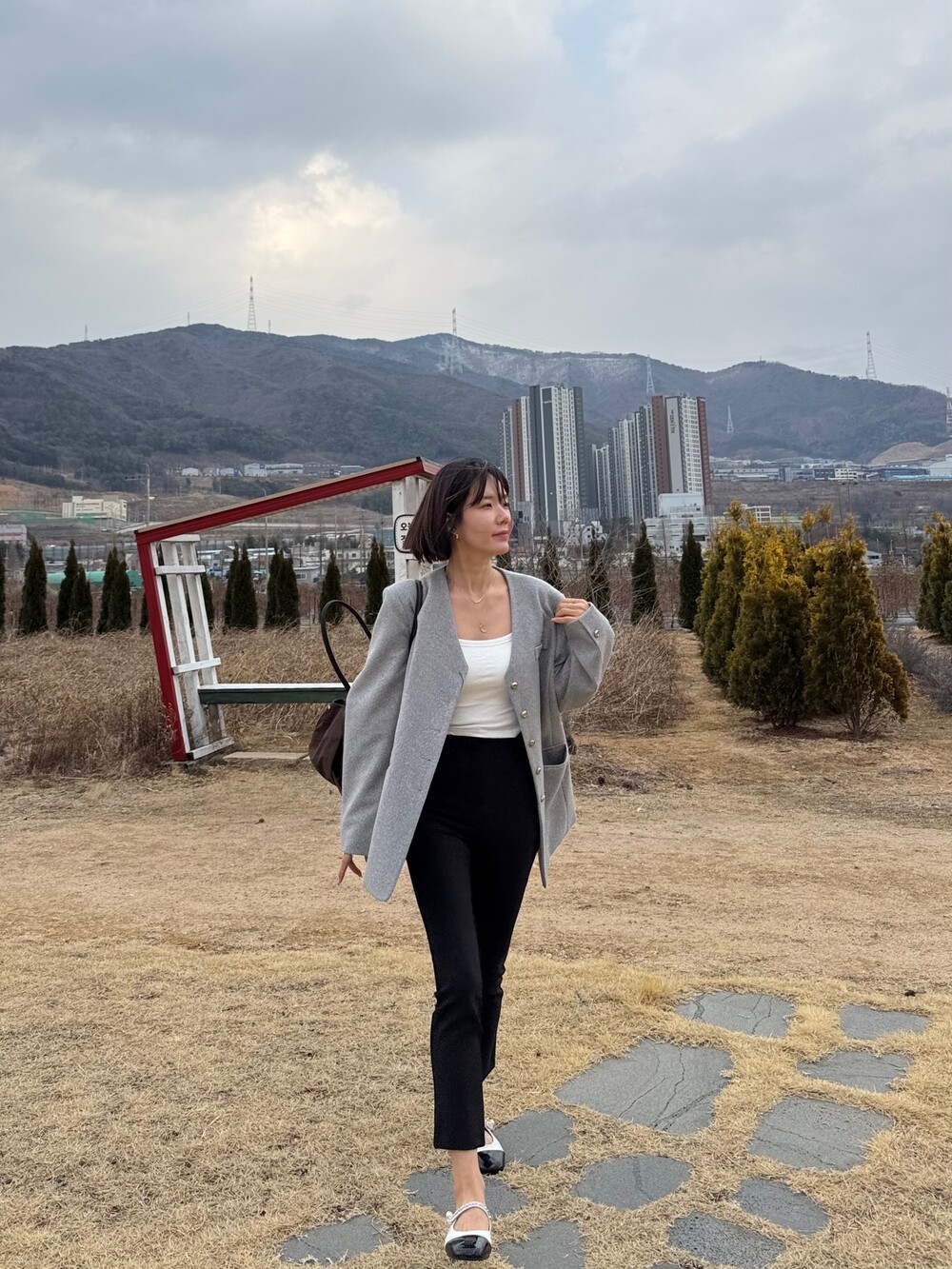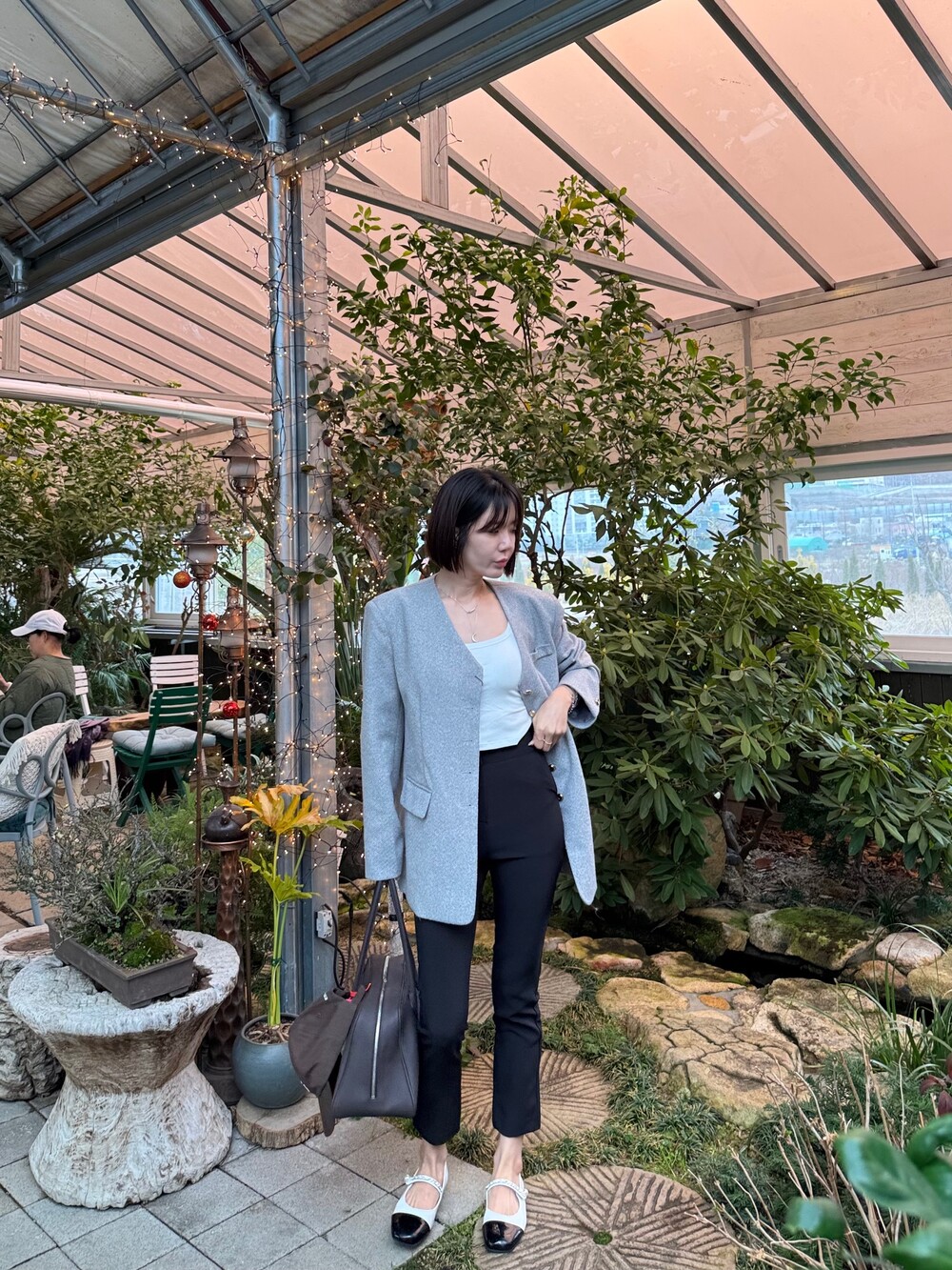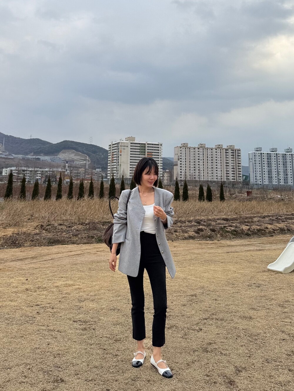 특징: 신축성 O, 비침 X, 안감 X , 두께감 보통, 무게감 보통