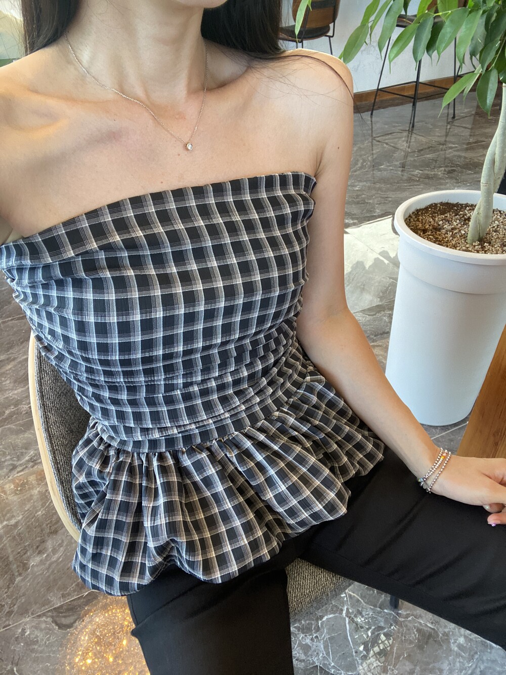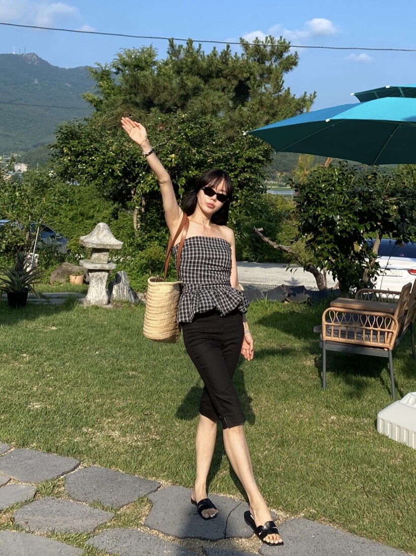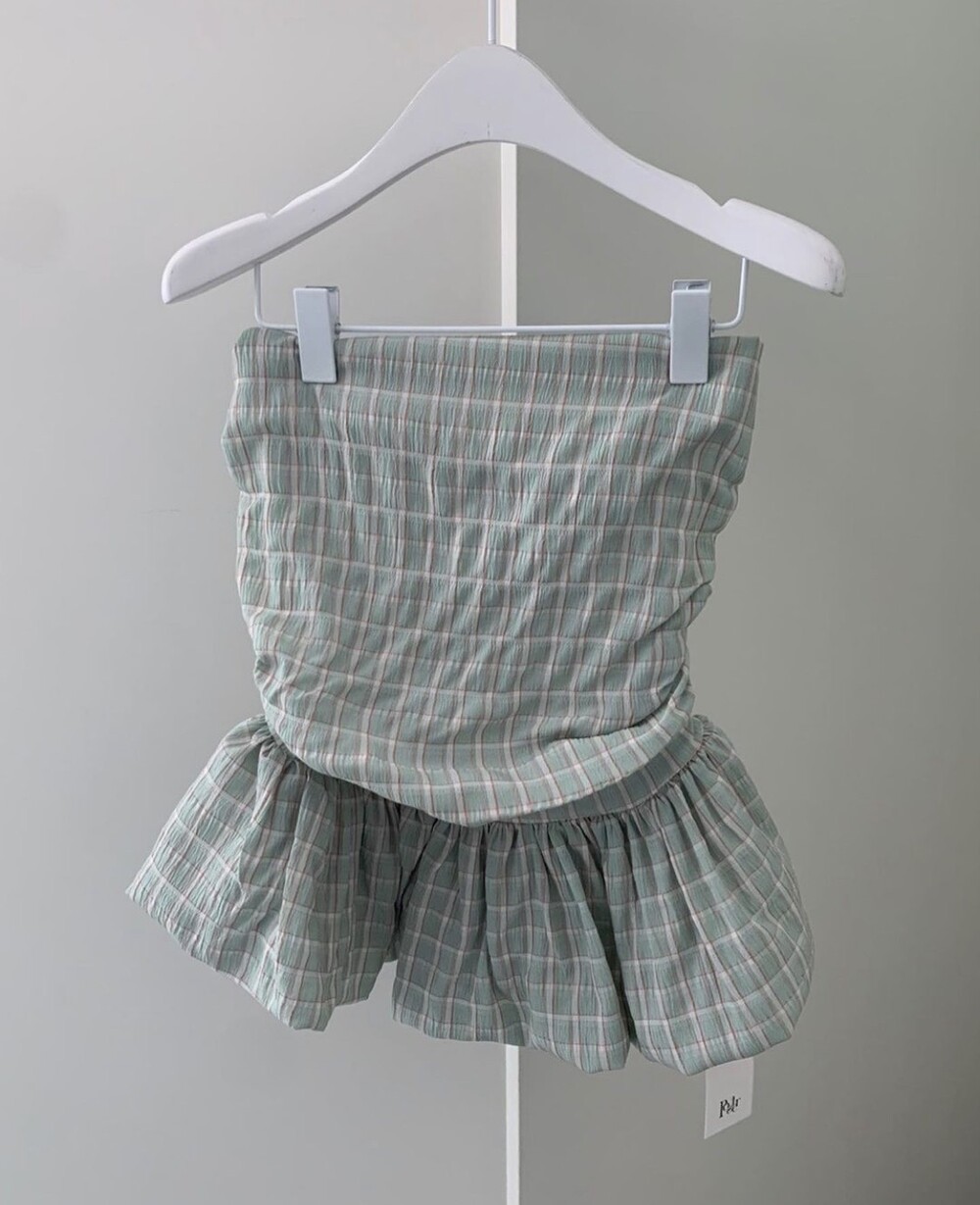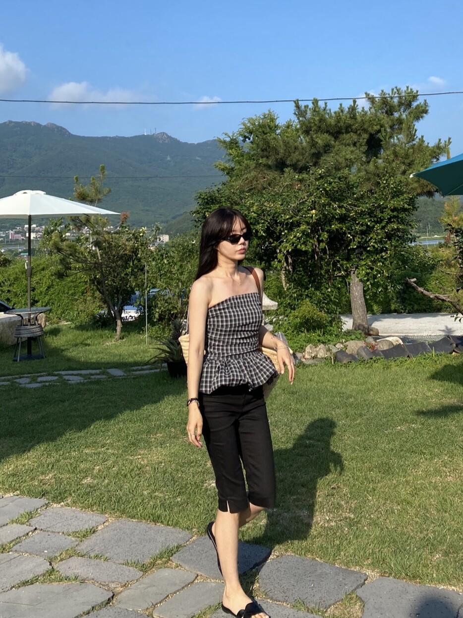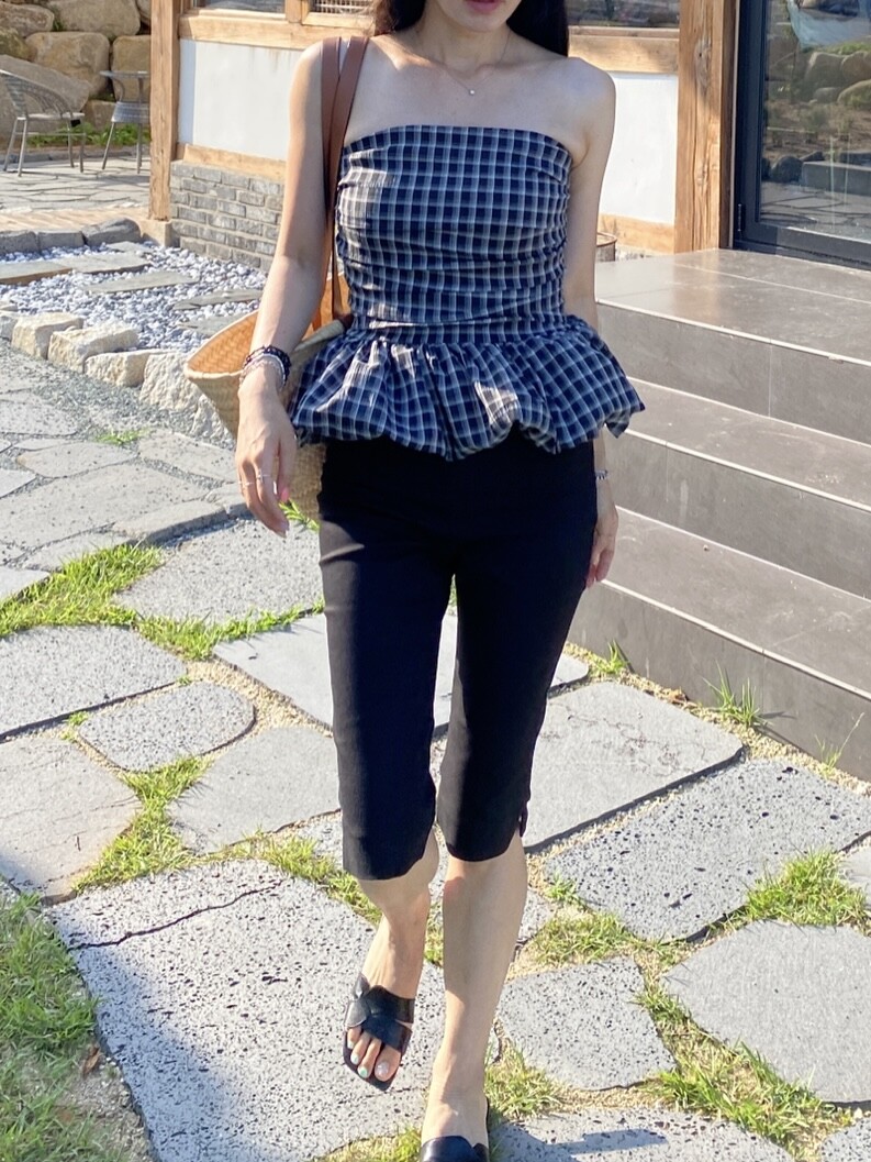 다양하게 활용하기 좋은 체크 스모크튜브탑이예요