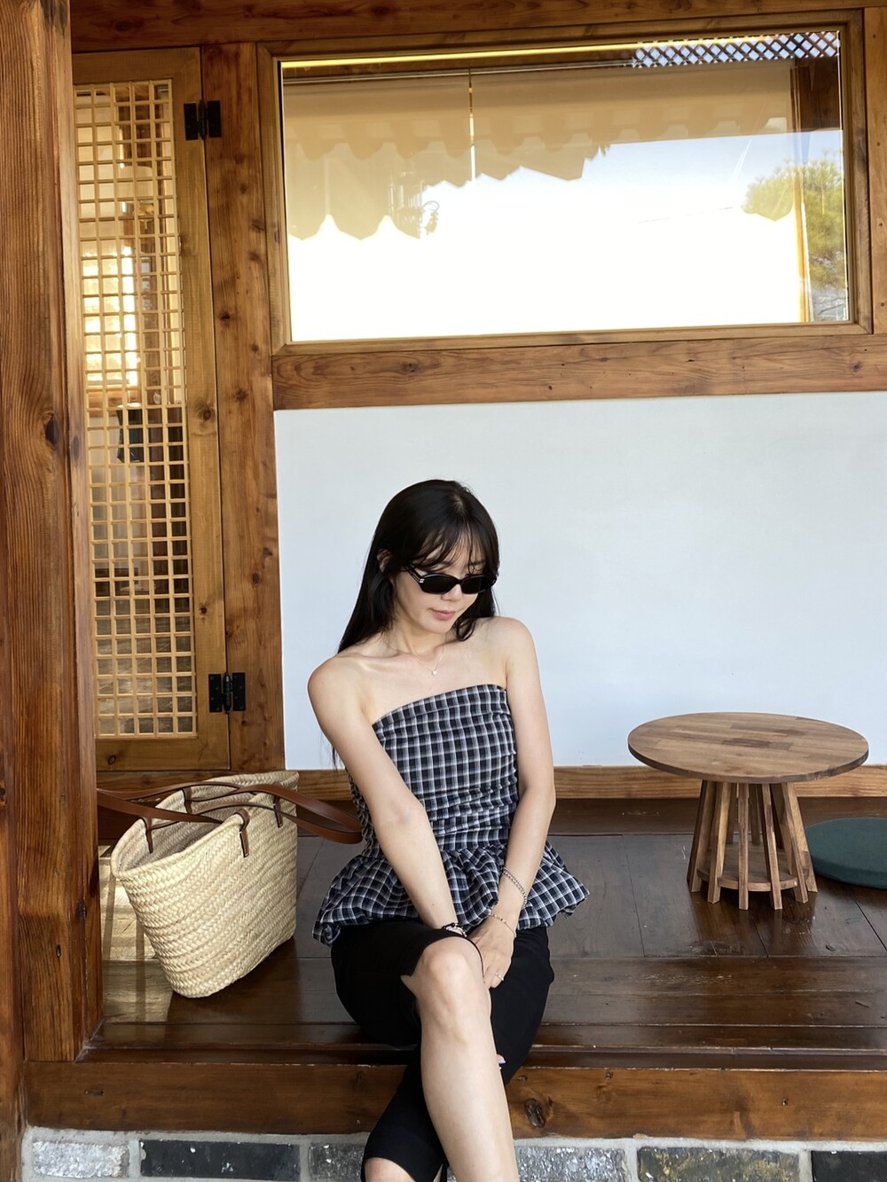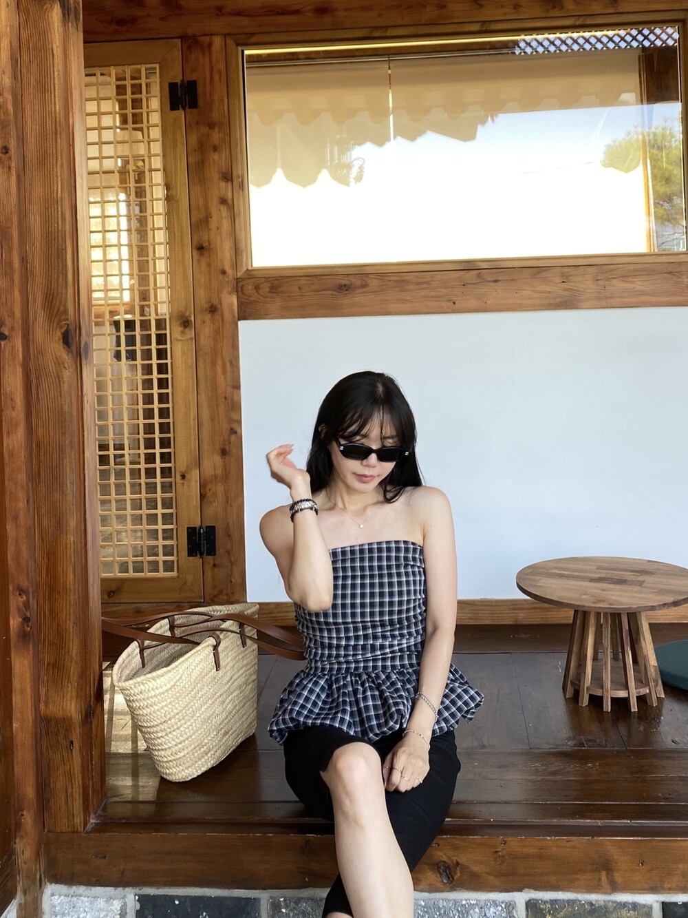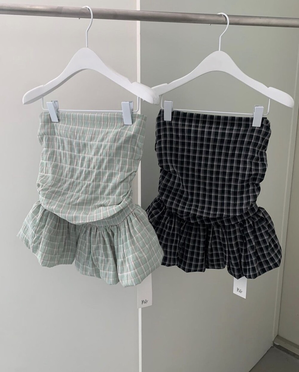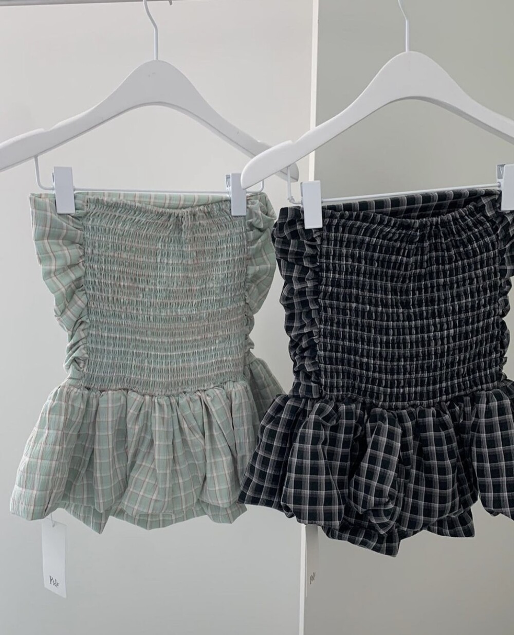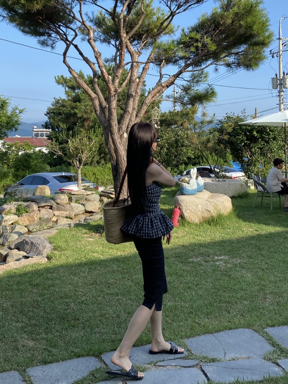 다양하게 활용하기 좋은 체크 스모크튜브탑이예요