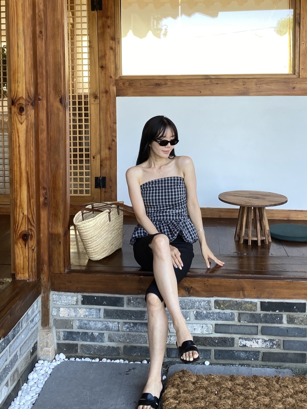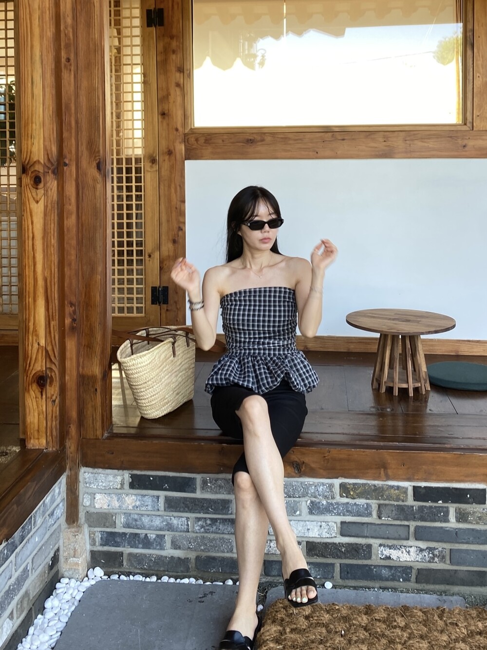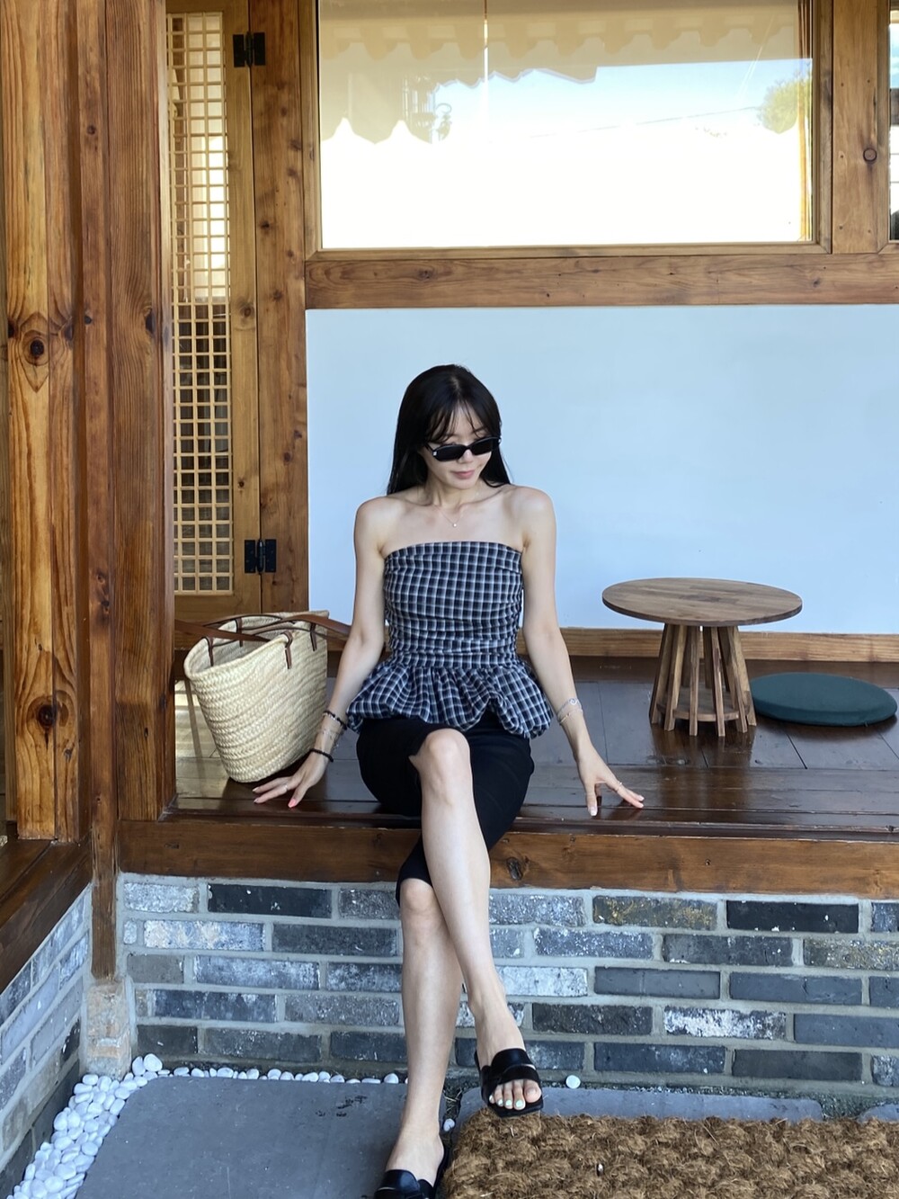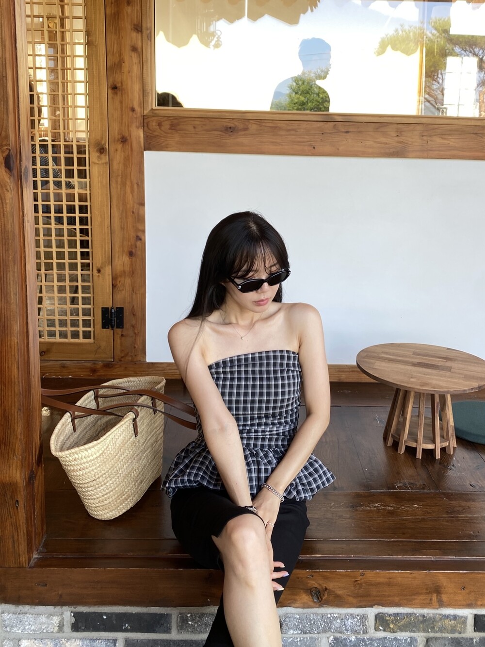다양하게 활용하기 좋은 체크 스모크튜브탑이예요