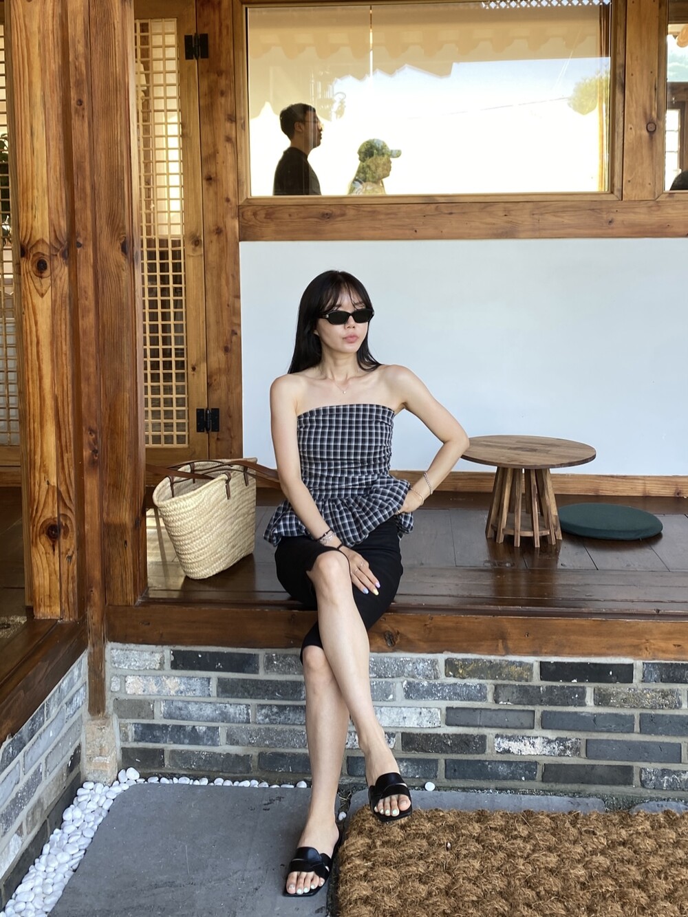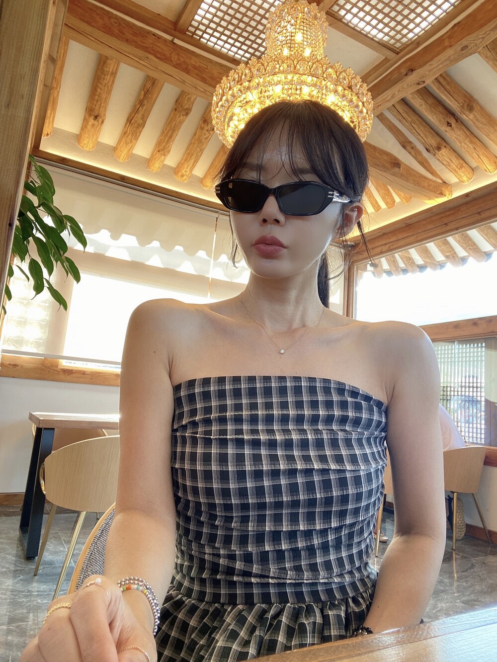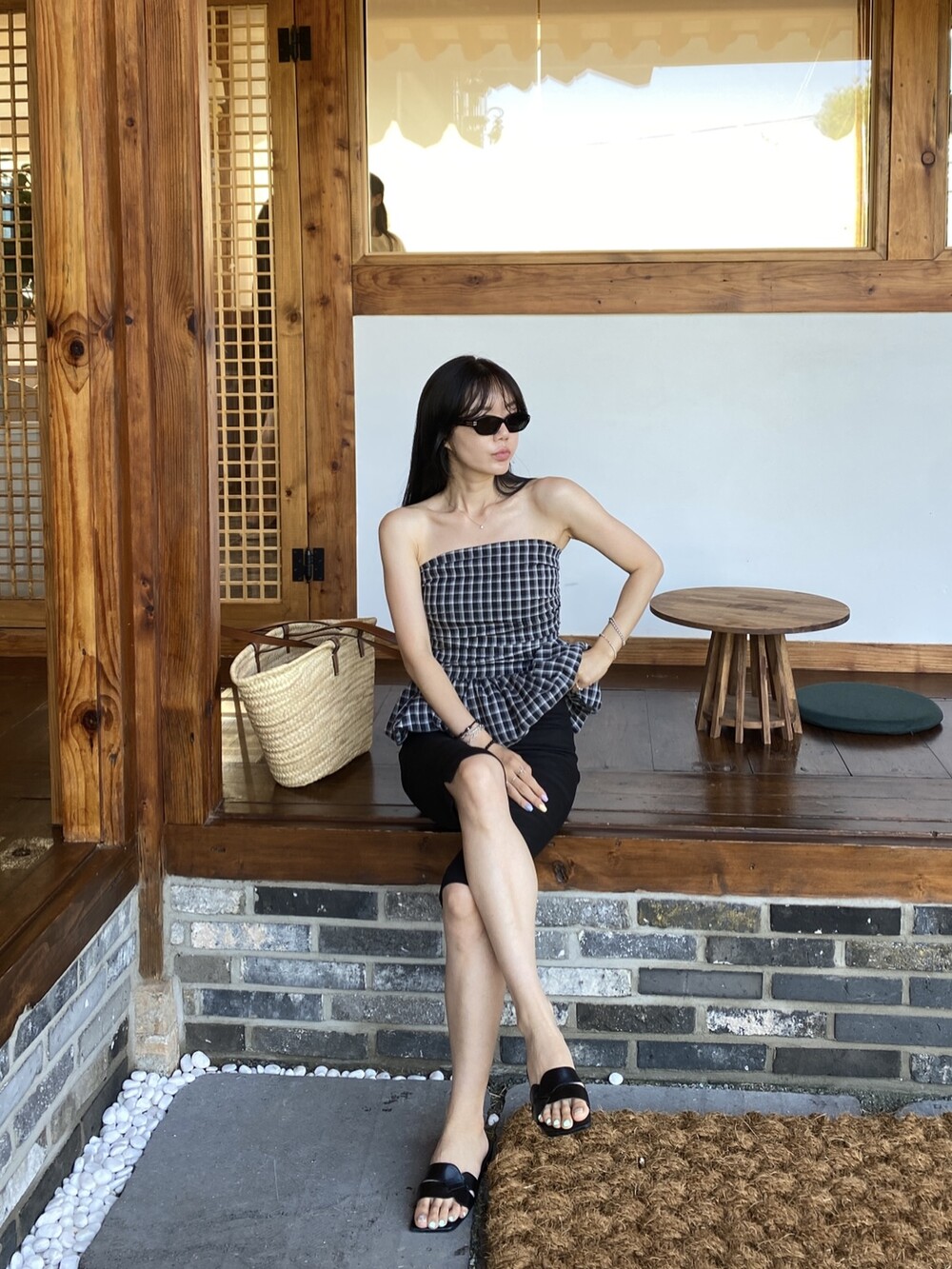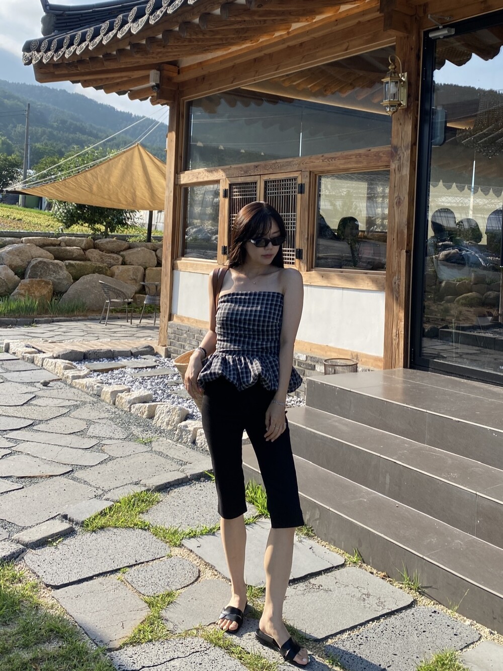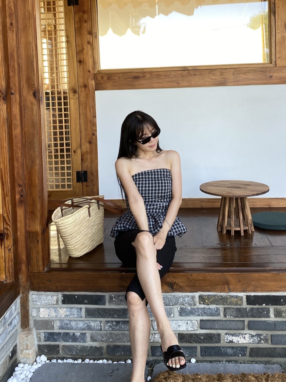 다양하게 활용하기 좋은 체크 스모크튜브탑이예요