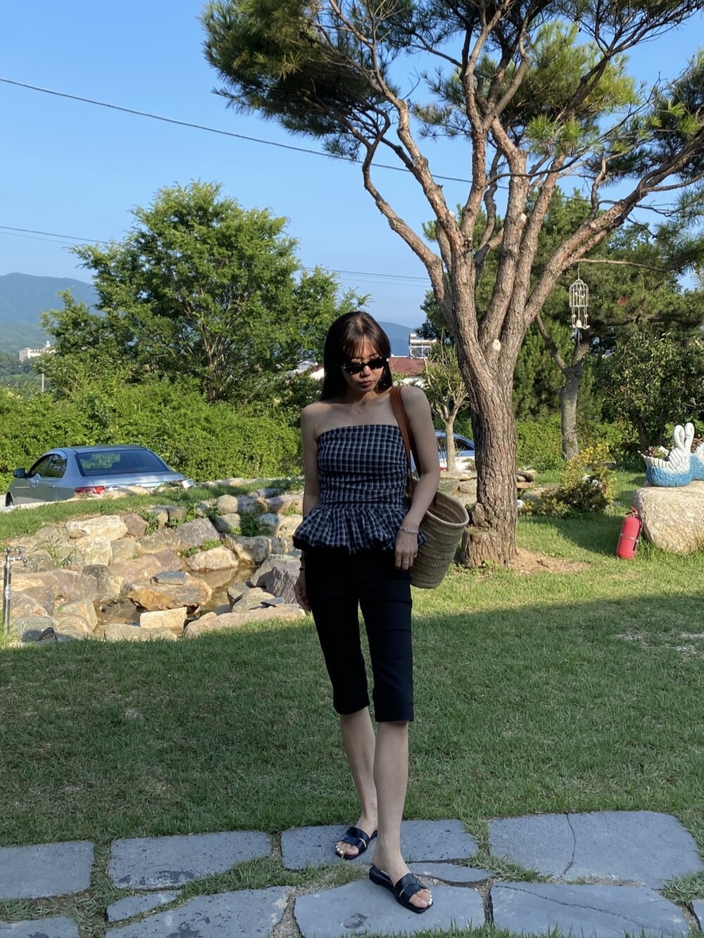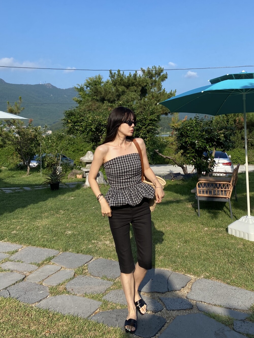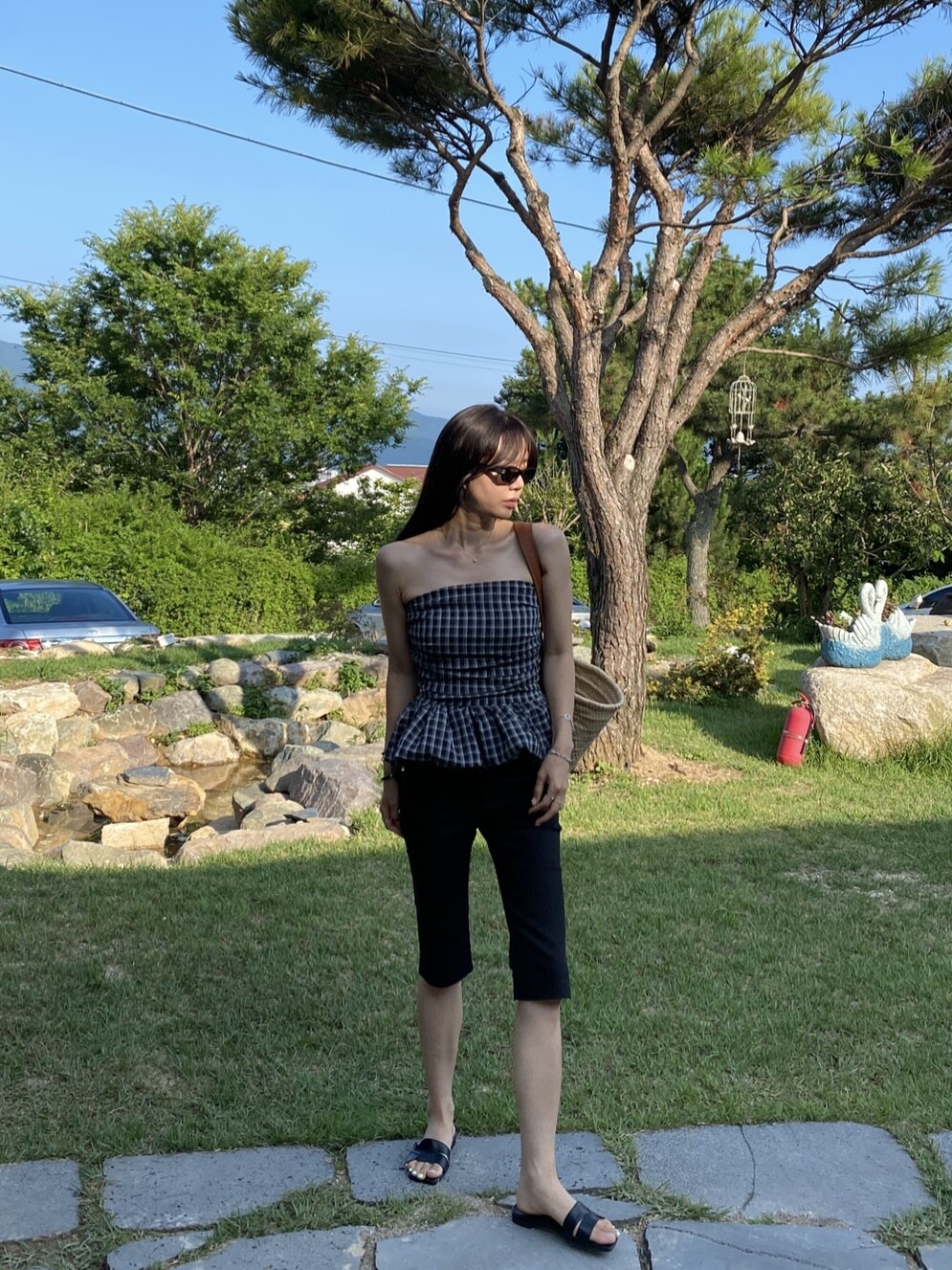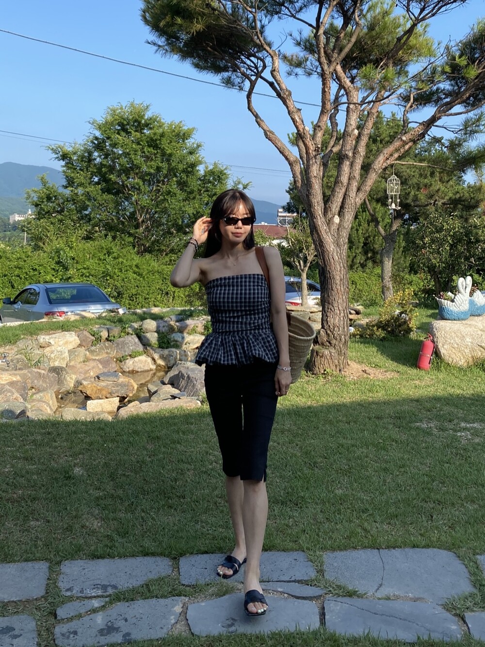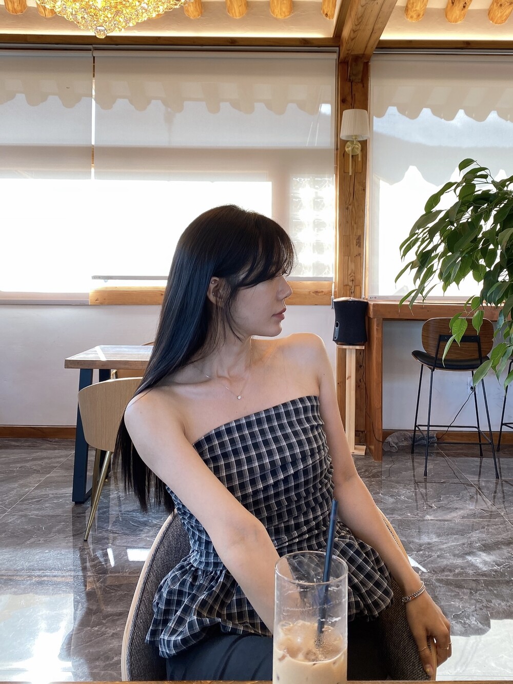 다양하게 활용하기 좋은 체크 스모크튜브탑이예요