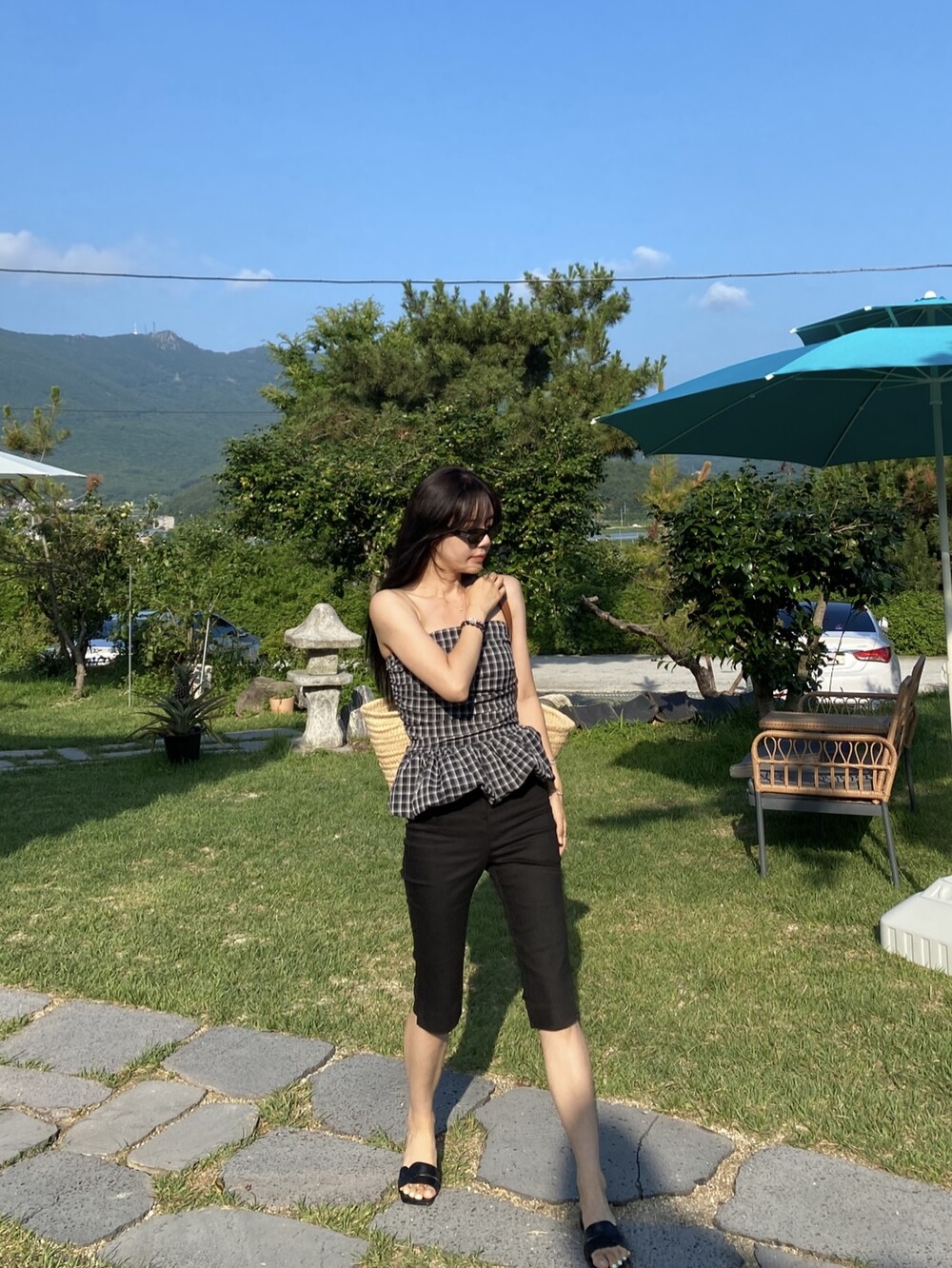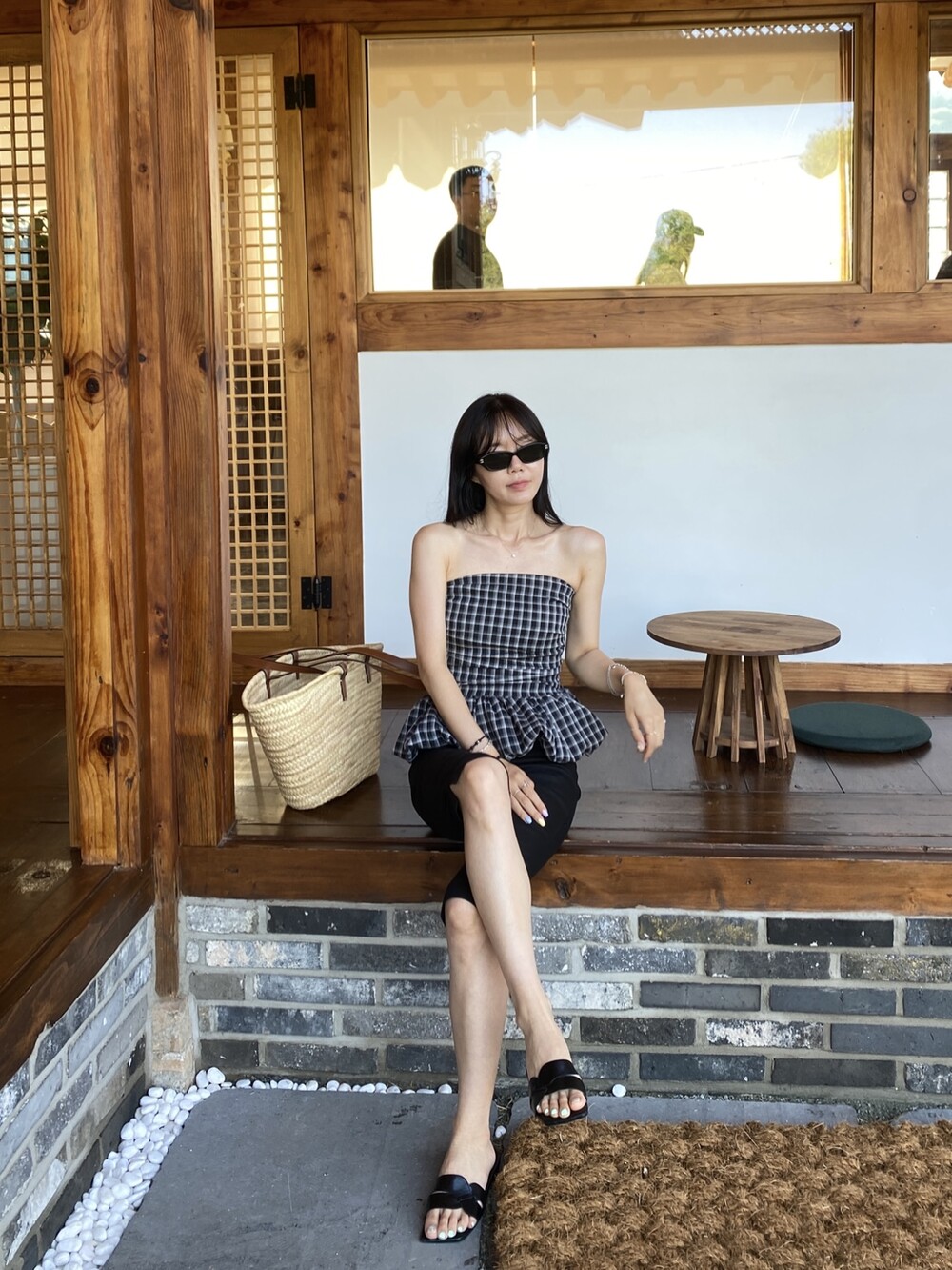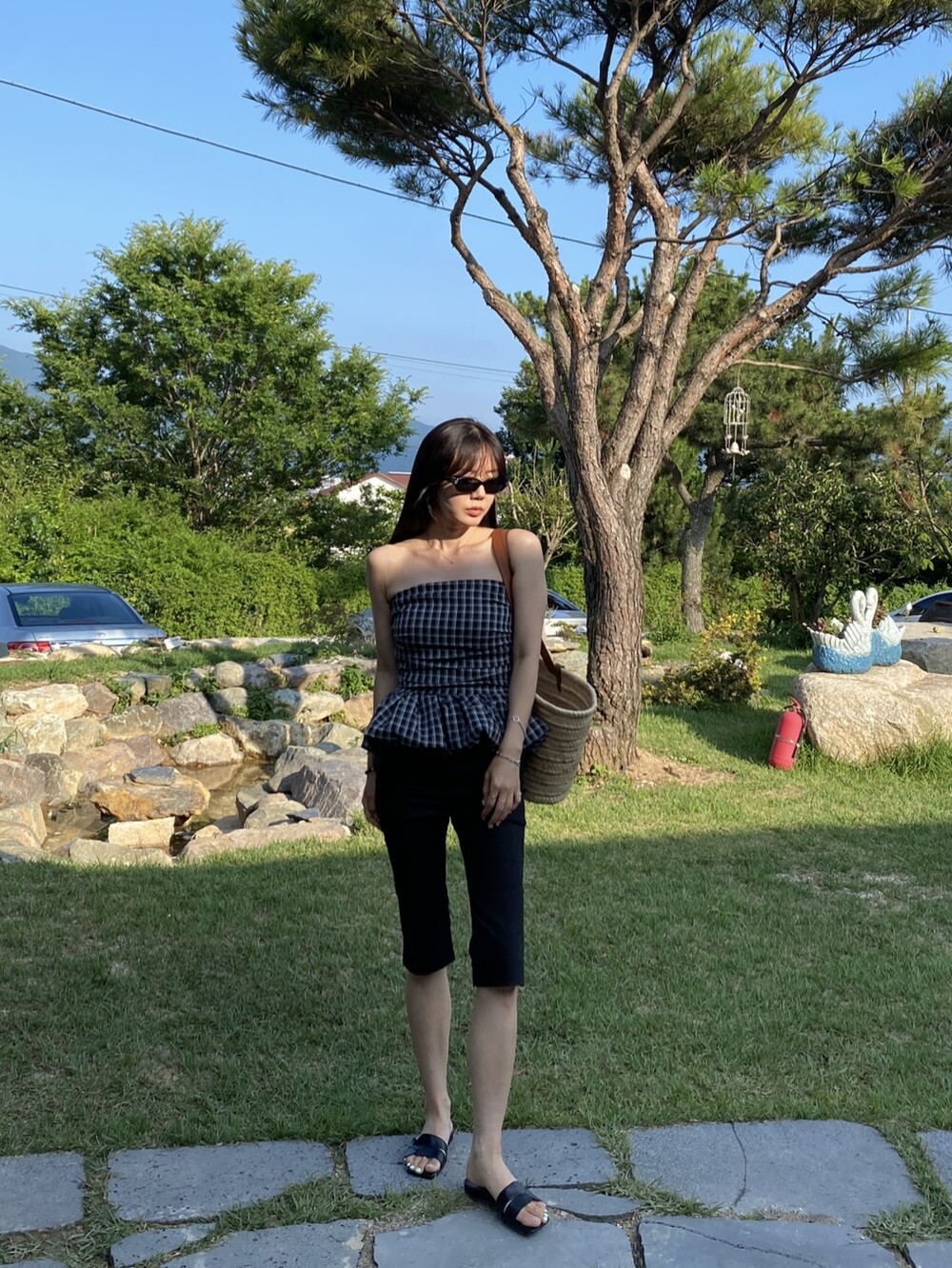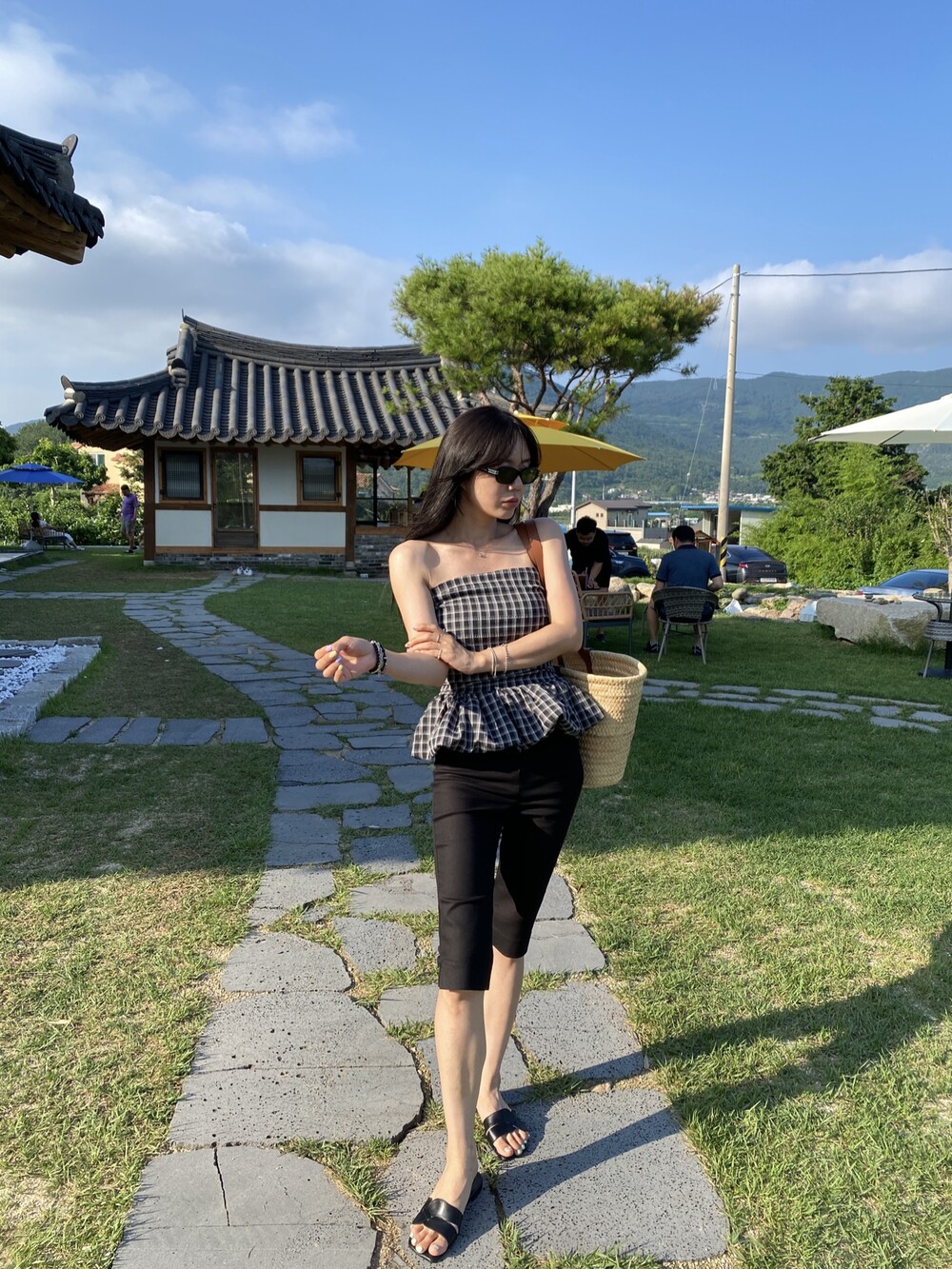 다양하게 활용하기 좋은 체크 스모크튜브탑이예요