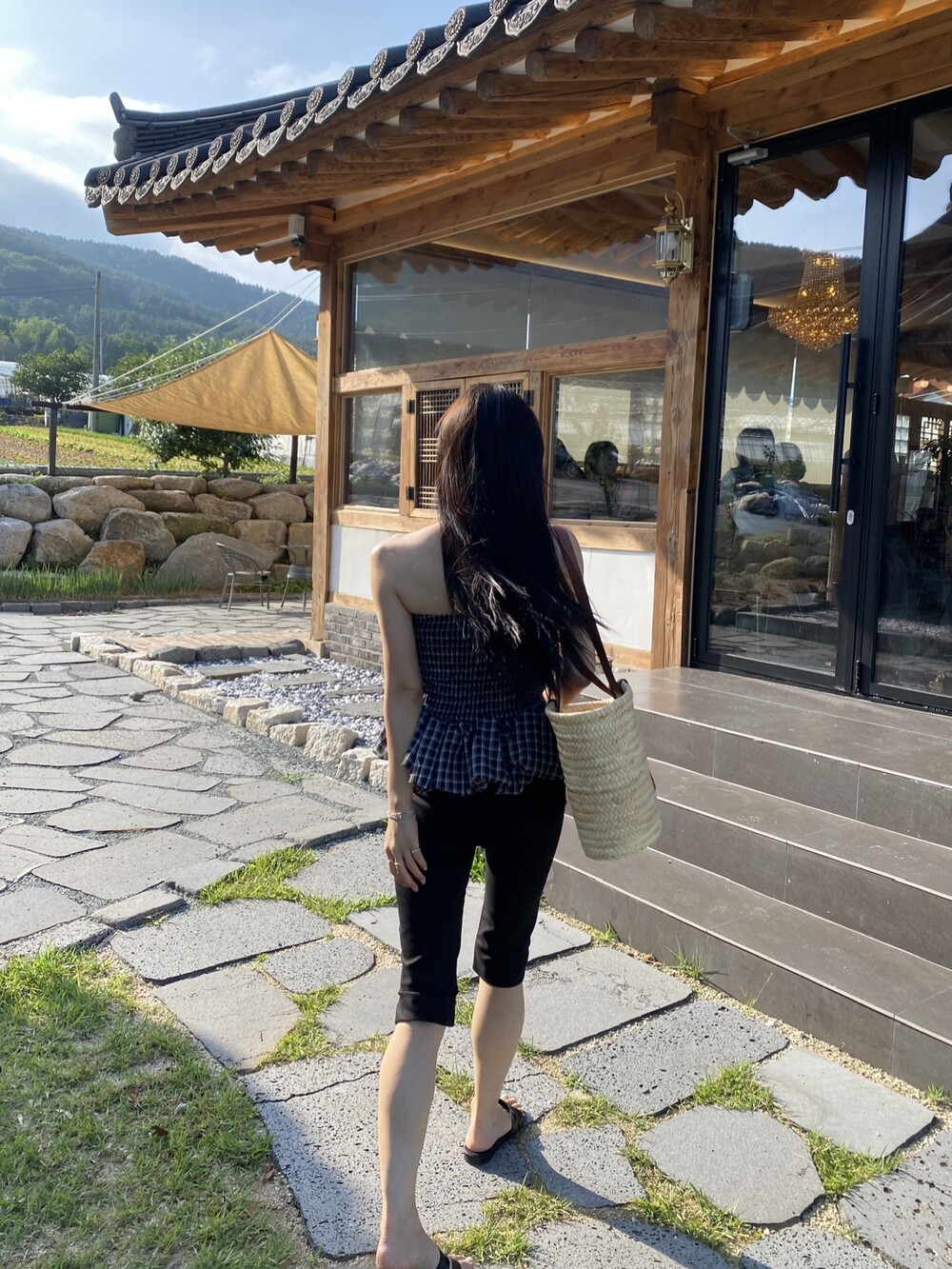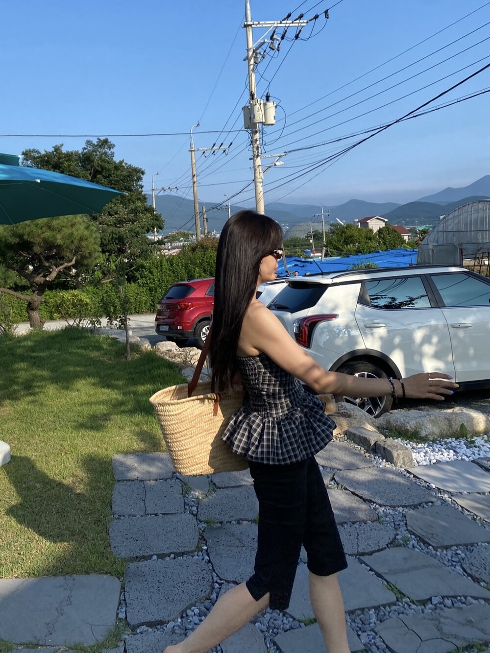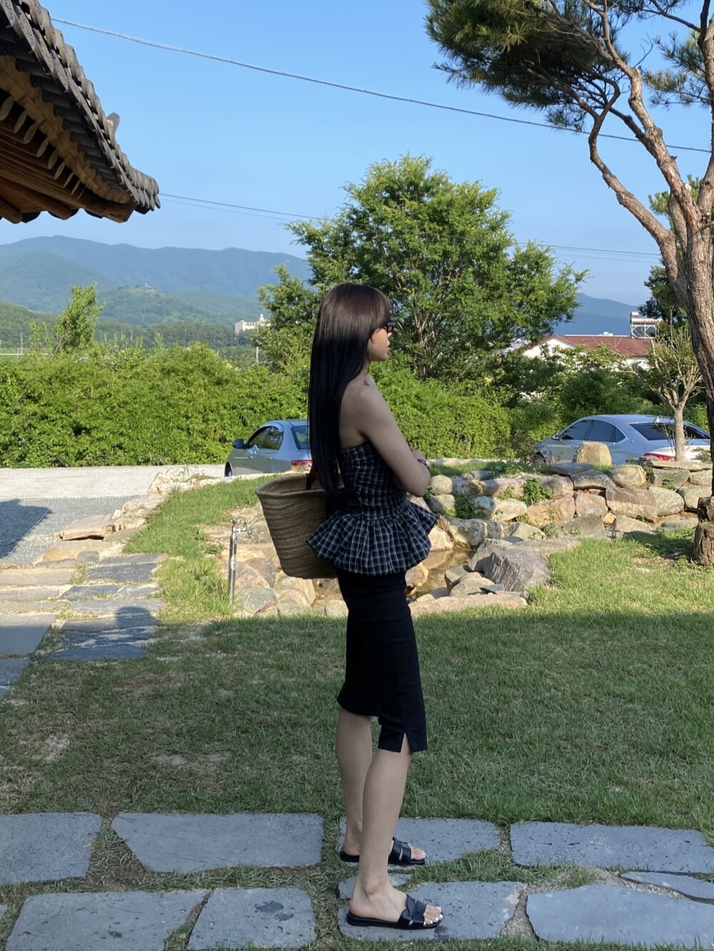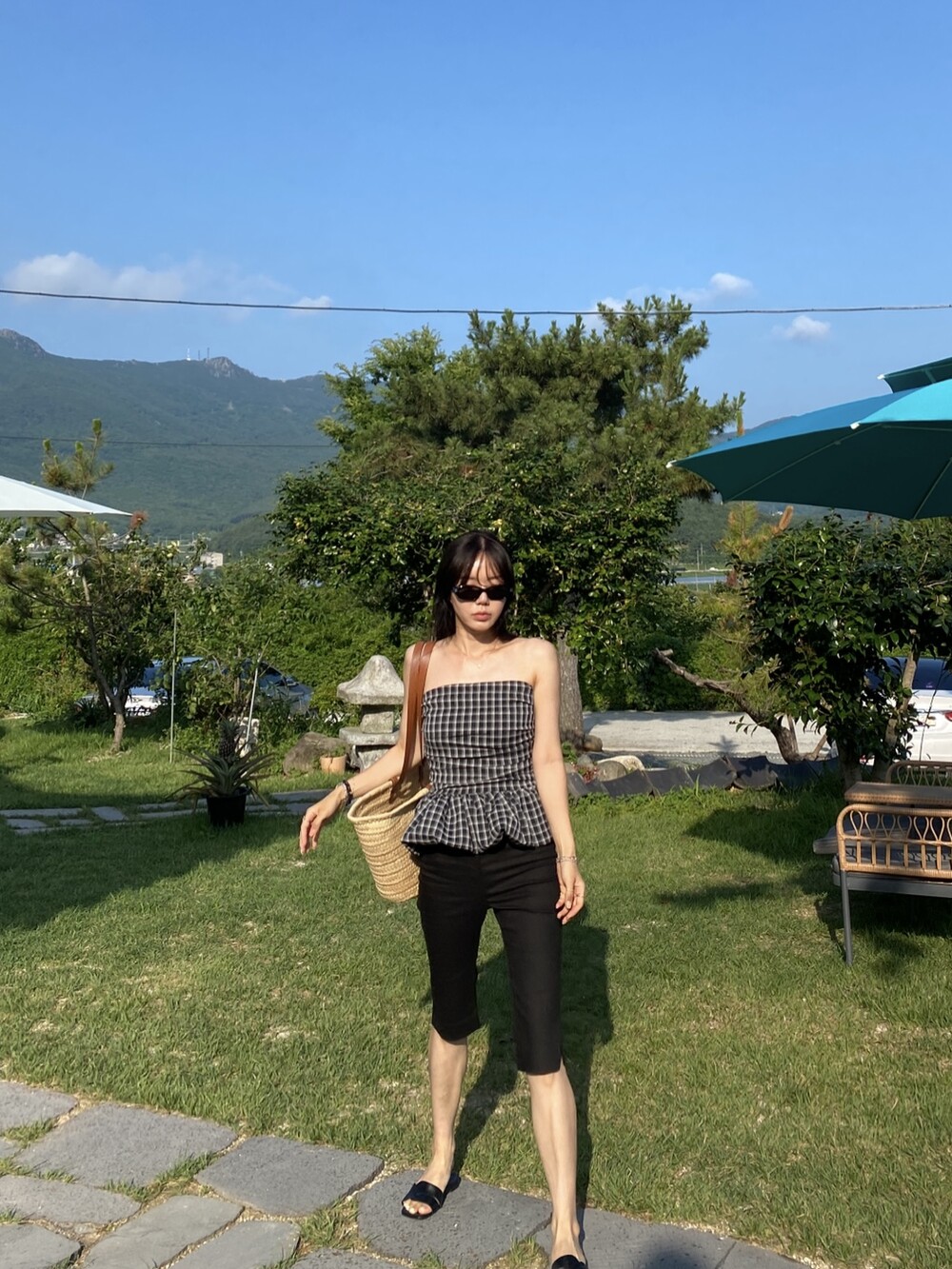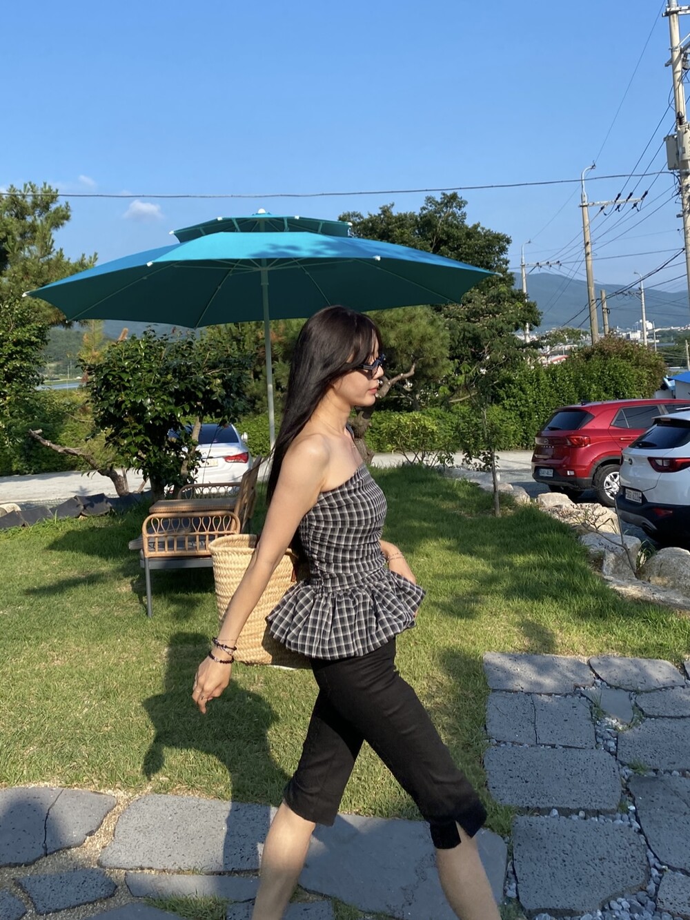 다양하게 활용하기 좋은 체크 스모크튜브탑이예요